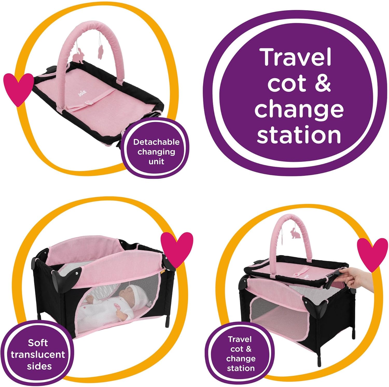 Lettino da viaggio Joie Excursion con fasciatoio ispirato alla vita reale Joie Excursion lettino da viaggio con cambio. Questo sistema di gioco 2 in 1 è perfetto per i bambini che vogliono essere proprio come i loro genitori. Promuovendo lo sviluppo delle capacità di nutrimento dei tuoi piccoli mentre imparano e crescono, il tuo piccolo adorerà poter preparare il bambino per andare a letto con il fasciatoio staccabile. Dotato di un lato in rete proprio come una vera culla da viaggio, i tuoi bambini possono assicurarsi che la loro bambola dorma sonni tranquilli. Caratteristiche: questa culla Joie è la scelta perfetta per ogni bambino che ama prendersi cura della propria bambola preferita proprio come mamma o papà. Con un fasciatoio facilmente rimovibile, il bambino può garantire che la sua bambola sia adeguatamente curata. La culla da viaggio giocattolo è dotata anche di morbidi lati traslucidi in modo da poter sempre tenere d'occhio la tua bambola addormentata. Perfetto per qualsiasi bambola fino a 45 cm. Dispone anche di una barra di gioco per intrattenere la tua bambola mentre la fai cambiare e pronta per qualsiasi avventura. Fai finta di giocare: il gioco finto è una parte essenziale dell'apprendimento precoce e più il bambino si impegna in un gioco fantasioso, più espandono la loro immaginazione e creatività. Non solo il gioco di finta consente a tuo figlio di espandere la sua creatività, ma consente loro di conoscere se stessi, comprese le loro simpatie e antipatie, i loro interessi e le loro capacità. Il gioco di ruolo consente anche a tuo figlio di vedere le cose in diverse prospettive e di fargli provare una vasta gamma di emozioni. Specifiche del prodotto: include 1 culla da viaggio Joie Sleep & Dream e 1 fasciatoio con Play Bar. Adatto per tutte le bambole fino a 45 cm (si prega di notare che la bambola non è inclusa). Dimensioni del prodotto: 57 x 32 x 50 cm (altezza x larghezza x profondità). Adatto a tutti i bambini dai 3 anni in su. Gamma Joie Junior Pram: la gamma di carrozzine Joie Junior è stata progettata per garantire che i tuoi bambini possano essere proprio come i loro genitori. La collezione è stata creata tenendo presente l'attuale offerta del marchio Joie, portando alla prossima generazione eleganti carrozzine e passeggini per bambole. Questa gamma è perfetta per migliorare le qualità fantasiose e educative dei tuoi bambini e aiuterà a incoraggiare i giochi di bambole push and play.