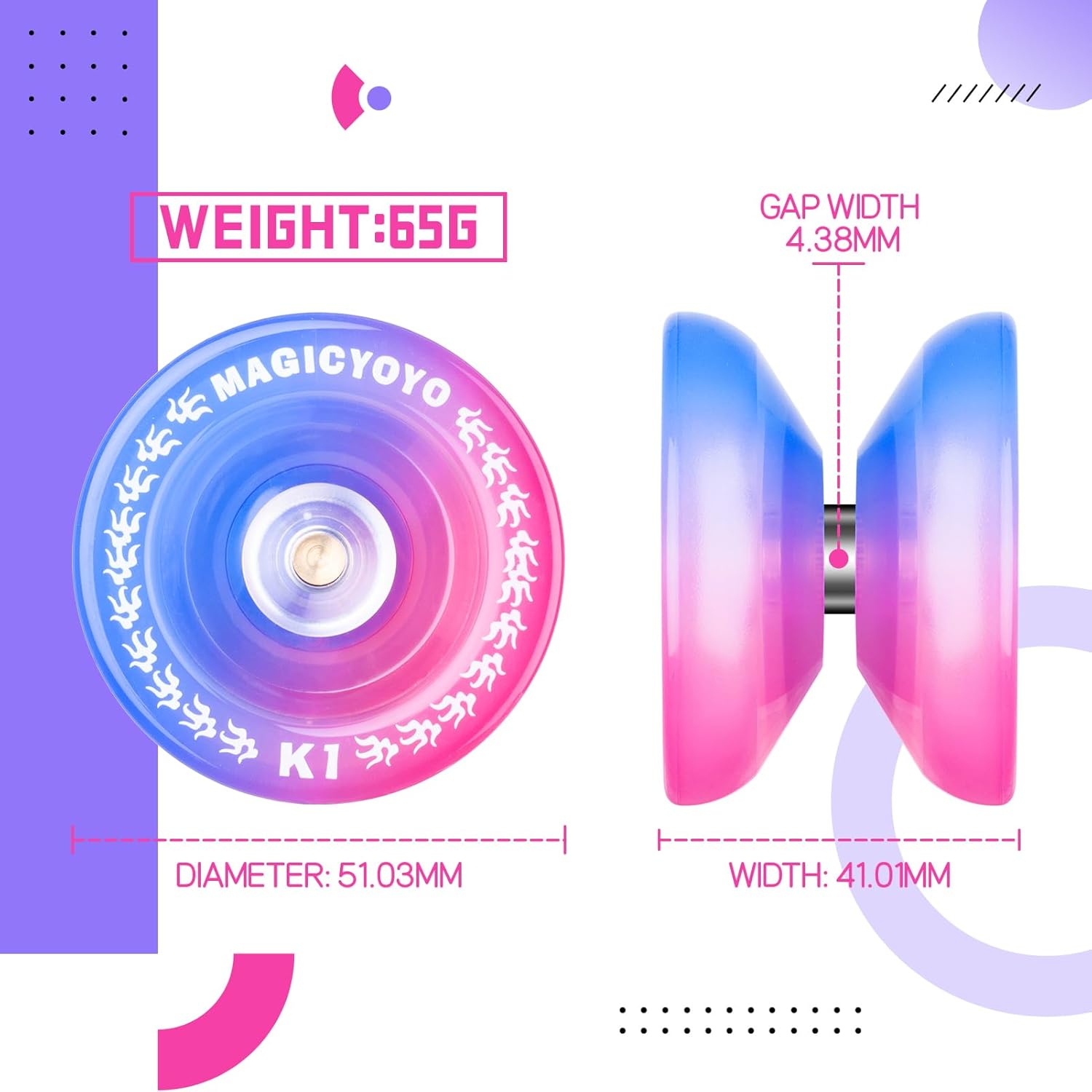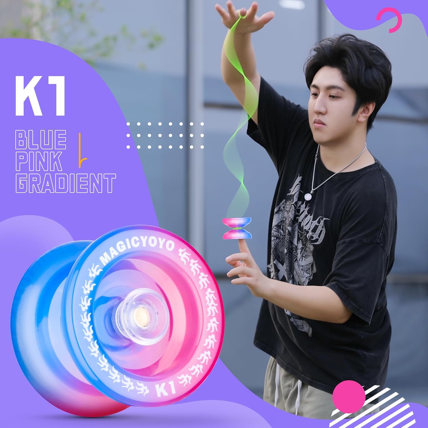 Yo-yo reattivo per bambini: Responsive Yoyo k1 progettato per bambini e principianti. Ha un cuscinetto reattivo di dimensioni E, che consente di tornare facilmente all'utente con un semplice tirando il cavo. Uno YoYo per principianti per bambini e principianti per imparare i trucchi YoYo e padroneggiare le basi del gioco YoYo Trucchi di spin per dito: il nostro responsive Yo-Yo K1 ha un esclusivo Yo-Yo hubacks al centro per le dita spin Yo-Yo trucchi senza sforzo. Che tu sia un principiante che vuole imparare il suo primo dito spin o un giocatore avanzato che perfeziona complessi trucchi Yo-Yoo, il design innovativo del K1 garantisce un'esperienza fluida e piacevole Yo-yo di alta qualità: realizzato in materiale ABS di alta qualità, il K1-Plus Yoyo reattivo offre una qualità costruttiva e una durata eccezionali. Nonostante il suo design leggero, resiste anche ai giochi più difficili senza essere facilmente danneggiato. È un compagno affidabile per bambini e adulti che vogliono godersi innumerevoli ore di divertimento Yo-Yo Kit completo Yoyo Il K1 Crystal Yoyo viene fornito con tutto il necessario per cominciare: 12 corde Yo-Yo, 1 pratica custodia, 1 guanto protettivo. Questo kit all-in-one ti assicura la migliore esperienza Yoyo, sia che tu stia esercitando a casa o che mostri le tue abilità in movimento Scelta regalo perfetta: lo yo-yo K1-Plus non è solo un giocattolo divertente e divertente, ma anche una fantastica opzione regalo. Grazie alle sue dimensioni ridotte e al peso leggero, è comodo da trasportare e funge da ottimo strumento per promuovere la coordinazione occhio-mano. Dando via questo yo-yo puoi anche rafforzare il legame tra genitori e figli e creare momenti indimenticabili insieme Supporto clienti amichevole: insistiamo sul design originale e su yoyo di alta qualità. Cattura la qualità del prodotto e migliora l'esperienza dell'utente. Servizio clienti di alta qualità, ogni acquisto viene fornito con una garanzia completa! Vi preghiamo di contattarci se in qualsiasi momento non siete completamente soddisfatti durante l'utilizzo del nostro Yoyo, vi risponderemo entro 24 ore.