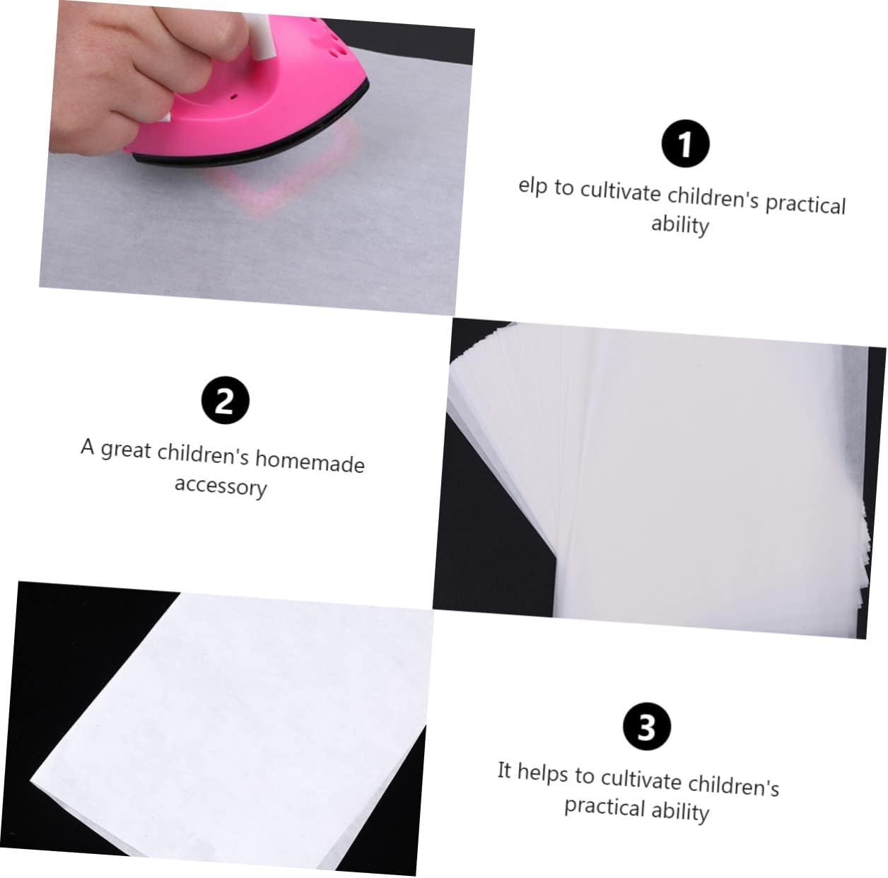 dei pacchetti 20 x carta da stiro Caratteristiche -Colore: Carta bianca resistente alle alte temperature. -Materiale: Carta da stiro per . -Dimensioni: 30,00X20,00X0,05 cm/11,79X7,86X0,02 pollici Forniture fai da te per - Il materiale è sicuro per i , è un giocattolo per inodore. - Realizzato in materiale EVA, è resistente grazie alla carta trasparente. - Può essere utilizzato ripetutamente più volte Carta da Stiro Specificata. - Aiuta a coltivare nei l'abilità pratica di stirare la carta. - Un fantastico accessorio fai da te per i . Accessori per puzzle. Descrizione della merce Carta resistente alla temperatura Questa è realizzata in EVA, è durevole e può essere utilizzata ripetutamente molte volte. Carta da stiro riutilizzabile Aiuta a coltivare le capacità pratiche dei , la capacità di i colori, il pensiero tridimensionale e consente ai di dare pieno sfogo alla loro immaginazione per creare le proprie opere