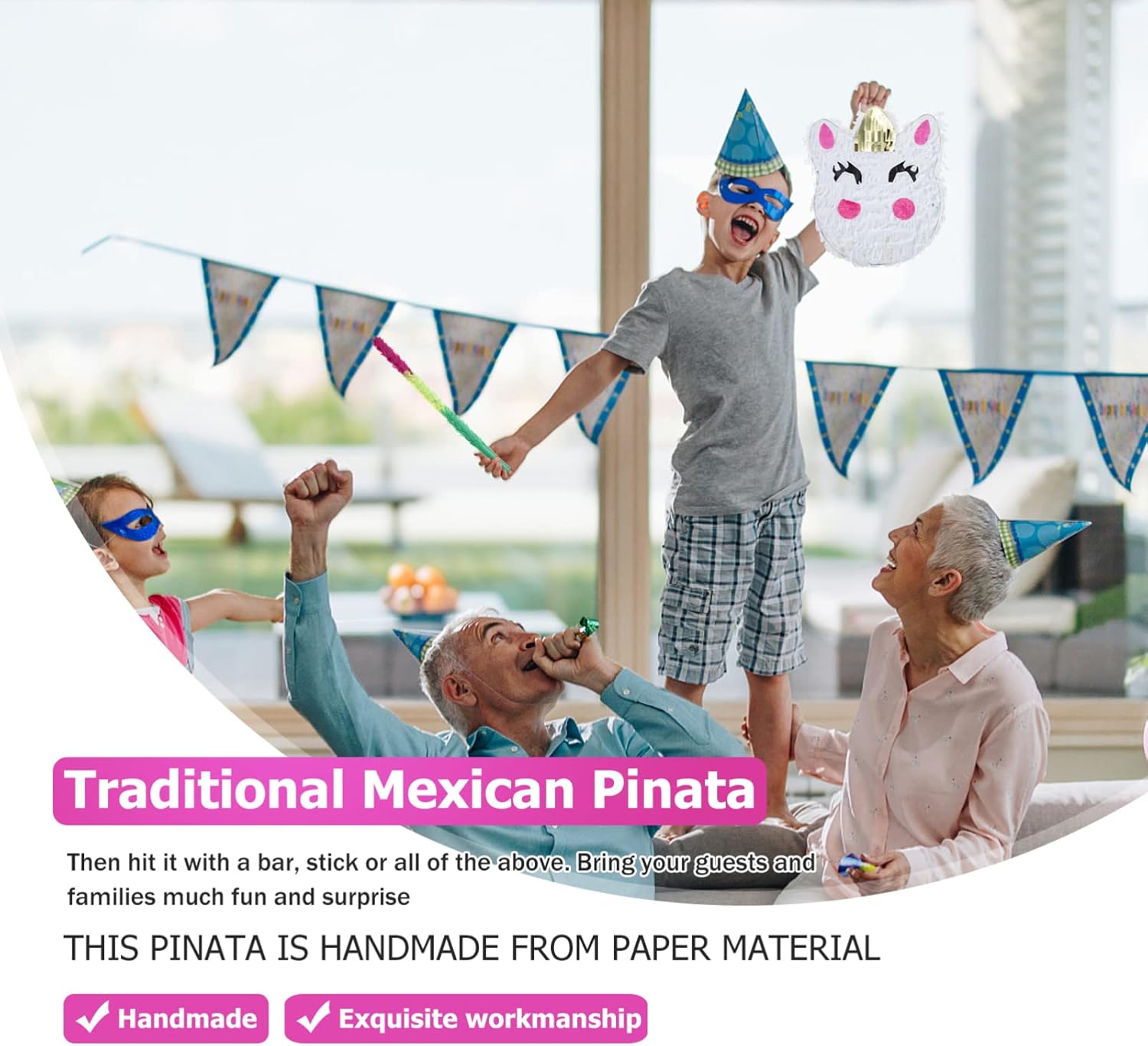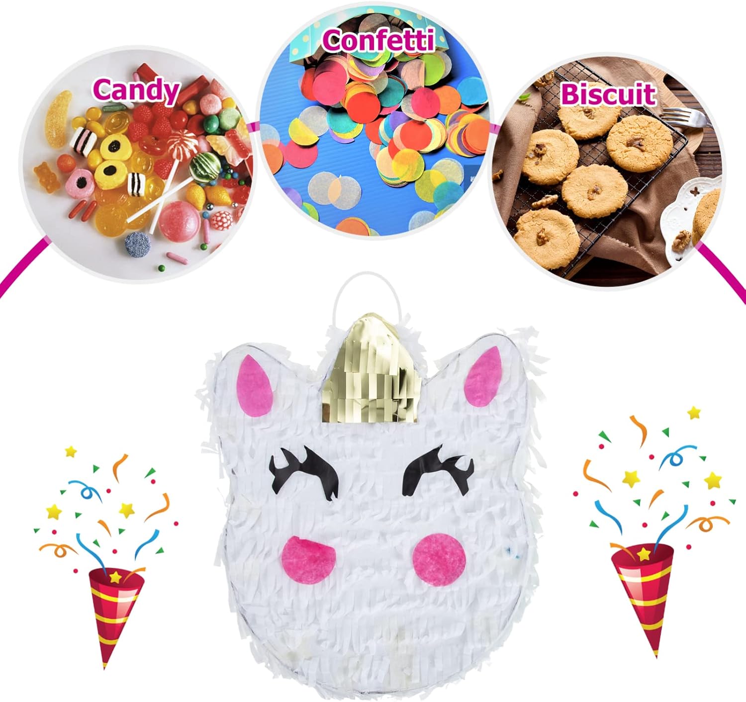 puoi appenderlo ovunque, al muro, alla porta, all'albero, lungo il corridoio, ecc. Il design dell'unicorno è carino e creativo, aiuta a creare ricordi divertenti. Molto adatto per suonare feste, feste di compleanno, festival o celebrazioni. Materiale di carta fatta a mano Pinata, lavorazione squisita, durevole. Quindi colpiscilo con una barra, un bastone o tutto quanto sopra. Porta il tuo G? Le famiglie si divertono? sorpresa.