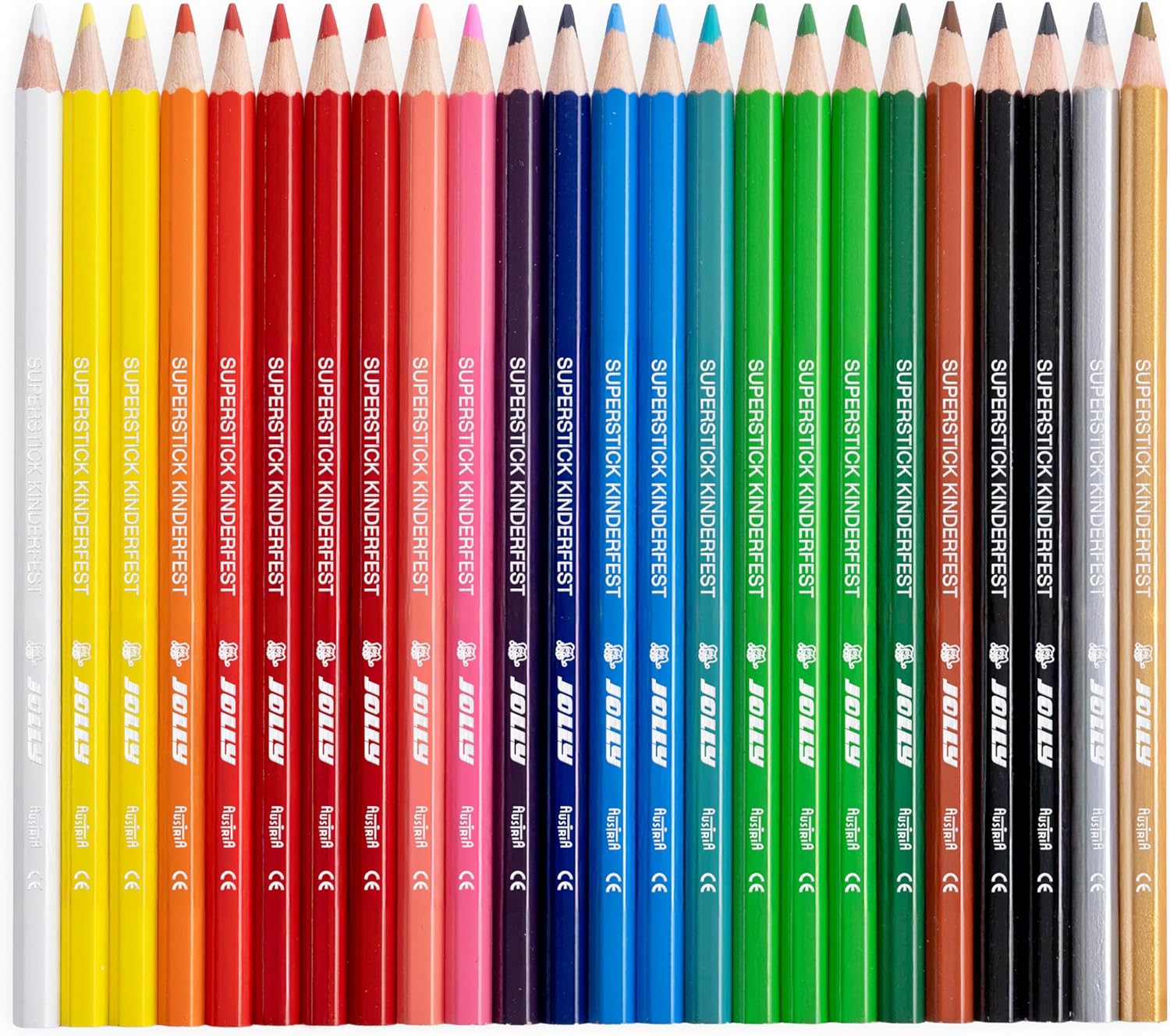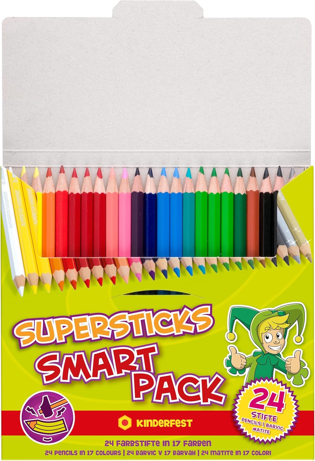 Resistenti ai bambini: i Supersticks JOLLY sono particolarmente robusti e dotati di una mina spessa e infrangibile, ideale per le mani dei bambini e l'uso quotidiano della scuola. Scelta di colori ottimali: 24 matite colorate in 17 colori accuratamente selezionati, tra cui tonalità comunemente usate come rosso ciliegia, giallo limone e verde chiaro, per un divertimento di lunga durata. Scatola per penne intelligente: la confezione intelligente garantisce ordine e visione d'insieme, perfetta per zaini o scrivania a casa. Colori intensi e coprenti: la luminosità incontra la qualità: le penne convincono grazie ai colori intensi e all'eccellente opacità sulla carta. Ideale per la giornata a scuola – che si tratti di dipingere, disegnare o colorare, con JOLLY Smart Pack i bambini saranno ben attrezzati a scuola.