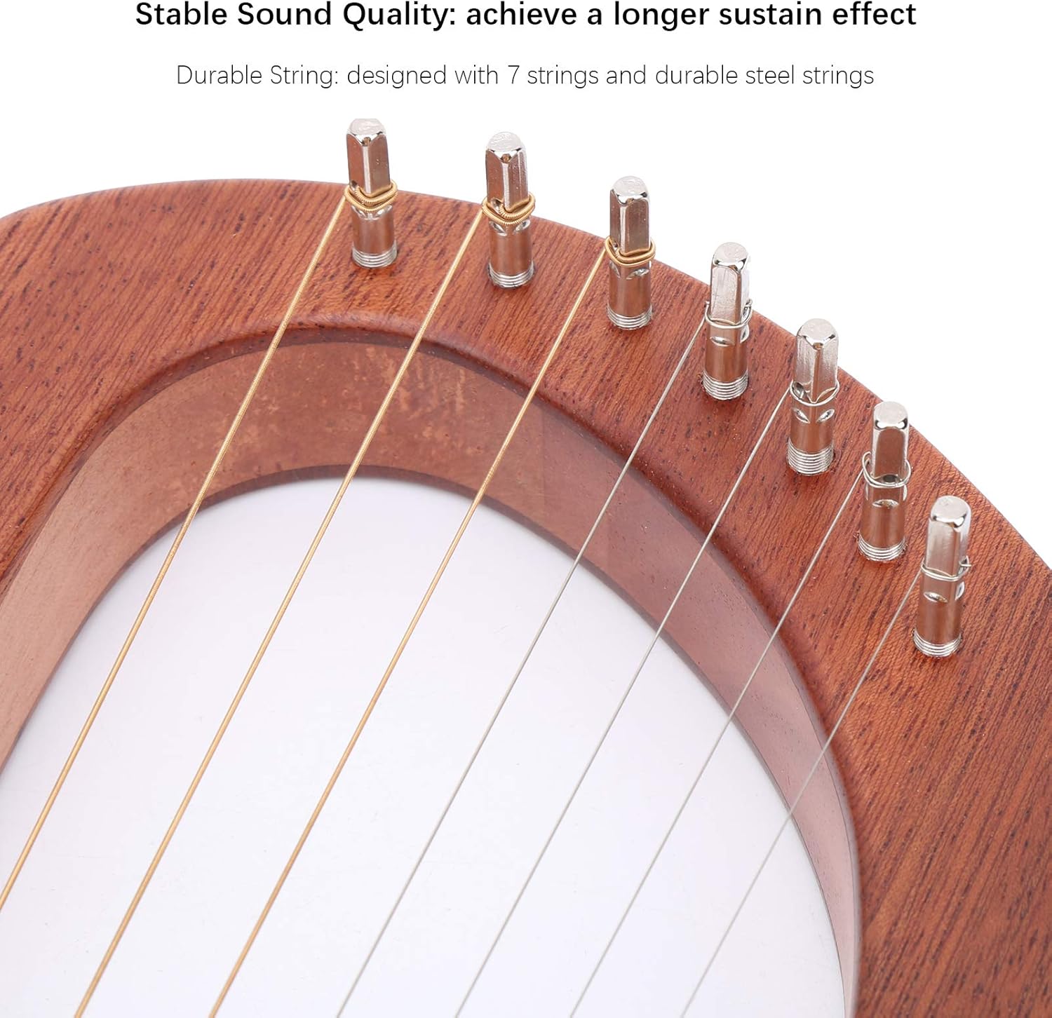 Ricca risonanza: goditi una qualità del suono senza pari con il design avanzato della nostra arpa a lira con 7 corde di metallo di alta qualità. Il suono riempie senza sforzo la tua stanza, con ogni vibrazione che viaggia direttamente nella canna. Ciò si traduce in una risposta eccezionale e un suono ricco e sostenuto che arricchisce la tua esperienza musicale e affascina il tuo pubblico. Lavorazione ergonomica - Le corde realizzate con bordi garantiscono una presa comoda e una manipolazione sicura. Il nostro design mette al primo posto l'esperienza dell'utente, così puoi ascoltare la tua musica invece di sentirti a disagio. Che tu sia un principiante o un musicista esperto, apprezzerai la facilità con cui puoi creare bellissime melodie. Materiale di alta qualità - Realizzata in lussuoso mogano, questa arpa a lira non colpisce solo per la sua bellezza estetica, ma offre anche toni caldi e piacevoli all'orecchio. L'elevata durezza e densità del legno contribuiscono alla longevità dello strumento e garantiscono che resisterà alla prova del tempo fornendo allo stesso tempo una qualità del suono costante. Design portatile: questa arpa a lira portatile è leggera e compatta, adatta agli amanti della musica in movimento. Trasportalo facilmente a lezione, spettacoli o ritiri e goditi sessioni di gioco spontanee ogni volta che arriva l'ispirazione. Mantieni viva la musica e condividi la sua bellezza con amici e familiari ovunque tu sia. Selezione regalo – Cerchi un pensiero premuroso? Questa arpa a lira è l'ideale per amici, amici o qualsiasi musicista in erba nella tua vita. Incoraggia lo sviluppo dell'interesse musicale e offre intrattenimento divertente, rendendolo un modo fantastico per coinvolgere il corpo e la mente con la musica.