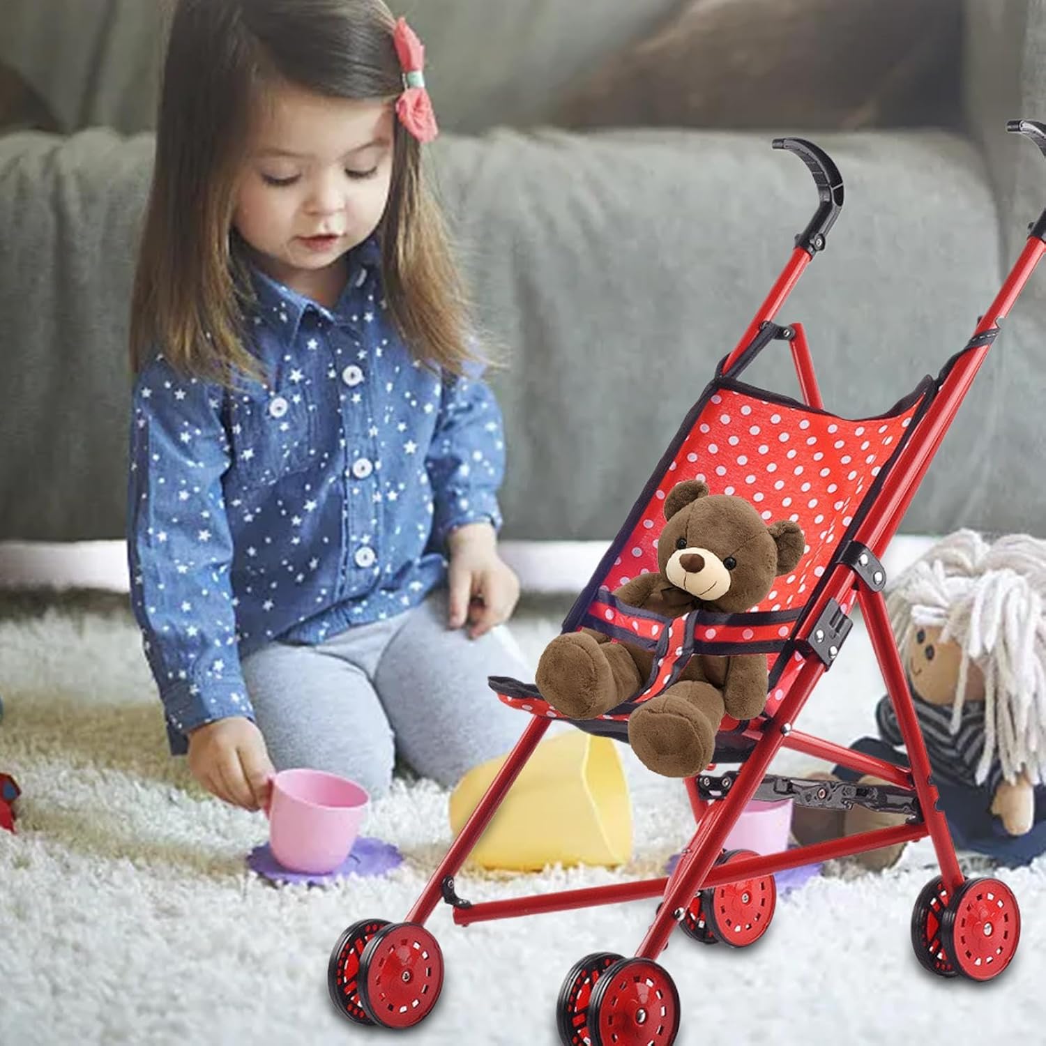 Rangement facile : avec un design compact et facilement pliable, ce jouet de poussette de facilite le rangement et garde votre en sécurité et Confortevole à l'extérieur. Le tissu amovible est facile à nettoyer pour un entetien simple, ce qui en fait le compagnon de voyage idéal Avec ceinture de sécurité a forma di T : équipé d'un empattement scientifique et d'une ceinture de sécurité a forma di T, la conception à deux roues de notre jouet poussette de offre une meilleure stabilité et assure la sécurité des bébés pendant le jeu. Encourage les jeux de rôle instinctifs et imaginatifs : notre jouet de poussette de favorise les jeux de rôle instinctifs et imaginatifs qui favorisent le développement des compétences sociales et encouragent la créativité des garçons et des filles. Avec une expérience de poussette authentique, les adoreront explorer et interagir avec leur environnement Robuste et sûr : le jouet de poussette de est méticuleusement fabriqué avec du fer à haute résistance, un tissu renforcé et un matériau ABS, offrant une expérience de jeu sûre, robuste et résistante à l'usure pour les qui peuvent supporter des années de jeu actif Large gamme d'utilisations : ce jouet pour poussette de est plus qu'un simple jouet, c'est un moyen d'apporter de la et d'encourager la socialisation. Conçu pour stimuler l'imagination d'un enfant, c'est le cadeau parfait pour toute occasion : fête des , anniversaires, Thanksgiving ou Noël.