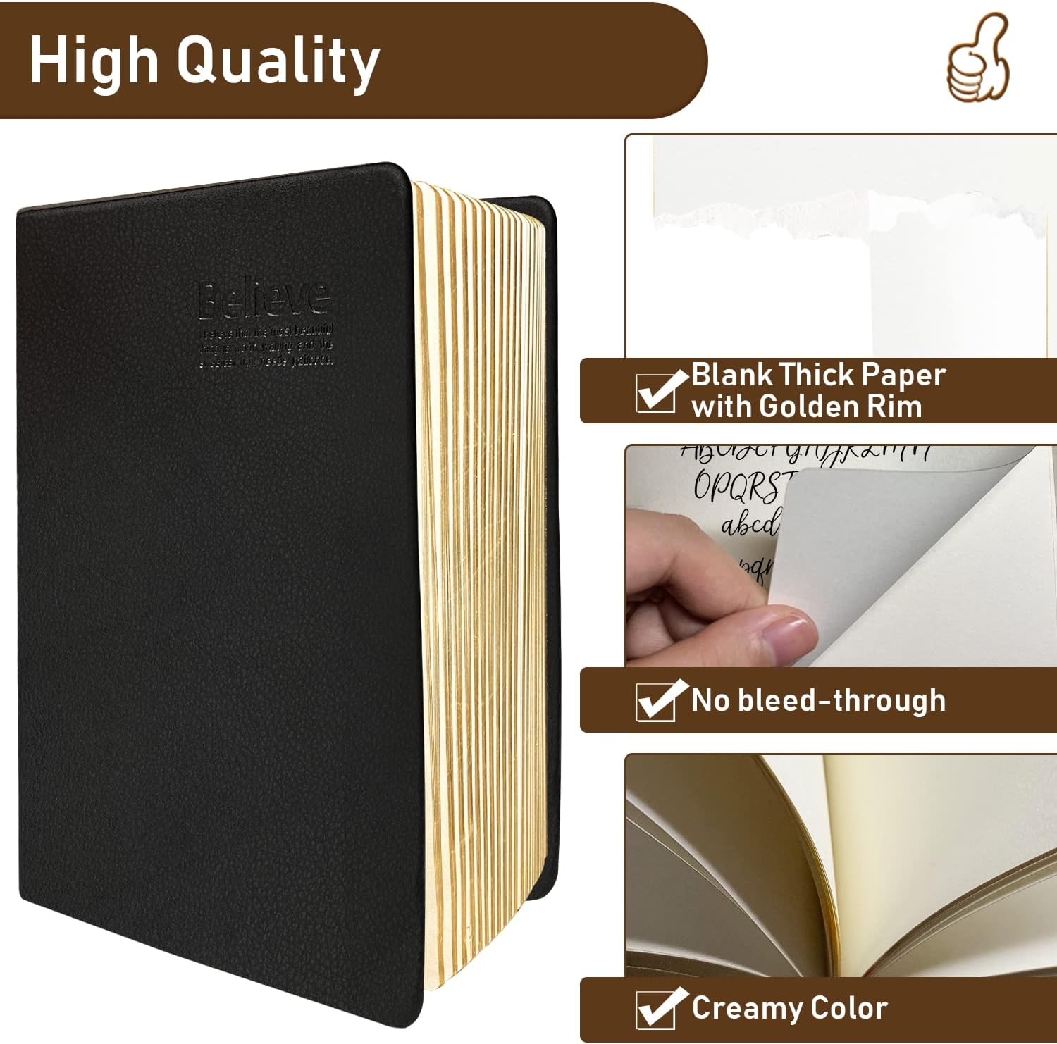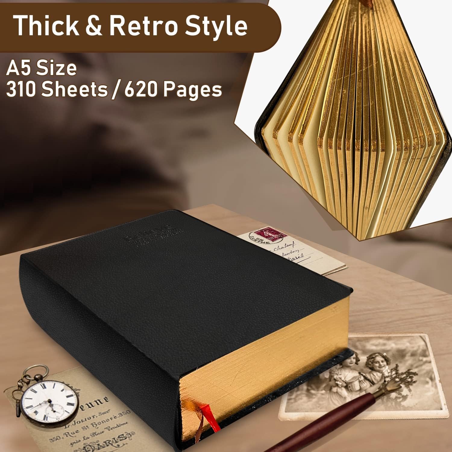 Stile vintage spesso: questo quaderno rilegato ha 620 pagine (310 fogli) e uno spessore di 4,7 cm. La pelle sintetica di alta qualità sembra antica, liscia e inodore. Molto raffinato e vintage. Alta qualità: questo taccuino rilegato ha una resistente copertina in pelle sintetica per proteggere i tuoi appunti a lungo. Gli angoli arrotondati non ti faranno male alle mani, la striscia segnapagina può scorrere facilmente la pagina che stai cercando. Dimensioni perfette: busta esterna 21 x 14,8 cm, foglio interno formato A5 (carta bianca), bordo dorato. Misura adatta per borsette e zaini scolastici. L'interno è in carta avorio che protegge bene gli occhi. Scrivi senza intoppi senza spargimenti di sangue Ampia applicazione: funzione barra wireless, puoi disegnare liberamente mappe mentali, disegnare, prendere appunti o scrivere poesie sulla pagina. Ideale come quaderno, tavolo da disegno, album da disegno, diario di viaggio, piano di appuntamenti, piano di coupon, album fotografico e altro ancora. Ottima scelta regalo: può essere usato come uno squisito regalo di Natale, regalo di ringraziamento, regalo di laurea o regalo di viaggio, ideale come buon regalo per l'uso quotidiano da parte di scrittori, blogger, insegnanti e studenti.