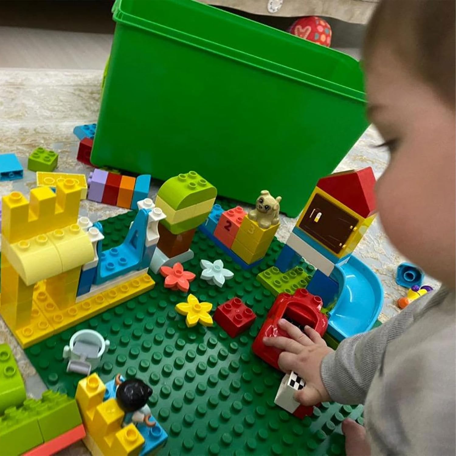 La confezione contiene 3 piatti - blu. Dimensioni: 25,5 x 25,5 cm, 16 x 16 – 256 punti, 100% compatibile con particelle di grandi dimensioni. Forte fissazione: i blocchi sono facili da montare e smontare sulla piastra di base e ogni blocco è fissato saldamente. Anche se i mattoncini vengono capovolti, non possono cadere così facilmente. Materiale sicuro: le piastre da costruzione sono realizzate in plastica ABS ecologica e sicura, sono robuste, infrangibili e hanno bordi lisci senza sbavature. Crea diversità: la piastra di base di grande formato supporta l'unione di più placche di base in un livello creativo più ampio, stimolando l'immaginazione architettonica, matematica e spaziale dei bambini ed è adatta per costruire scene complesse come castelli e binari. Regali creativi per bambini: ogni confezione contiene tre pannelli blu perfetti per i bambini che vogliono sviluppare la loro immaginazione creativa. Può sviluppare la percezione dei bambini, migliorare la loro immaginazione, migliorare le loro capacità operative e promuovere la loro creatività.