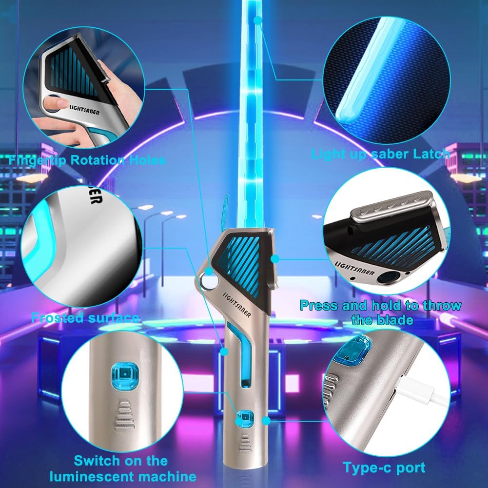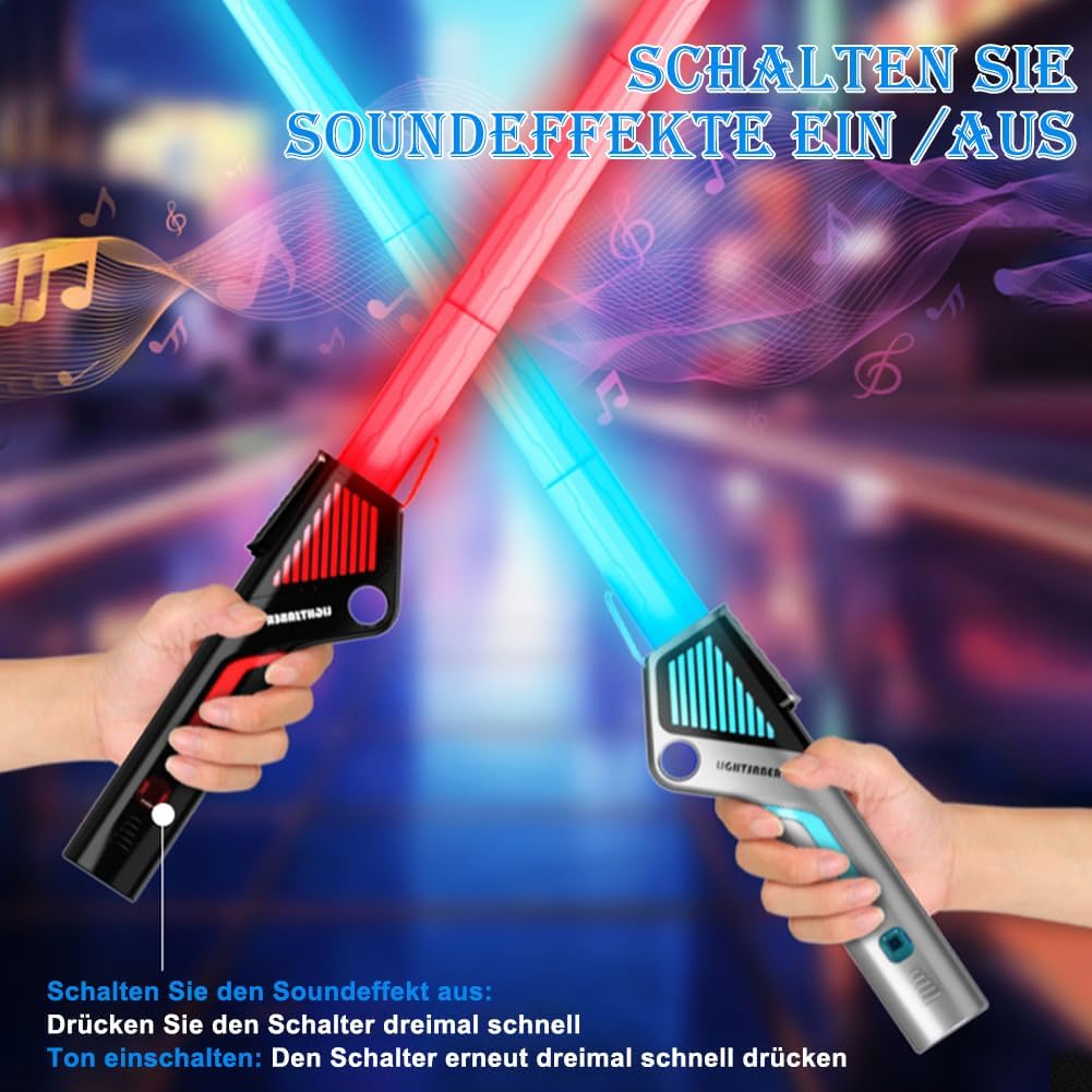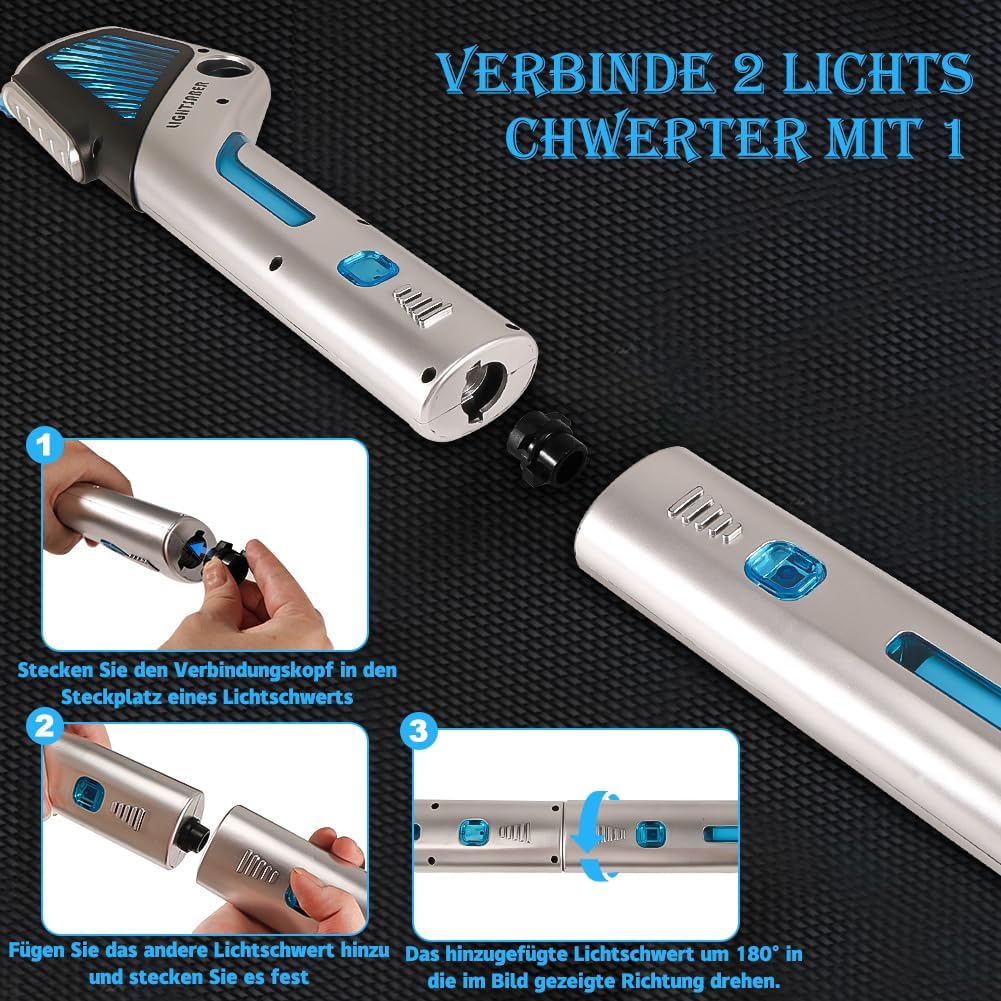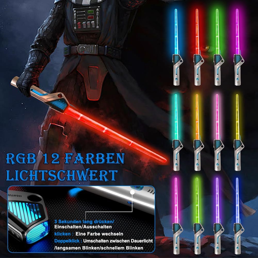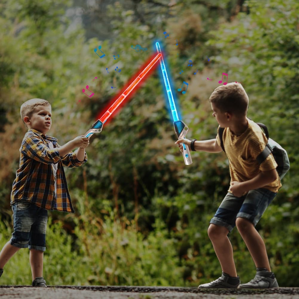 SPADA LASER 2 IN 1: la confezione contiene 2 spade laser per bambini e le due spade laser possono essere collegate tra loro tramite un connettore. Dotate di maniglie in finto metallo per un effetto fantastico e un design raffinato, le spade laser a LED sono comode da riporre e adatte per uso interno ed esterno. DETTAGLI REALISTICI: La spada laser ha 12 effetti luminosi ed effetti sonori, effetti sonori FX realistici e autentici quando fai oscillare o colpisci la spada laser. Sia i bambini che gli adulti adoreranno i drammatici effetti sonori del combattimento con la spada che rendono il gioco ancora più realistico. MATERIALE DI ALTA QUALITÀ: la spada laser è realizzata in materiale ABS di alta qualità. La spada laser è durevole, sicura per i bambini, facile da usare e non tossica. La spada laser per bambini viene fornita con un cavo USB che può essere utilizzato per caricarla in qualsiasi momento. SPADA LASER RETRATTILE: la spada laser può essere allungata quando in uso e accorciata quando non in uso. La sua forma ergonomica lo rende più facile da tenere in mano e giocare più comodamente. REGALO PERFETTO: questa spada laser è adatta per ogni occasione, può essere utilizzata per feste di Natale, feste di compleanno, Halloween, Natale e altri vari festival importanti. Regalo perfetto per ragazzi o ragazze.