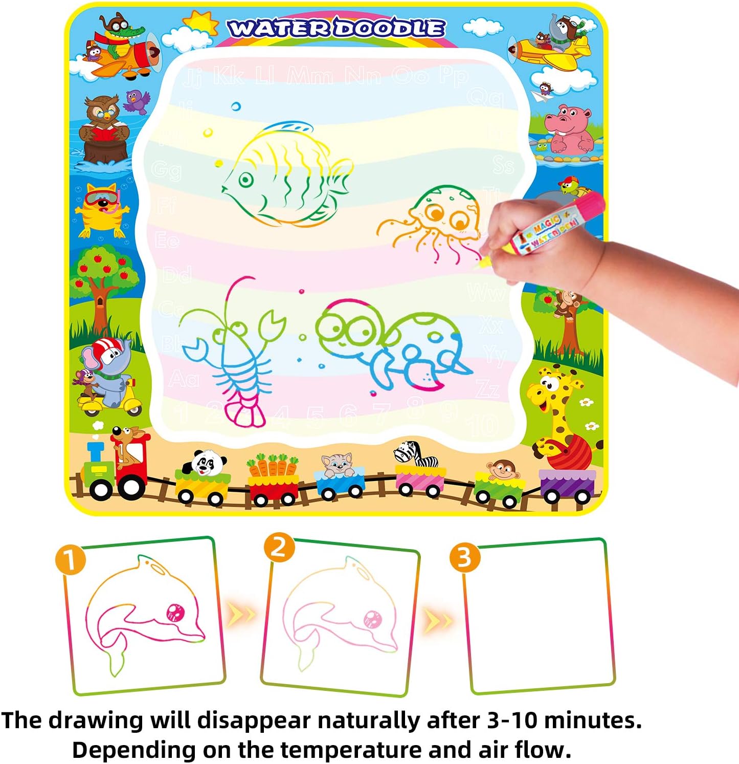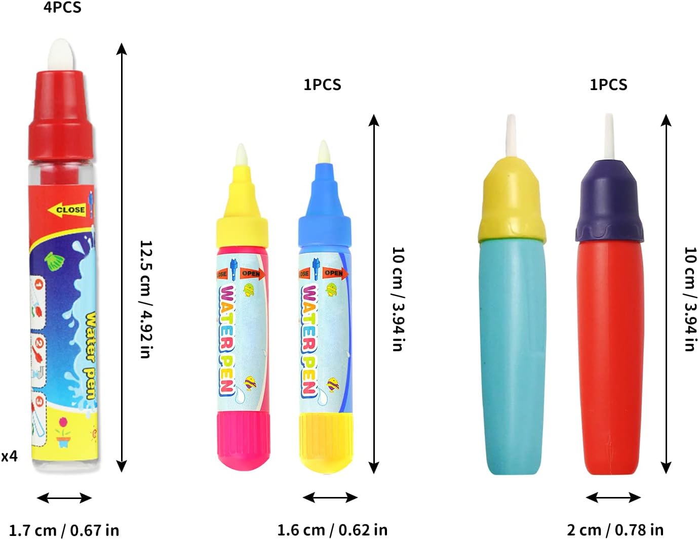 🎨【Pacchetto incluso】Riceverete 4 pezzi di penne per scarabocchi ad acqua grandi, 4 pezzi di penne per scarabocchi ad acqua piccoli e pennelli. Un totale di 8 pezzi di diverse dimensioni e colori, che soddisfano le esigenze quotidiane dei bambini e garantiscono un divertimento senza fine. ✍【Facile da Usare】Basta svitare e riempire la penna con acqua pulita; lo scarabocchio scomparirà naturalmente dopo 3-10 minuti dal disegno e potrà essere utilizzato più volte. Le mamme non devono più preoccuparsi di sporcare il disegno con la vernice. 🎨【Penne Disegno Doodle】Dipingono senza inchiostro e sono sicuri da usare, un ottimo sostituto dei pastelli tradizionali. Aiutano i bambini a percepire i colori e ad esercitare la coordinazione occhio-mano, sviluppando le capacità pittoriche e creative. ✍【Scelta Regalo Perfetta】I pennarelli ad acqua riutilizzabili sono adatti ai bambini che amano l'arte e la pittura e possono essere applicati su vari tipi di tappetini da disegno per scarabocchi, libri da colorare con l'acqua e cartoline da disegno con l'acqua. 💡【CONSIGLI DI RISCALDAMENTO】Si consiglia di immergere le penne in acqua per qualche minuto prima dell'uso, finché i pennini non si gonfiano completamente per colorare in modo fluido.