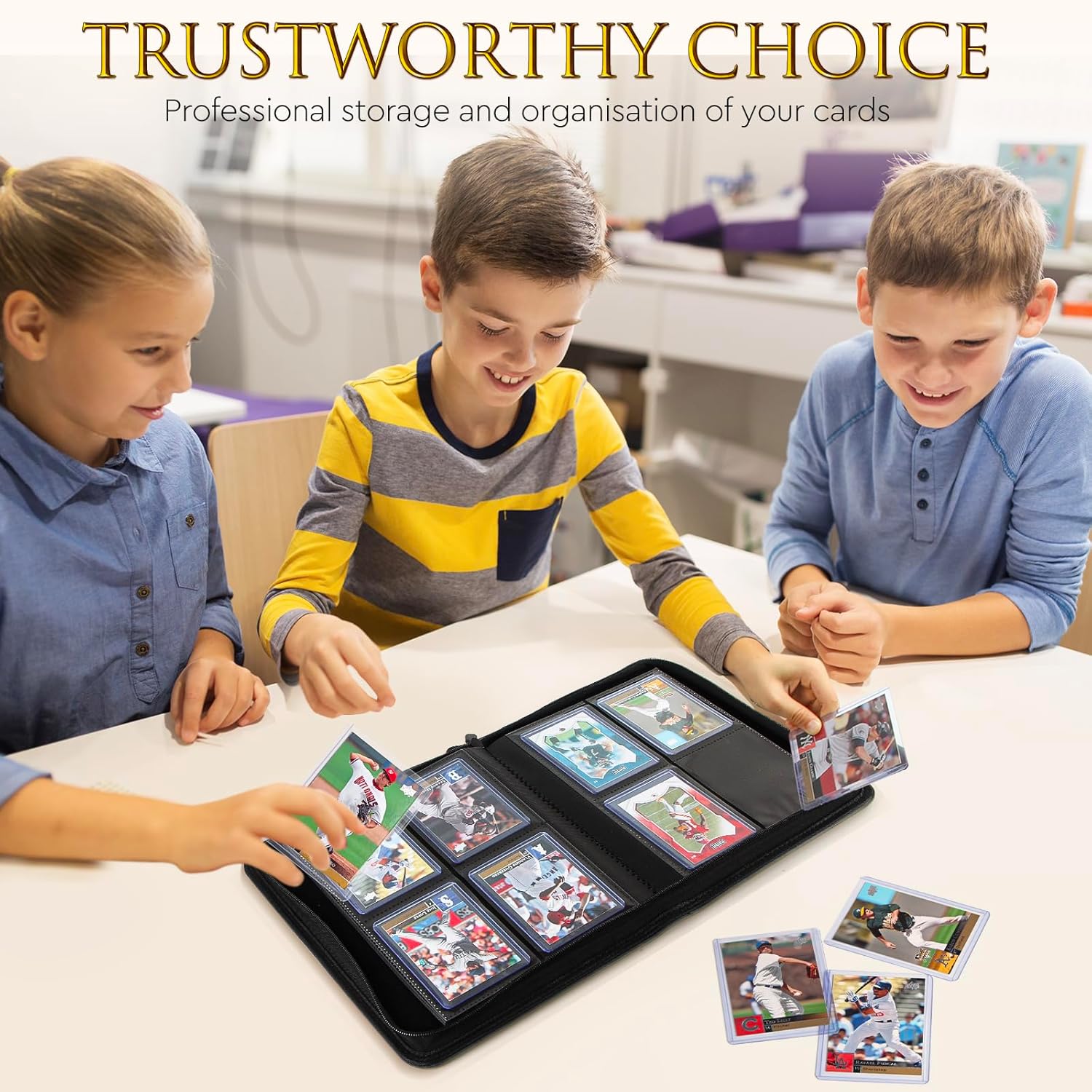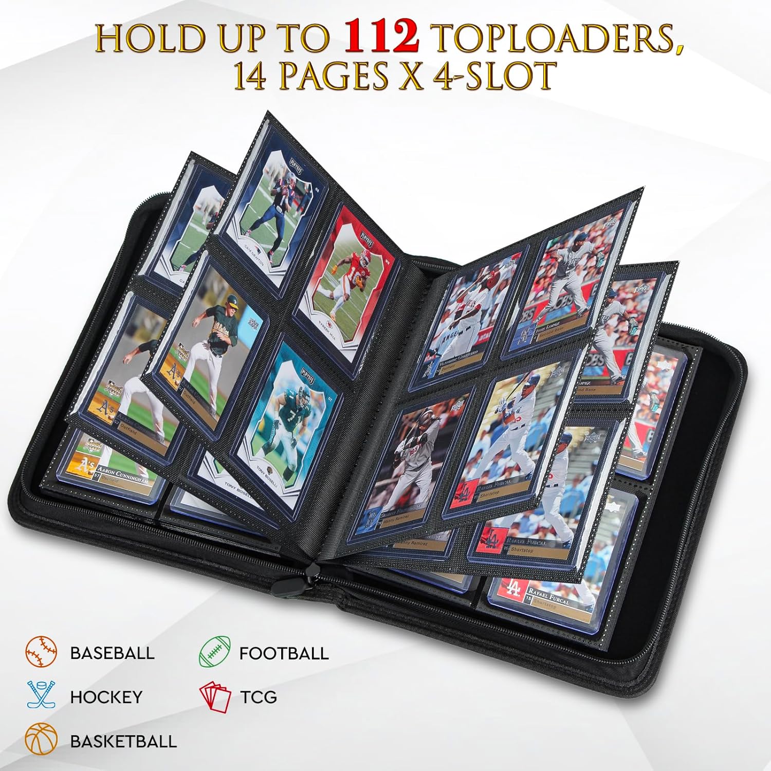 【Alta capacità】Questo raccoglitore di carte presenta 112 tasche superiori su 14 pagine fronte-retro, con 4 slot per pagina. 【Design accurato per protezione e visibilità】 Il raccoglitore di carte ha uno strato esterno impermeabile e tasche interne trasparenti. Questo design protegge le tue carte dai danni e ti consente di vederle chiaramente. Proteggi con una cerniera resistente: la robusta cerniera mantiene le tue carte al sicuro e impedisce che vengano danneggiate o perse. Puoi fidarti di questa cartella per mantenere la tua raccolta al sicuro. 【Versatile per tutte le esigenze delle tue carte】 Ideale per carte collezionabili (TCG, YGO, OPCG) e carte sportive (basket, calcio, baseball). Questa cartella soddisfa tutte le esigenze di archiviazione delle tue carte in un unico posto. 【Regalo perfetto】 Questo raccoglitore di carte è il regalo perfetto per ogni collezionista di carte. Che si tratti di Natale, compleanno o anniversario, è un ottimo modo per dimostrare il tuo affetto e aiutarti a mantenere la tua collezione organizzata e protetta.