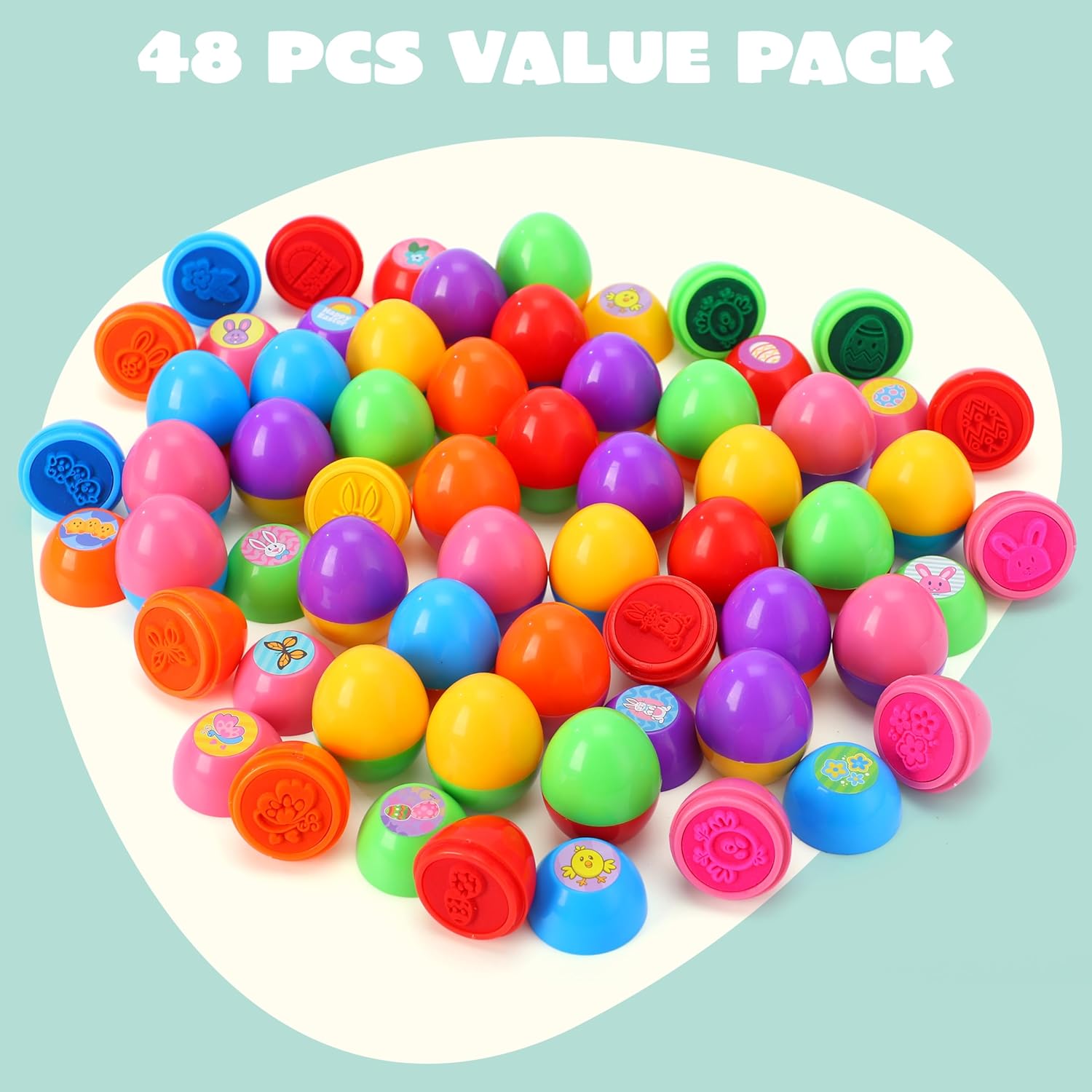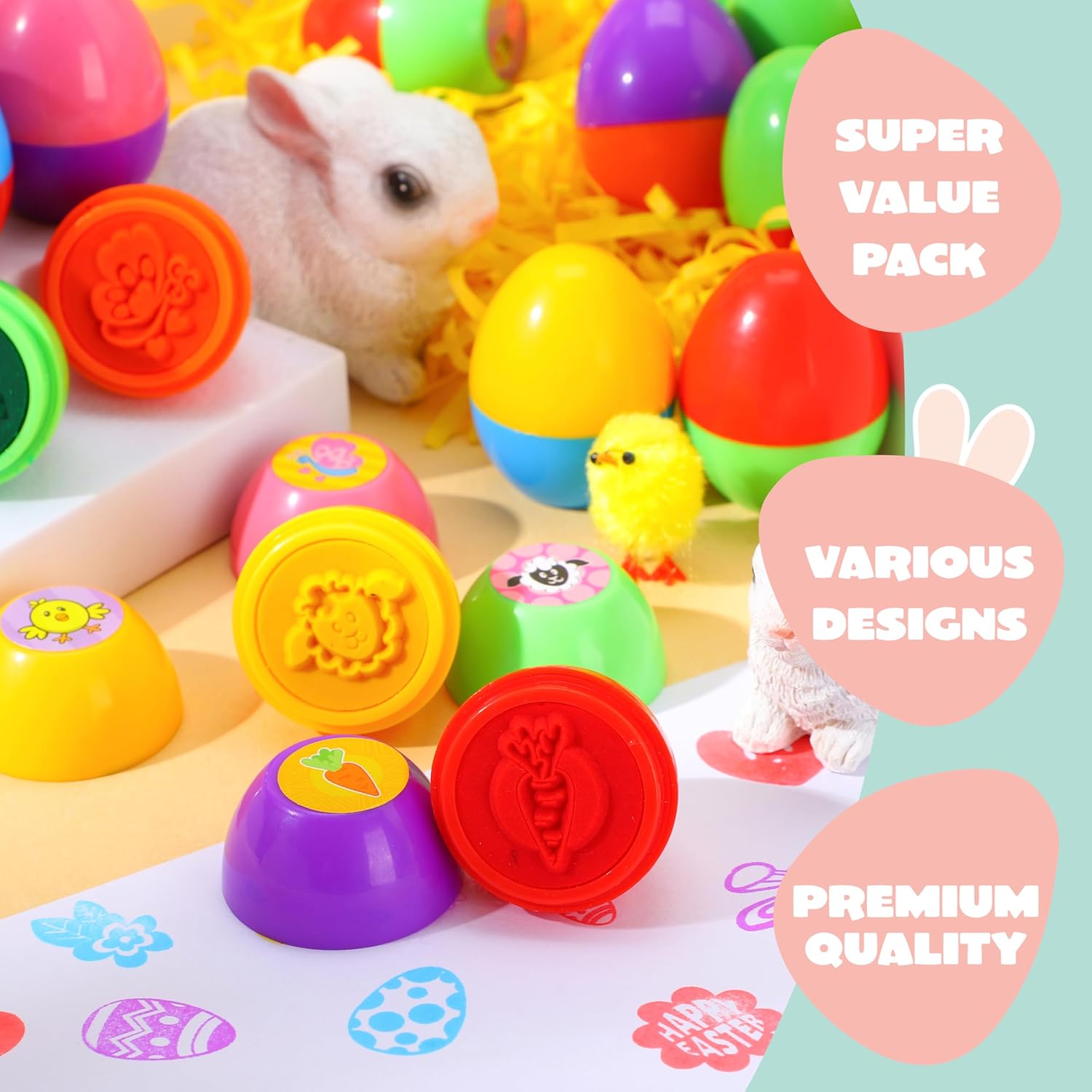 JOYIN 48 pezzi vorgefüllte Ostereier-Stempel, selbstfärbende Stempel für Kinder-Osterparty-Geschenke, Osterkörbchen, Ostereiersuche, Preiszubehör im Klassenzimmer