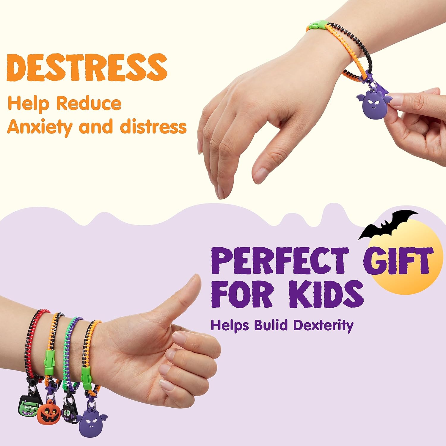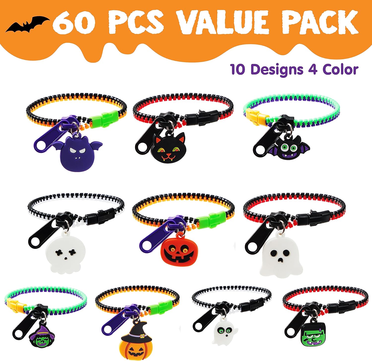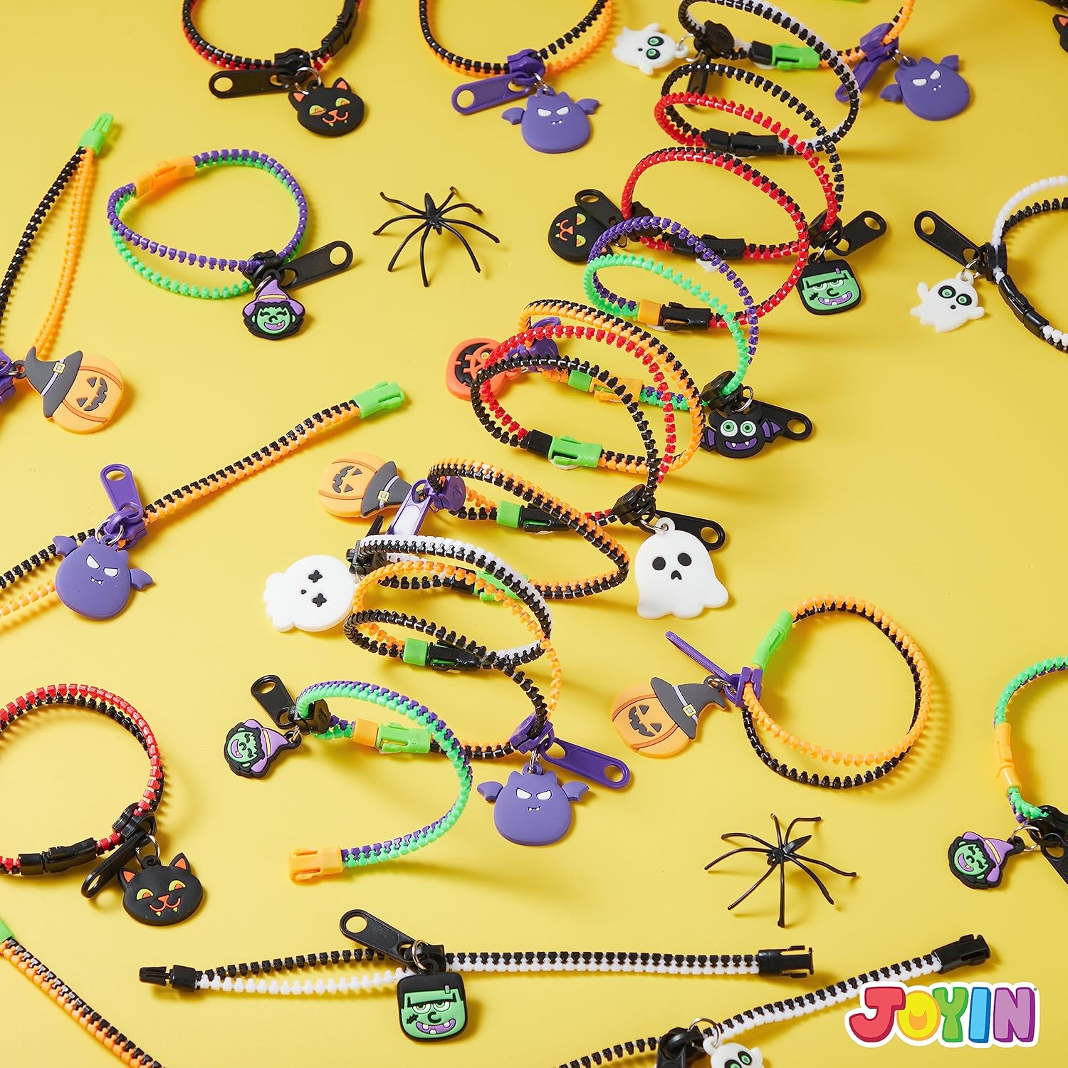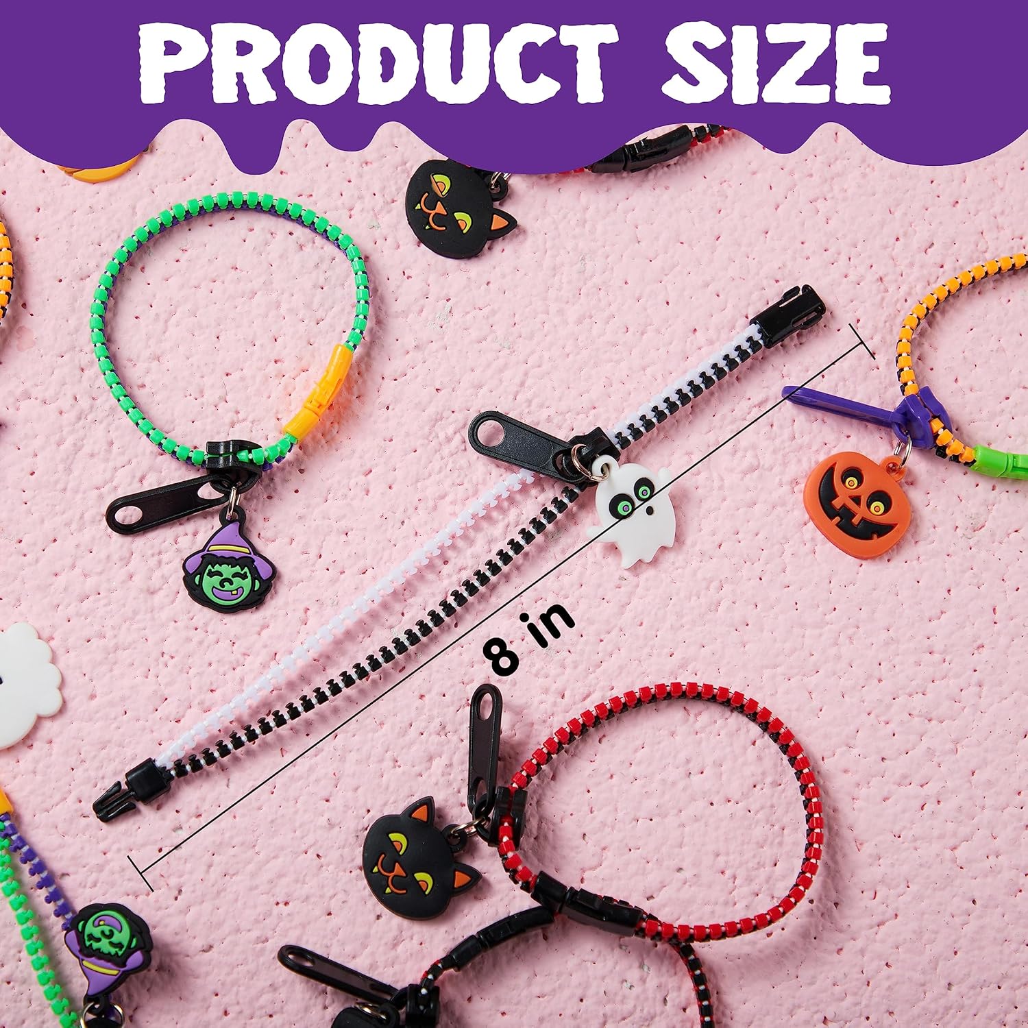 Braccialetti con cerniera di Halloween: entra nello spirito di Halloween con il nostro set di 60 braccialetti con cerniera di Halloween. Questi braccialetti sono perfetti come regali in classe per Halloween o come bomboniere per le feste e porteranno sicuramente gioia ed eccitazione ai bambini durante la stagione spettrale. Quantità e dimensioni: ogni acquisto include 60 braccialetti con cerniera di Halloween, quindi hai un sacco di scorte per feste, eventi o come regalo. Misurando circa 8 pollici di lunghezza, questi braccialetti sono progettati per adattarsi comodamente alla maggior parte dei bambini. VARIETÀ DI DISEGNI: Il set di braccialetti con cerniera di Halloween comprende 10 diversi design tra cui 2 zucche, 2 pipistrelli, 1 fantasma, 2 teschi, 1 Frankenstein, 1 strega e 1 gatto. Questi design spettrali e giocosi aggiungono un tocco festoso a qualsiasi celebrazione di Halloween. Colorati e attraenti: con 5 colori vivaci - arancione, viola, bianco, verde e nero - questi braccialetti con cerniera sono un accessorio visivamente accattivante e accattivante per i bambini. La selezione dei colori corrisponde a quella dei nostri concorrenti, garantendo coerenza e soddisfazione. Divertenti e funzionali: questi braccialetti con cerniera non sono solo un fantastico regalo per la festa di Halloween, ma possono anche essere usati come braccialetti per i bambini. La funzione cerniera fornisce un elemento tattile e interattivo che lo rende interessante e divertente per i bambini.