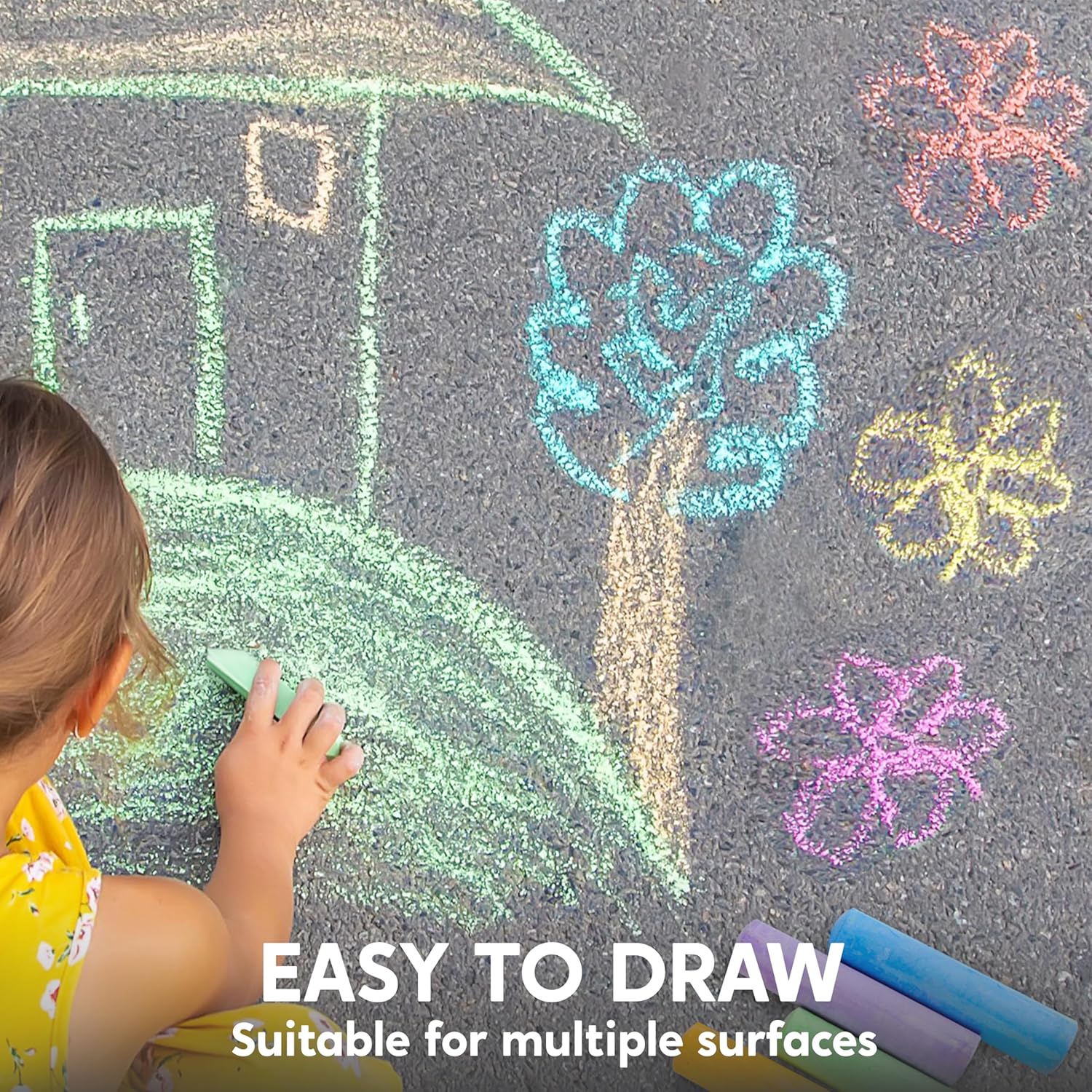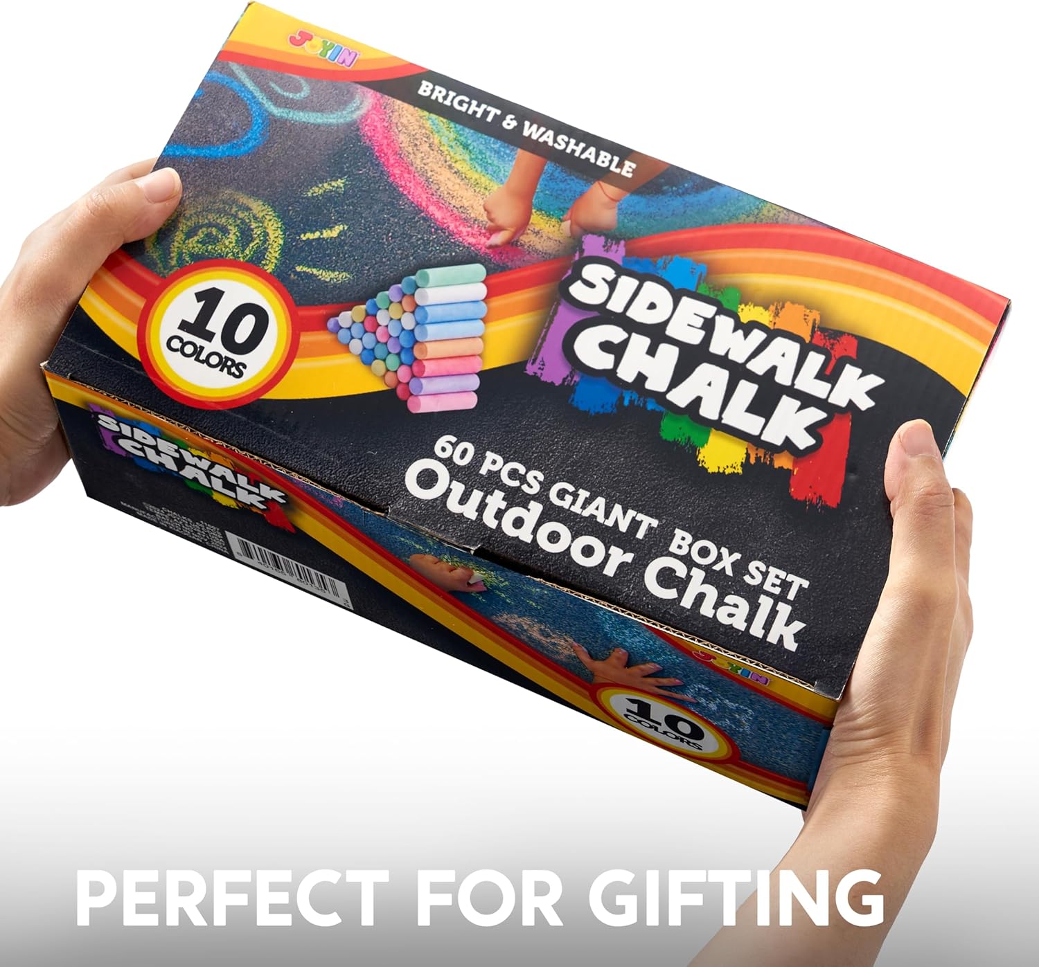PACCHETTO SUPER VALORE. I nostri gessetti da gioco all'aperto includono 60 pezzi di gessetti in 10 colori (blu, verde, rosa, arancione e giallo per citarne alcuni) DESIGN UNICO E FACILE DA USARE. Il nostro set di gessetti lavabili consentirà ai tuoi bambini di uscire e giocare, dando loro l'opportunità di portare fuori tutti i tipi di opere d'arte. Ogni gesso darà un colore vibrante a qualsiasi vialetto o marciapiede. Il gesso può essere lavato su qualsiasi superficie, non devi preoccuparti di disordini permanenti. DIVERTIMENTO INFINITO. DIVERTIMENTO INFINITO. Questo colorato set di gessetti è una meravigliosa selezione per i bambini che amano creare arti e disegni accattivanti. Questo lo rende una scelta perfetta per scuole, campi estivi e centri ricreativi. QUALITÀ PREMIUM. Sicuro per i bambini: non tossico. Soddisfa lo standard dei giocattoli degli Stati Uniti. Approvato il test di sicurezza. SODDISFAZIONE DEL CLIENTE. Fornire un'esperienza di soddisfazione al 100% è la nostra priorità principale per i nostri clienti. Sentiti libero di inviarci un messaggio tramite "contatta i venditori" se i prodotti non soddisfano le tue aspettative. I festeggiamenti iniziano da JOYIN!