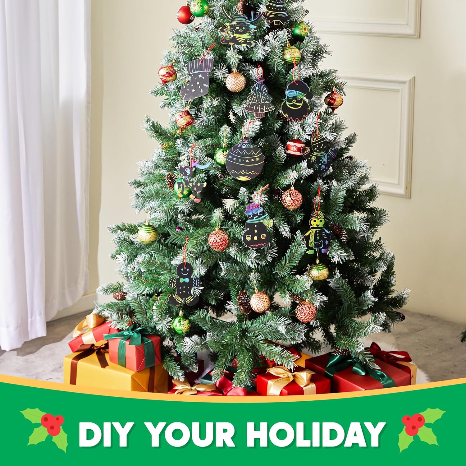 Contenuto della confezione: il kit di biglietti natalizi include 48 pezzi di carta da grattare, con 12 disegni unici, con 4 pezzi di ogni disegno. Viene fornito con 48 corde, 24 bastoncini di legno da disegno, 8 penne ad acquerello in diversi colori e 1 pennello a punta piatta da 1 cm. Ogni singolo gratta e vinci misura nel range di 11,9 x 11,9 cm. Scatena la creatività: il nostro kit natalizio Scratch Art fai da te presenta fronti antigraffio e posteriori colorati, offrendo il doppio del divertimento e della creatività. Gratta la superficie nera opaca per rivelare splendidi colori arcobaleno, quindi capovolgi per aggiungere il tuo tocco personale con i colori a tua scelta. Lascia correre la tua immaginazione durante le festività natalizie! Perfetto per creare decorazioni natalizie personalizzate e regali che sicuramente impressioneranno amici e familiari. Materiali di alta qualità: realizzato con materiali di alta qualità, il nostro kit di artigianato natalizio Scratch Art garantisce durata e divertimento duraturo. Le superfici antigraffio sono lisce e facili da usare, mentre i dorsi colorati forniscono una tela per infinite possibilità artistiche. Perfetto per Natale: sia che tu stia realizzando biglietti personalizzati, creando decorazioni natalizie uniche o semplicemente godendo di una rilassante sessione fai da te, il nostro kit per gratta e vinci ti offre più possibilità. Il nostro kit per gratta e vinci non è solo un'attività divertente, ma anche un regalo premuroso che incoraggia la creatività. Con l'eccitazione di rivelare motivi nascosti, questo kit è garantito per portare gioia e risate sia ai bambini che agli adulti. Divertimento senza fine: ogni biglietto da gratta e vinci è progettato con fori preforati e corda per appenderlo, rendendo facile esporre il tuo capolavoro sul tuo albero di Natale o a casa Scatena la tua creatività e gratta una varietà di motivi e appendili con il cordino. Che tu stia decorando alberi di Natale, realizzando ornamenti festivi o cercando il regalo perfetto, questa serie ha tutto il necessario per ospitare vivaci celebrazioni natalizie. (L'età minima per l'utilizzo dei nostri prodotti è di 36 mesi)