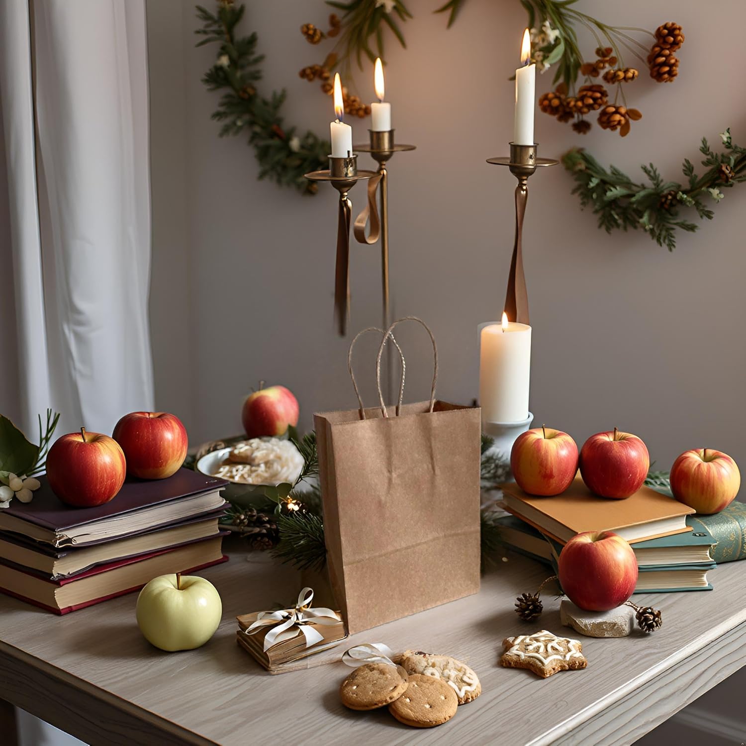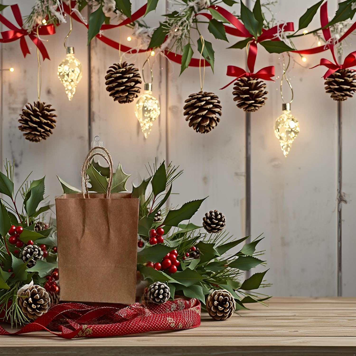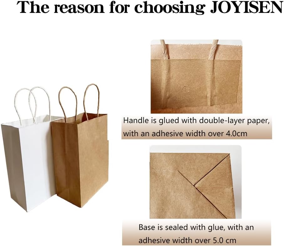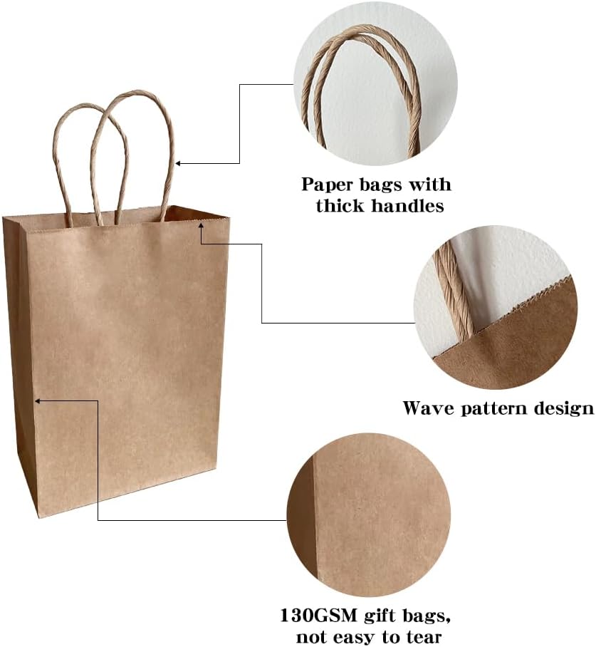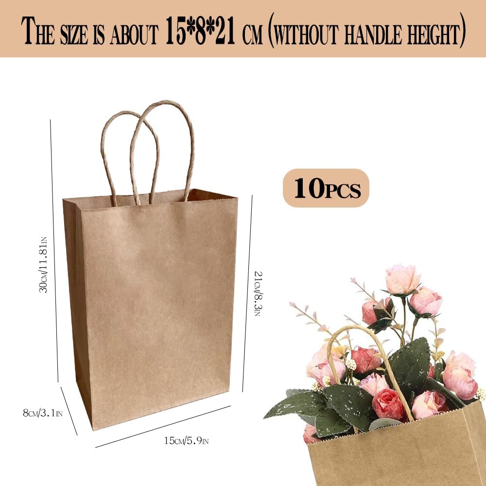 JOYISEN Sacchetti di carta Confezione da 10 Sacchetti regalo Piccoli Sacchetti di carta Kraft marrone da 130 g/m² con manico per compleanni Matrimoni Shopping Natale