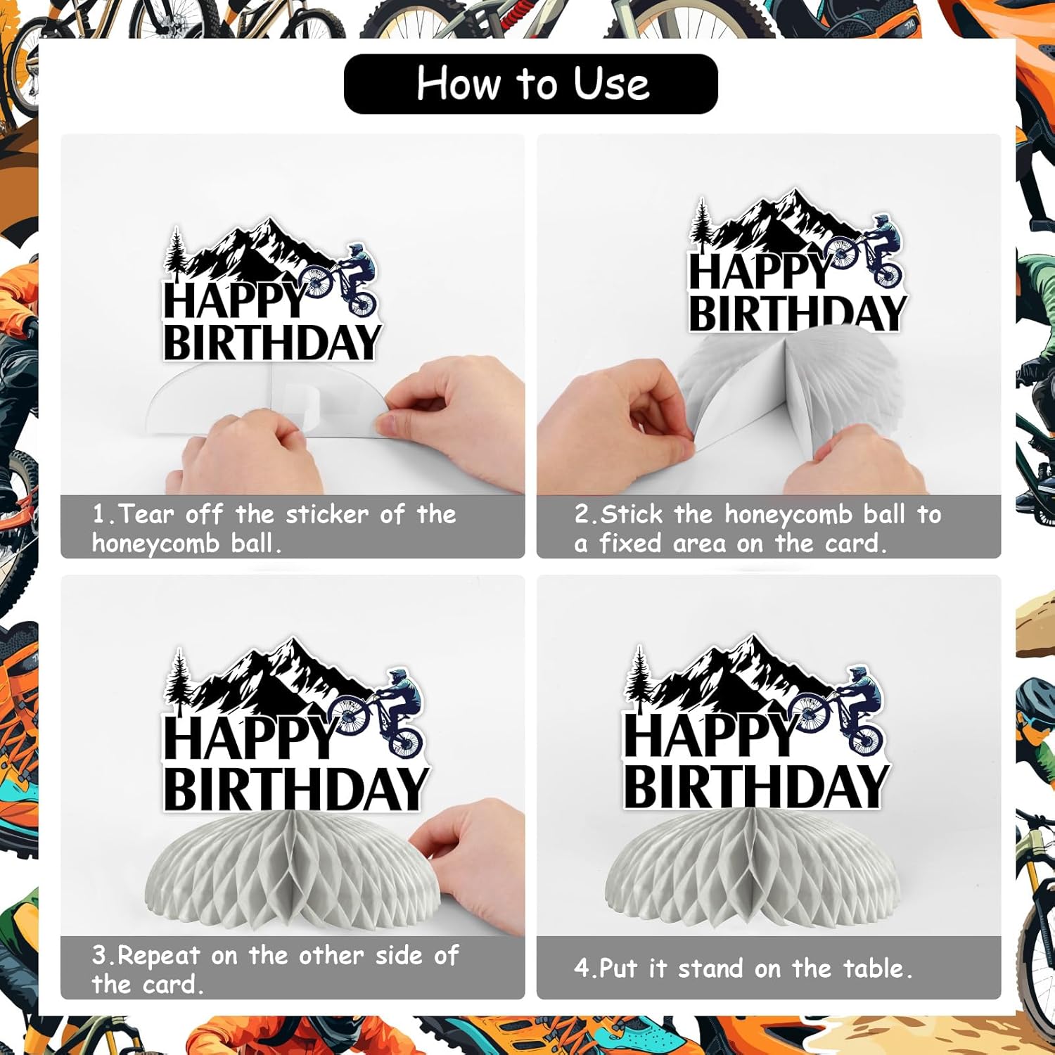 Decorazioni di compleanno per mountain bike: riceverai 8 pezzi di centrotavola a nido d'ape a tema mountain bike in diversi stili e 16 pezzi di elementi di fissaggio in metallo, una quantità sufficiente e vari stili possono rendere il tuo tavolo festivo più delicato. Alta qualità: questi centrotavola a nido d'ape a tema mountain bike sono realizzati in cartone, robusto e robusto e possono essere utilizzati per un lungo periodo di tempo. Puoi rimetterli nella borsa e riutilizzarli più volte. Design squisito: le decorazioni di compleanno in mountain bike sono progettate come lettere "Buon compleanno" e "Mi piace la mountain bike", abbinate a motivi a tema mountain bike, che sono chiaramente visibili e attirano l'attenzione, creando un'atmosfera meravigliosa per la tua festa di compleanno unica. Una scelta preziosa per le decorazioni per le feste: questo kit di decorazione di compleanno per mountain bike è ideale per feste di compleanno a tema mountain bike, bicicletta, BMX, corse sportive e altri, e può essere utilizzato per scattare foto memorabili da condividere con familiari e amici. Facile da montare: inserire il cartone nella scanalatura della base a nido d'ape, aprire la base a nido d'ape a 360°, strappare le strisce adesive su entrambi i lati o fissarle con graffette per creare una base perfetta a nido d'ape, quindi incollare i punti di incollaggio sui quattro angoli del fondo in cartone e attaccare le foto per completare la decorazione.