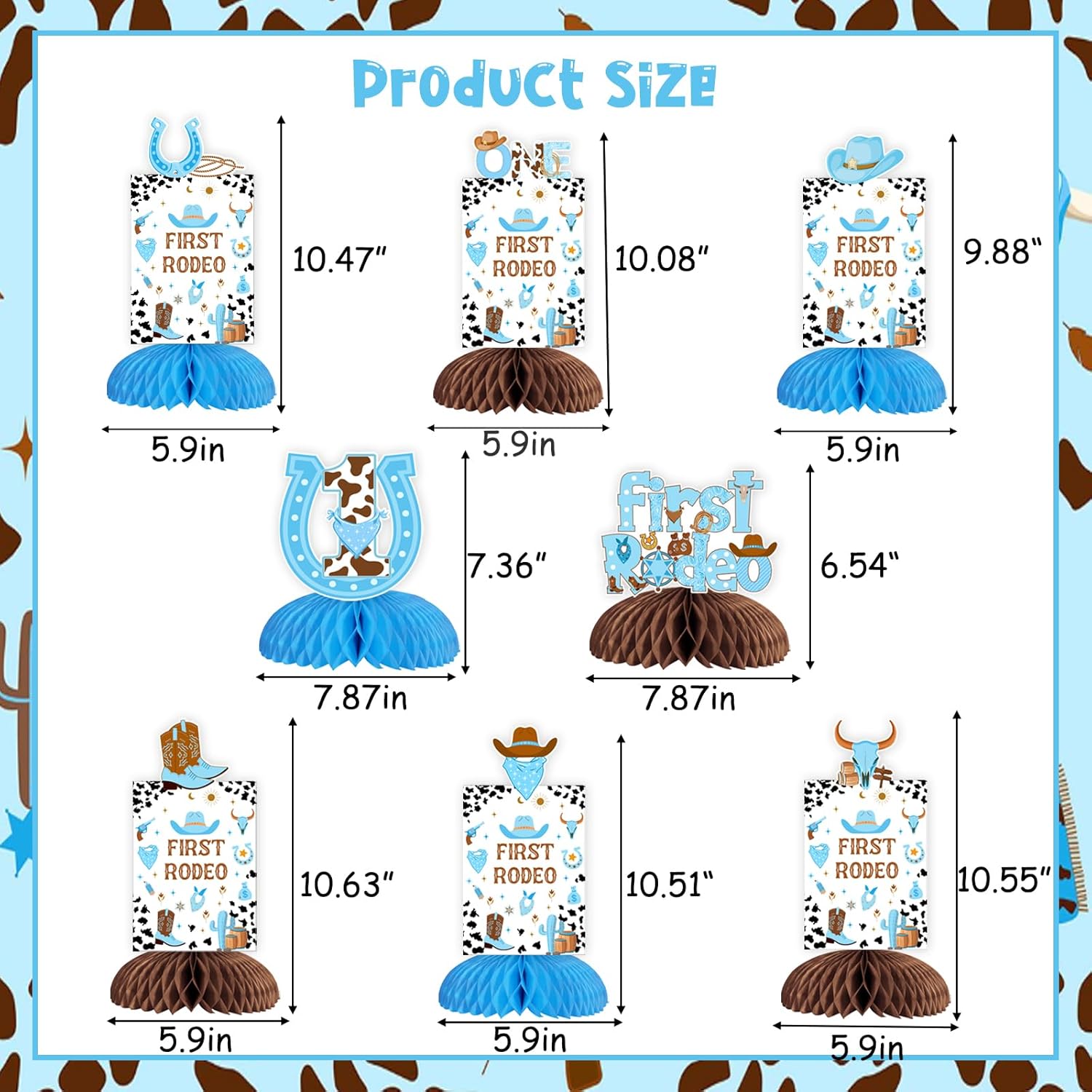 La confezione include: 8 centrotavola a nido d'ape a tema cowboy per il primo compleanno. Puoi usarli per decorare la tua festa e la tua festa sarà piena di atmosfera interessante. Materiale di qualità: le mie prime decorazioni da tavola rodeo sono realizzate in carta a doppia stampa robusta e squisita. Possono essere utilizzate a lungo e queste decorazioni per feste da tavolo non solo attirano l'attenzione da tutte le angolazioni, ma rendono anche la tua festa a tema piena di colore e gioia. Design a tema cowboy occidentale: i nostri topper da tavolo includono motivi a tema cowboy occidentale blu e marrone con diversi disegni, come cappello da cowboy, stivale, ferro di cavallo e altro ancora, molto speciale e piacevole alla vista. Creerà un'atmosfera divertente e forte per te alla festa di compleanno. Ampia applicazione: questo kit di forniture per feste rodeo blu marrone è ideale per feste di primo compleanno da cowboy, le mie prime feste a tema rodeo, feste a tema cowboy occidentale, adatto anche per decorazioni per la casa e la tavola, cabine fotografiche, decorazioni da tavola. Tutto illuminerà la tua festa di compleanno, creando l'ambiente più sorprendente per i tuoi ricordi indimenticabili. Facile da montare: inserire il cartone nella scanalatura della base a nido d'ape, aprire la base a nido d'ape a 360°, strappare le strisce adesive su entrambi i lati o fissarle con graffette per creare una base a nido d'ape perfetta; in secondo luogo, attaccare i punti di incollaggio sui quattro angoli dello sfondo di cartone e attaccare le foto per completare la decorazione.