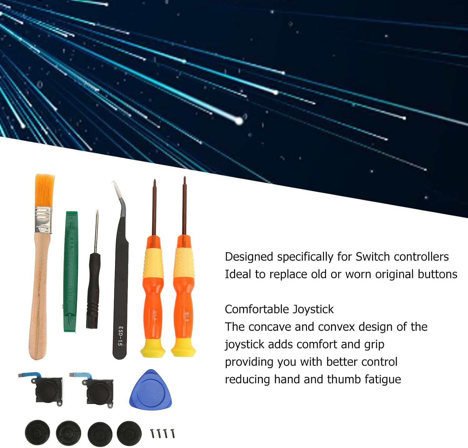APPLICAZIONE: Progettato specificatamente per i controller Switch, questo kit di strumenti di riparazione 17 in 1 è ideale per sostituire i pulsanti originali vecchi o usurati, conferendo al controller un aspetto rinnovato. JOYSTICK CONFORTEVOLE: il joystick presenta un design concavo e convesso, garantendo comfort e presa. Questo design offre un migliore controllo, riduce l'affaticamento della mano e del pollice e migliora la tua esperienza di gioco complessiva. PROFESSIONALE: con questo kit di strumenti di riparazione 17 in 1, puoi utilizzare e riparare in modo indipendente la tua console, garantendo una configurazione più sicura per i cacciaviti del controller Switch. CACCIAVITE DUREVOLE: il cacciavite resistente all'usura è progettato ergonomicamente con un'impugnatura antiscivolo, che rende più facile l'estrazione delle viti e più comodo da usare durante le riparazioni. MATERIALI DI QUALITÀ: Realizzato con materiali metallici e siliconici di alta qualità, il kit joystick e cacciavite sostitutivo garantisce stabilità, robustezza, durata e praticità.