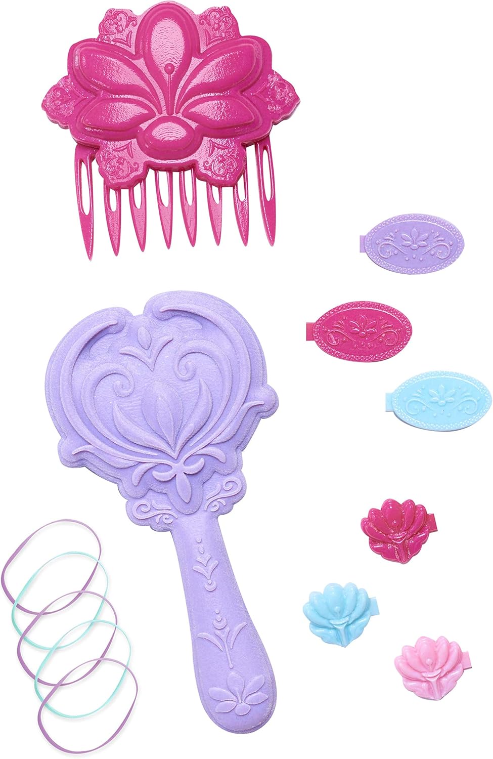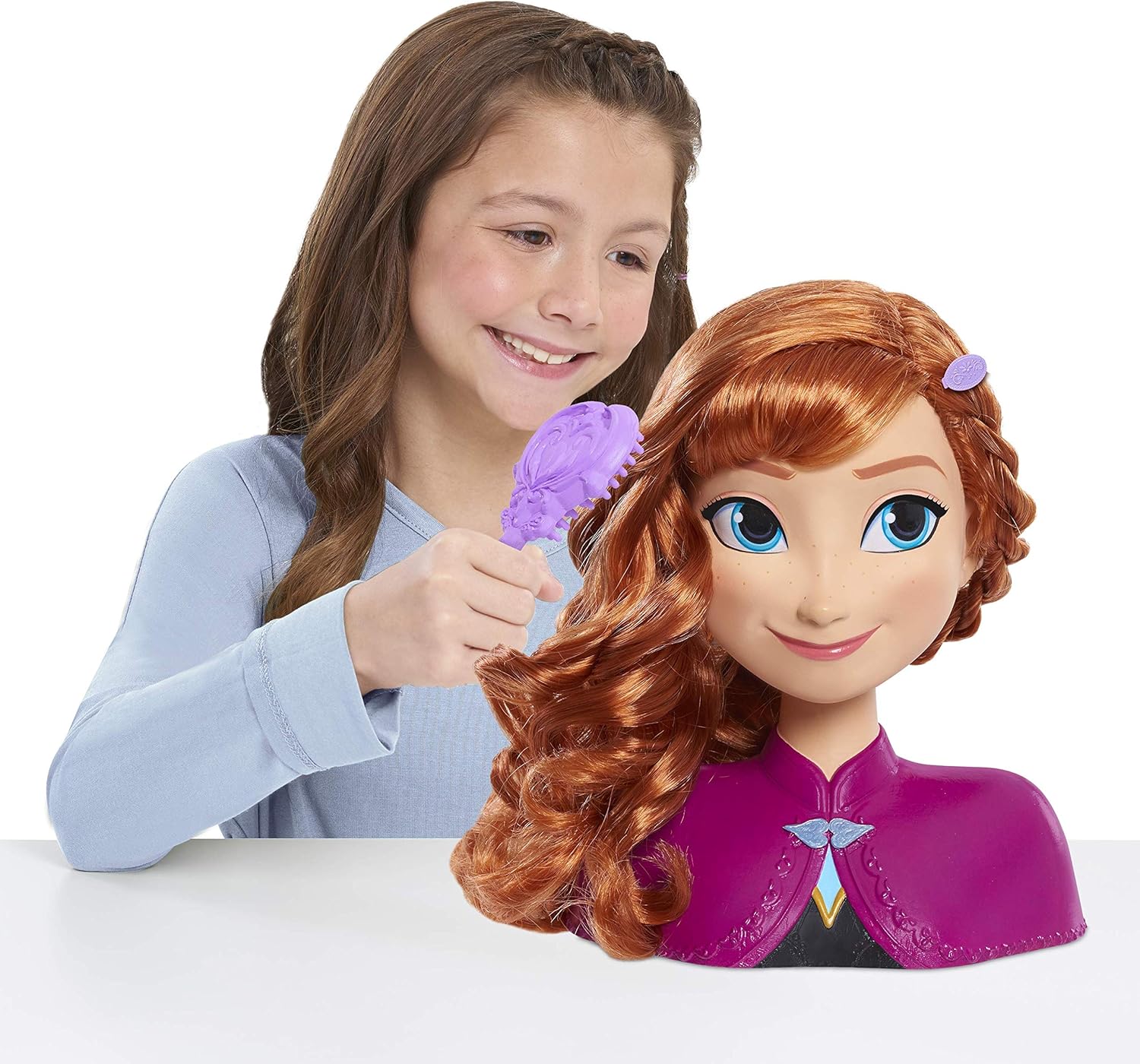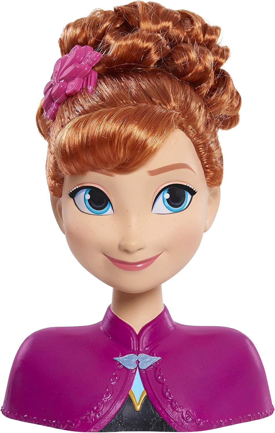 La Disney Frozen Anna Styling Head ha così tanti capelli gioco possibile La testina Disney Frozen Anna include: 1 spazzola per fiori di croco, 6 fermagli per capelli, 1 pettine a fiore di croco e 5 elastici Disney Frozen Anna Styling Head con lunghi capelli rossi nelle sue trecce iconiche I bambini possono usare il pennello per creare divertenti acconciature su Anna