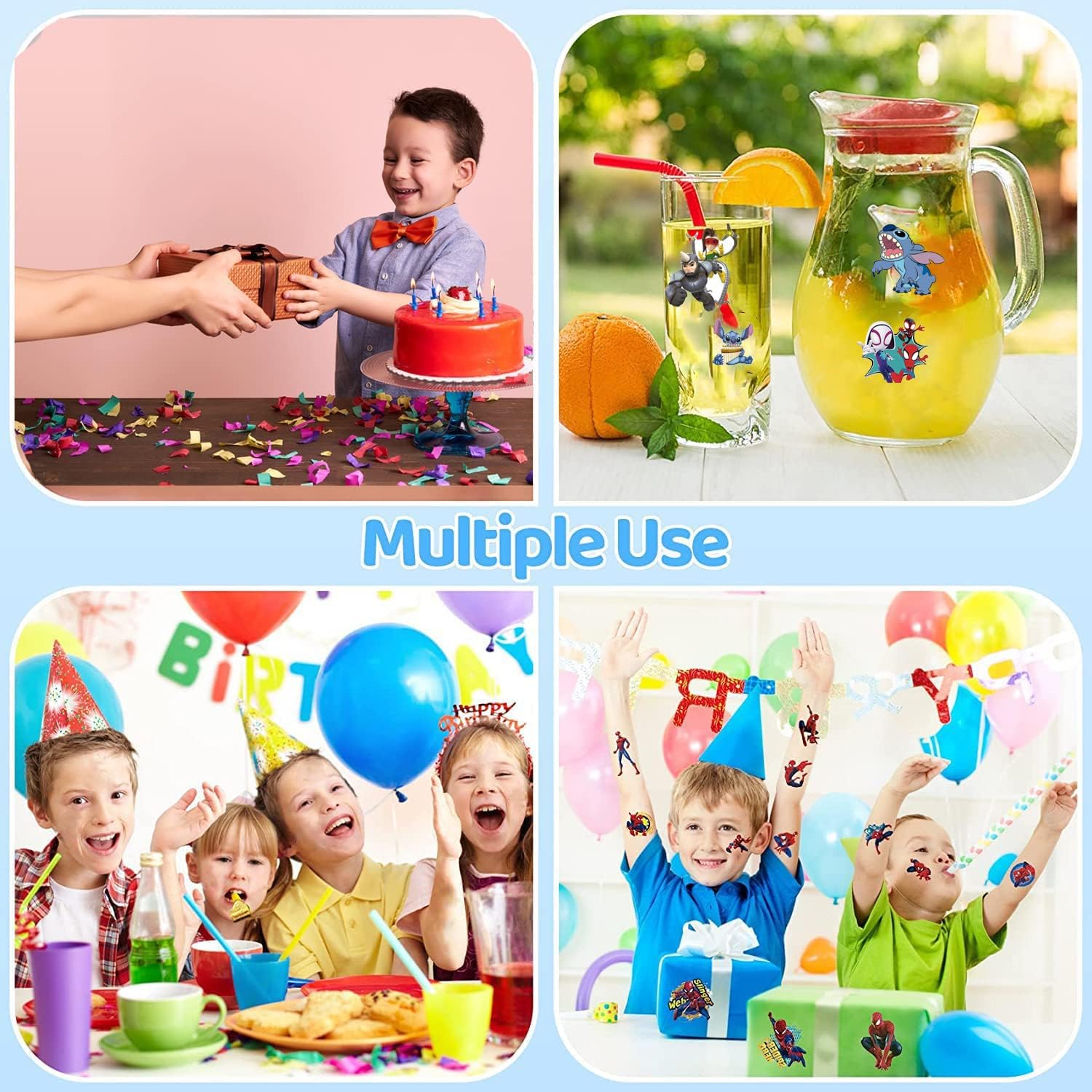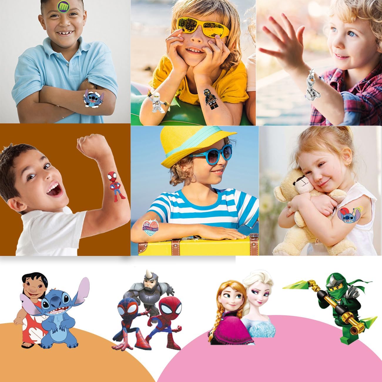 Tatuaggi per bambini, 4 stili, tatuaggi temporanei impermeabili per bambini e bambine. Tatuaggi a tema preferiti per bambini, atossici e sicuri per i bambini. Materiale delicato sulla pelle: il set di tatuaggi per ragazze può essere combinato a piacimento, i ragazzi e le ragazze possono essere attaccati a braccia, gambe, schiena, spalle e viso. Tatuaggi per bambini realizzati in plastica atossica impermeabile, delicato sulla pelle, impermeabili e resistenti al sudore, facili da applicare e durano per diversi giorni nonostante il lavaggio, la doccia o il bagno Molto adatto per feste di compleanno per bambini, premi, regali, regalo di compleanno per bambini, regalo di Pasqua, ecc., motivi allegri per bambini piccoli e scolastici, deve essere popolare tra i bambini! Tatuaggi per bambini e bambine, set di pensierini per il compleanno dei bambini, piccoli giocattoli per imbottitura di pinata, Give Aways, compleanno per bambini, regalo di compleanno per bambini