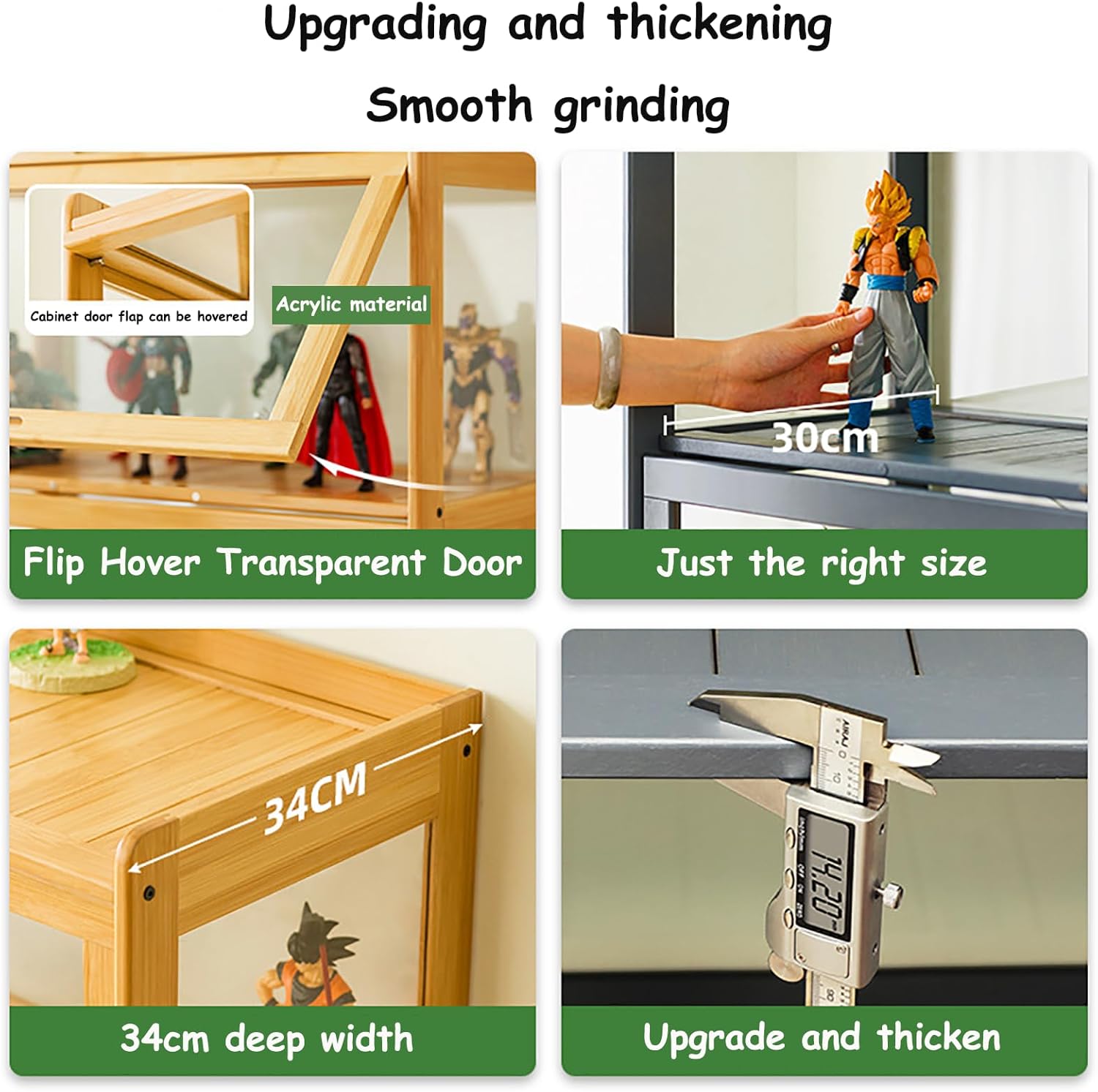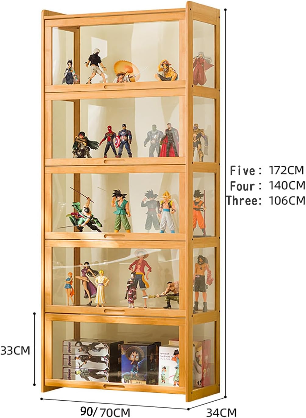 😀【Design Unico】 Quando giri la porta trasparente, galleggia nell'aria. Le maniglie premurose rendono le tue porte più attraenti e dal design accattivante, consentendoti di accedere facilmente a più oggetti. Perfettamente dimensionato per adattarsi alla maggior parte delle figure. La superficie della vernice è liscia, non è facile accumulare polvere ed è molto facile da pulire. 😀 【Materiali preferiti】 La vetrina accuratamente progettata adotta una struttura in acrilico e bambù sano, materiali in bambù alpino accuratamente selezionati, con struttura forte e consistenza solida, e il design è naturale e sano, semplice e moderno. È bello e molto attraente, rendendo l'ambiente domestico più piacevole. 😀【Sigillatura resistente alla polvere】Tutti i lati sono completamente sigillati per prevenire la polvere, il pannello posteriore laminato senza cuciture previene polvere e gocce d'acqua e ogni scomparto può essere aperto individualmente per una facile pulizia individuale. Pratico e multifunzionale, permette di dividere lo spazio e organizzare adeguatamente lo stoccaggio. 😀【Grande capacità】La grande capacità ben progettata ti consente di riporre i tuoi oggetti preferiti su più livelli e le diverse specifiche ti consentono di utilizzare in modo efficace il piccolo spazio della tua casa. Un compagno ideale per rendere la tua personalità più eclettica. 😀【Ampia gamma di usi】Non solo puoi posizionare vari personaggi, ma anche Lego, libri, decorazioni, statue, cornici per foto, ecc. Esprimi il tuo amore, adatto per studio, soggiorno, camera da letto, ecc. Multifunzionale, uno strato può essere posizionato sul bancone.