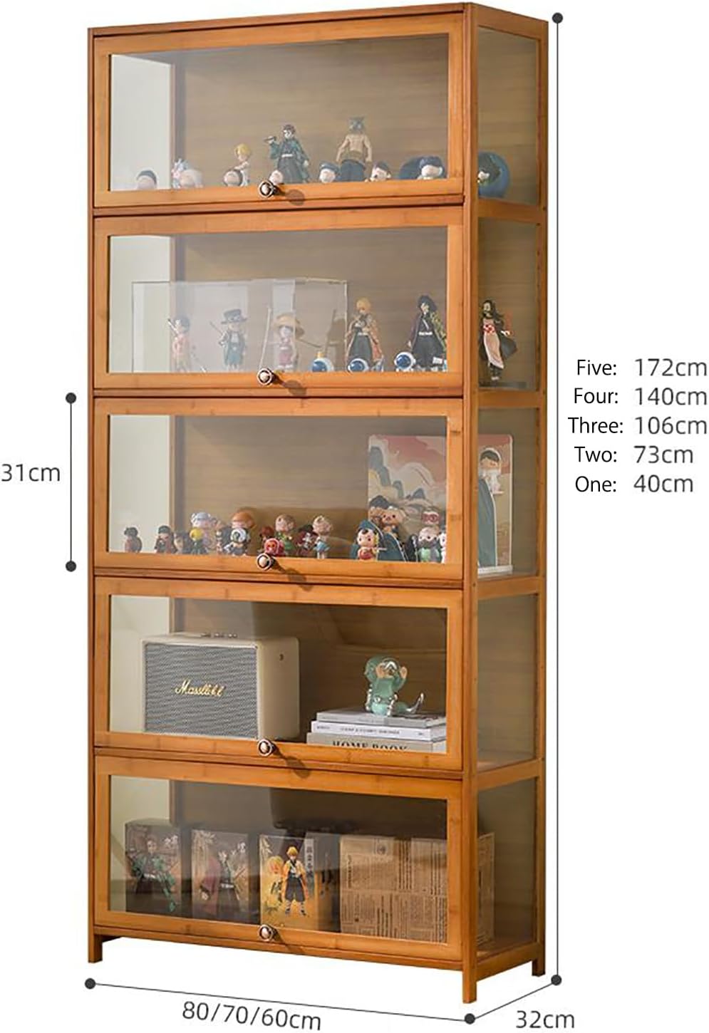 😀【DESIGN UNICO】 Capovolgi la porta trasparente per restare sospeso. Le maniglie pensate rendono le porte più attraenti, dal design accattivante e consentono un facile accesso a più oggetti. La dimensione giusta per adattarsi alla maggior parte delle figure e altro ancora. Finitura verniciata liscia, polvere lavabile, molto facile da mantenere. 😀【MATERIALI PREFERITI】La vetrina accuratamente progettata adotta una struttura in acrilico e bambù sano di erica, materiale di bambù di erica alpina accuratamente selezionato, con struttura forte, consistenza forte, design naturale e sano, semplice e moderno. È bello e molto attraente, rendendo il tuo ambiente domestico più piacevole alla vista. 😀【Sigillazione antipolvere】Quattro lati sono completamente sigillati contro la polvere, il pannello posteriore laminato senza cuciture previene la polvere e la caduta e ogni scomparto può essere aperto in modo indipendente per una facile pulizia individuale. Pratico e multifunzionale, può dividere ragionevolmente gli spazi e mantenere organizzato il tuo spazio di archiviazione. 😀【GRANDE CAPACITÀ】La grande capacità ben progettata ti consente di riporre i tuoi oggetti preferiti su più livelli e l'ampia gamma di specifiche ti consente di utilizzare in modo efficace il piccolo spazio della tua casa. Il compagno ideale per i tuoi personaggi per renderli più eclettici. 😀【AMPIA GAMMA DI UTILIZZI】Non solo puoi posizionare vari personaggi, ma puoi anche posizionare Lego, libri, decorazioni, statue, cornici per foto, ecc. per esprimere il tuo amore, perfetto per il tuo studio, soggiorno, camera da letto, ecc. Multifunzionale, uno strato può essere posizionato sul piano di lavoro.