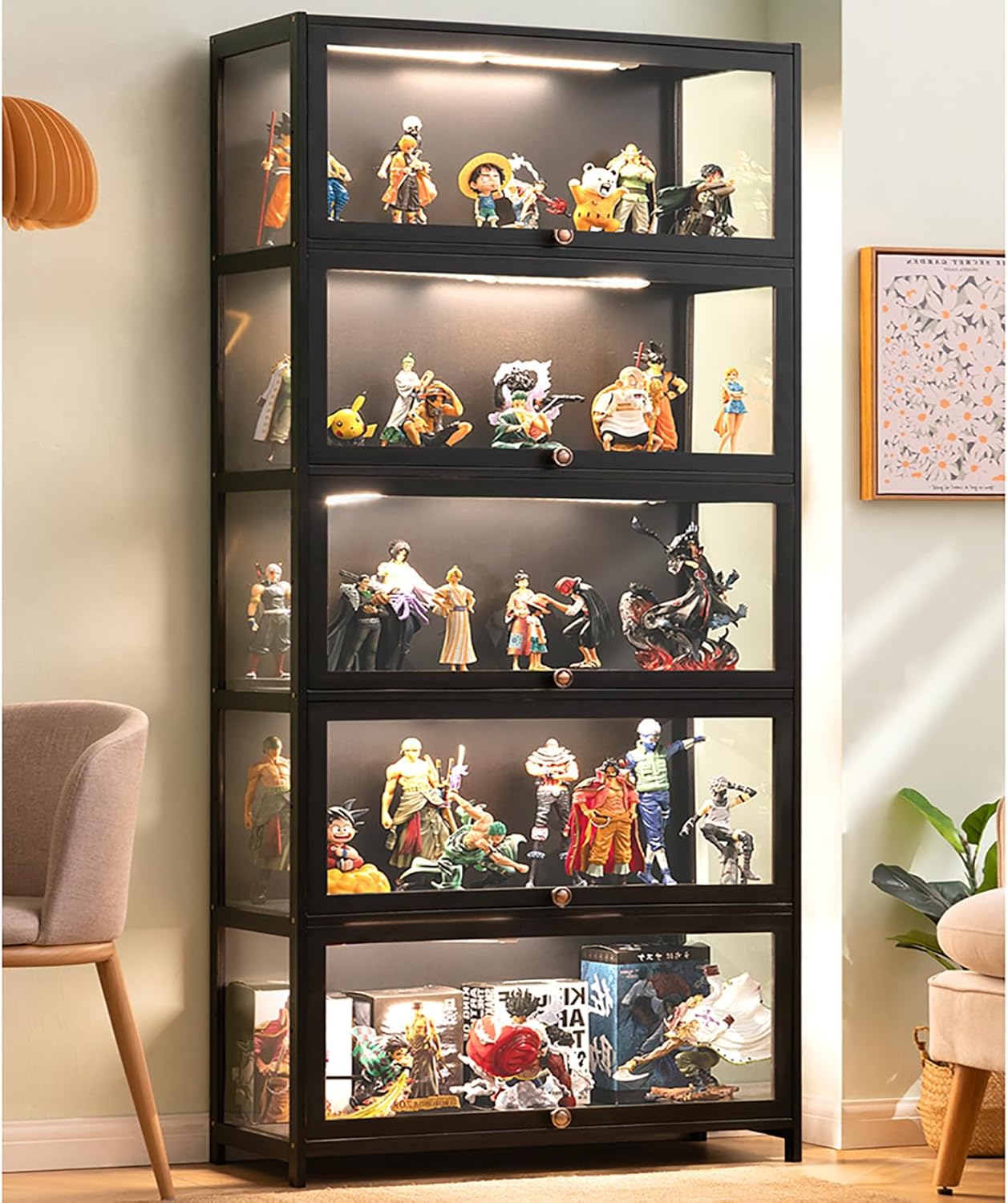 😀 【Materiale preferito】 La vetrina ben progettata è realizzata in acrilico e sana struttura in bambù erica con materiale selezionato in bambù erica alpina, con struttura forte, consistenza forte, design naturale e sano, semplice e moderno. 😀【AMPIE APPLICAZIONI】Non solo puoi posizionare vari personaggi, ma puoi anche posizionare Lego, libri, decorazioni, statue, cornici per foto, ecc. Perfetto per l'ufficio, il soggiorno, la camera da letto e altro ancora. 😀【Guarnizione antipolvere】Pannello posteriore laminato senza cuciture, completamente sigillato, resistente alla polvere, previene la polvere e la caduta. Ogni scomparto può essere aperto in modo indipendente per una facile pulizia individuale. 😀 【Design unico】 È possibile passare il mouse sopra la ribalta della porta dell'armadio. Le maniglie ben studiate rendono le porte più attraenti e il design è esteticamente gradevole per consentirti di riporre più oggetti con facile accesso. L'elegante laminato in puro bambù a blocchi di colore nero è facile da pulire e da utilizzare. Forte aspirazione della porta, la porta dell'armadio è saldamente assorbita. 😀【GRANDE CAPACITÀ】 Grande capacità ben progettata. Più livelli di archiviazione per i tuoi articoli preferiti. Allo stesso tempo, le sue ricche specifiche possono utilizzare efficacemente il piccolo spazio di casa.