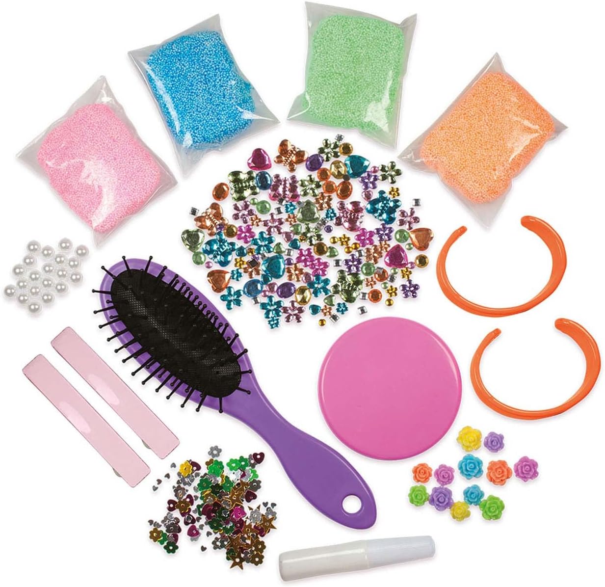 Decora il tuo set di bellezza con Jill Schirnhofer! Crea il tuo set di bellezza più bello con Jill Schirnhofer. Decora una spazzola per capelli, uno specchio, braccialetti e fermagli per capelli con argilla espansa glitterata. Fai brillare le tue creazioni con strass, paillettes, bellissimi fiori e perle! Caratteristiche del prodotto: ? Decora il tuo set di bellezza passo dopo passo per ragazze e ragazzi a partire dagli 8 anni? ? ? Decora il tuo set di bellezza? stimola la creatività e lo sviluppo delle capacità motorie fini? Scatola unica per il fai da te che contiene tutti i materiali necessari per decorare la tua spazzola per capelli, specchio, bracciali e fermagli per capelli! Informazioni su Jill Jill Schirnhofer è conosciuta come illustratrice, scrittrice, creatrice di programmi e attiva come attrice dal 2014. Incoraggiare i bambini a diventare creativi da soli li ha sempre considerati importanti. ? ? ?Non è solo un buon sbocco, ma aiuta anche i bambini a rilassarsi e a non pensare a nulla per un po"?. In questa scatola, ha optato per un'idea artigianale allegra e facile da realizzare che ispirerà i bambini a liberare la loro creatività e a progettare le proprie carte! Contenuto: ? 4 confezioni di argilla glitterata in diversi colori? 1 spazzola per capelli. 1 specchietto. 2 bracciali? 2 fermagli per capelli. Più di 120 diverse perle di schiuma? 12 diversi fiori di plastica? 20 perline decorative? Paillettes ? Colla? Istruzioni (lingua italiana non garantita)