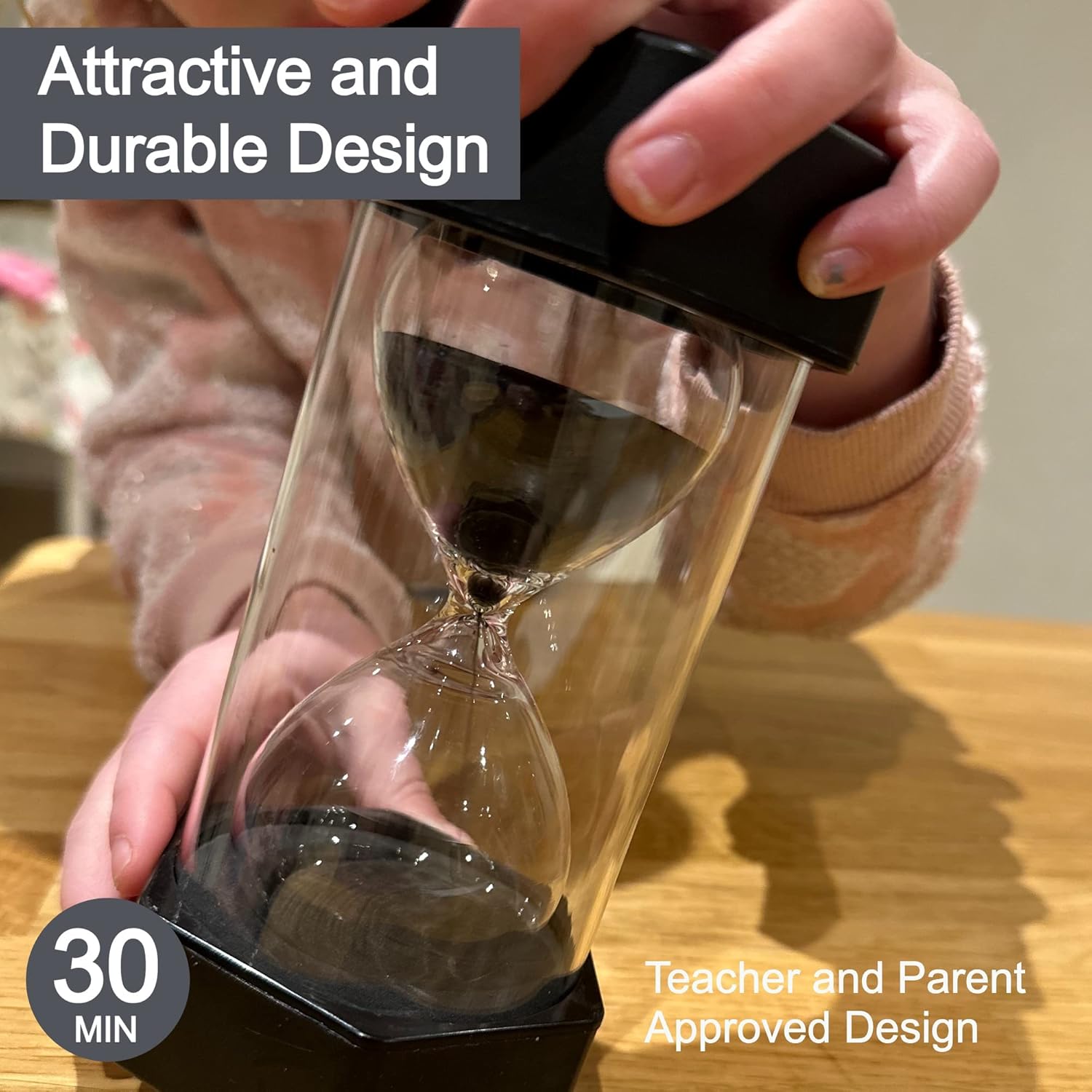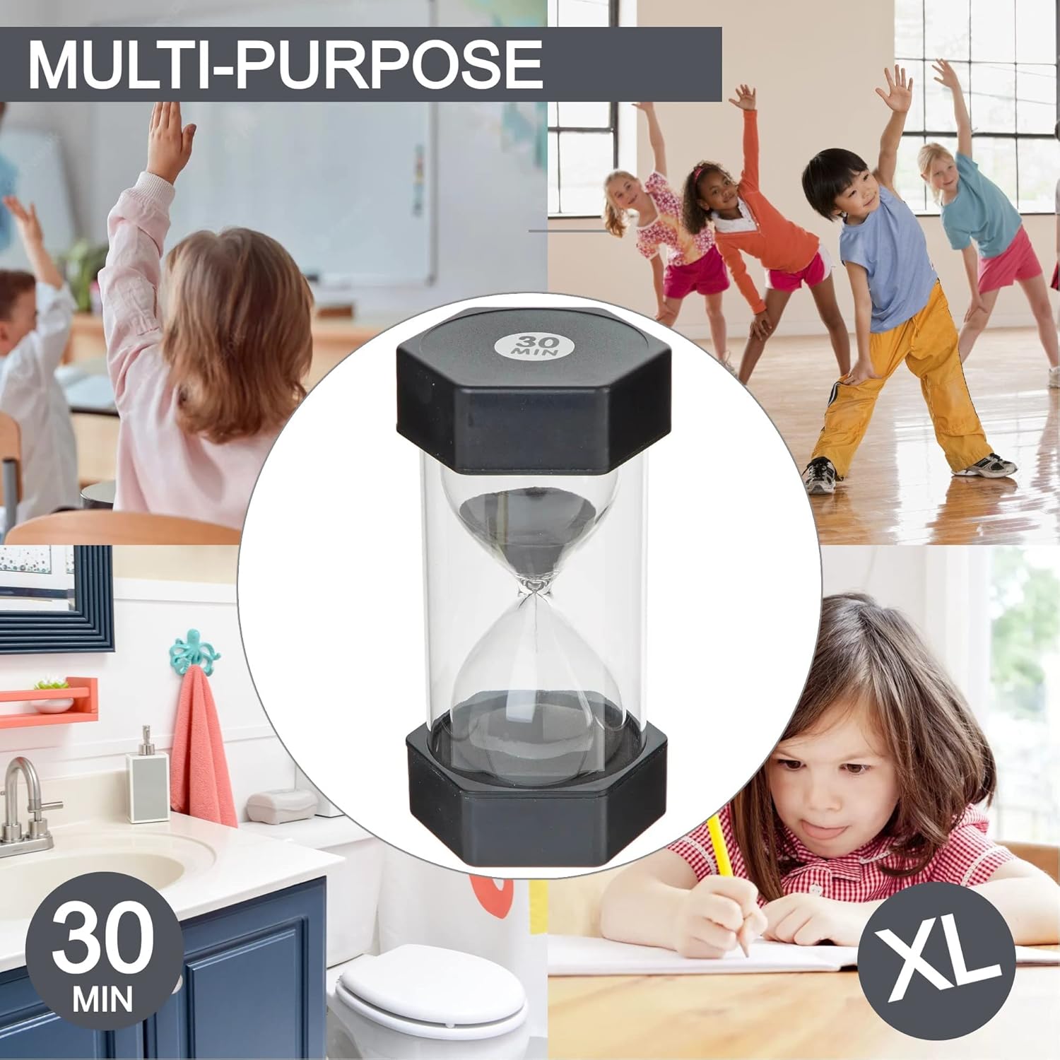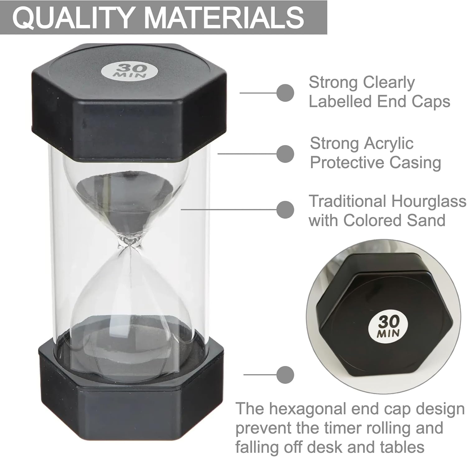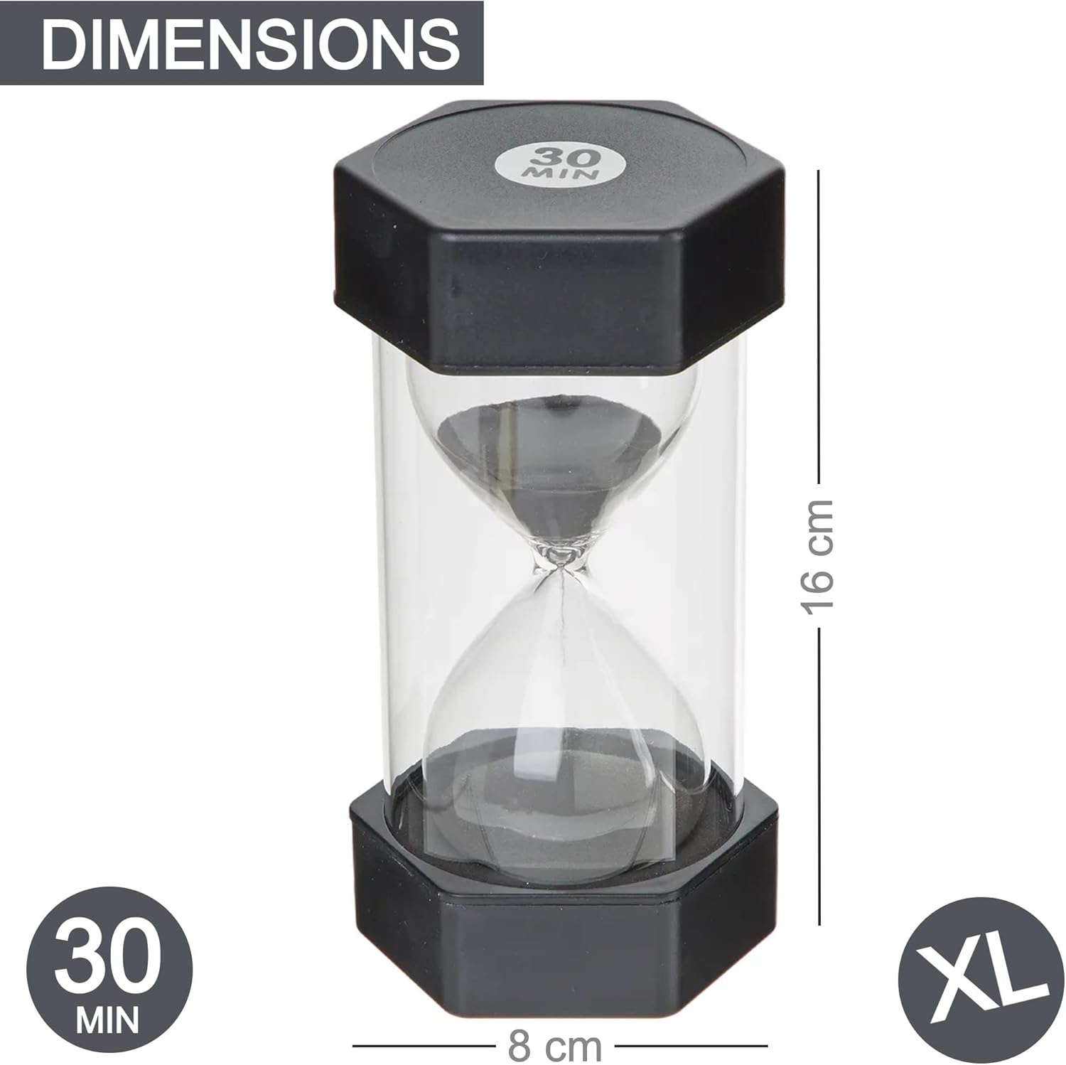 Design grande e luminoso: i timer per sabbia sono alti 16 cm e larghi 8 cm, quindi perfetti per le mani piccole e come grande visualizzazione visiva del tempo. La sabbia colorata all'interno è coordinata con i tappi esagonali in plastica per un design accattivante e durevole Materiali di qualità: il robusto involucro protettivo in acrilico circonda una clessidra tradizionale. Combinato con un cappuccio forte chiaramente etichettato. I timer sono super resistenti, quindi perfetti per i bambini come non si rompono facilmente. Multiuso: i timer per sabbia sono comunemente usati in classe, casa, cucina, esami, terapia e lezioni di esercizio Strumento di gestione del tempo: i grandi occhiali da ora aiutano i tuoi bambini a fare le cose in modo più efficiente e sviluppare un forte senso del tempo. Facile da usare: utilizzare questi grandi timer per sabbia è un processo molto semplice. Tutto ciò che serve è posizionare il suo lato piatto sulla superficie e il tempo inizia. Basta girare per ricominciare