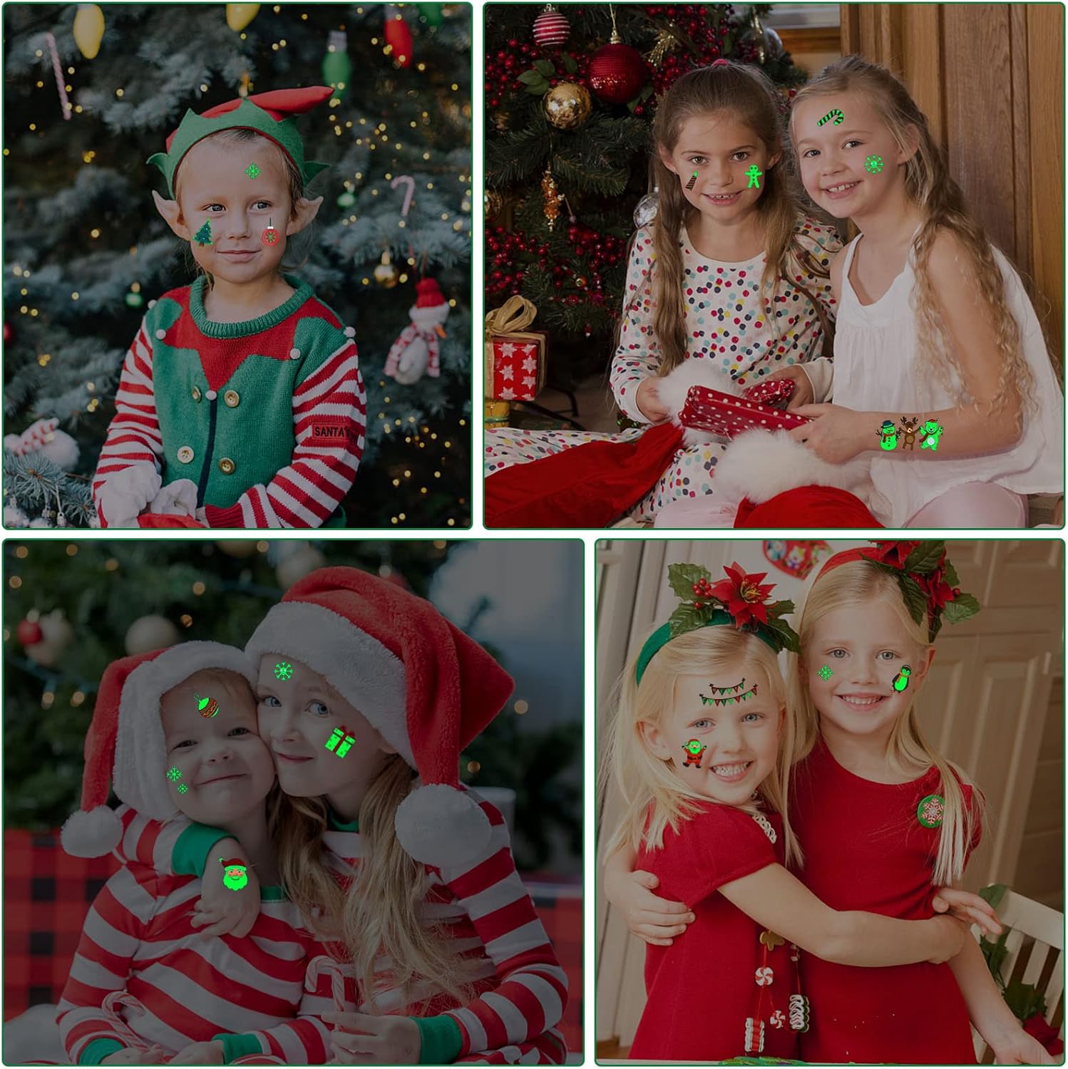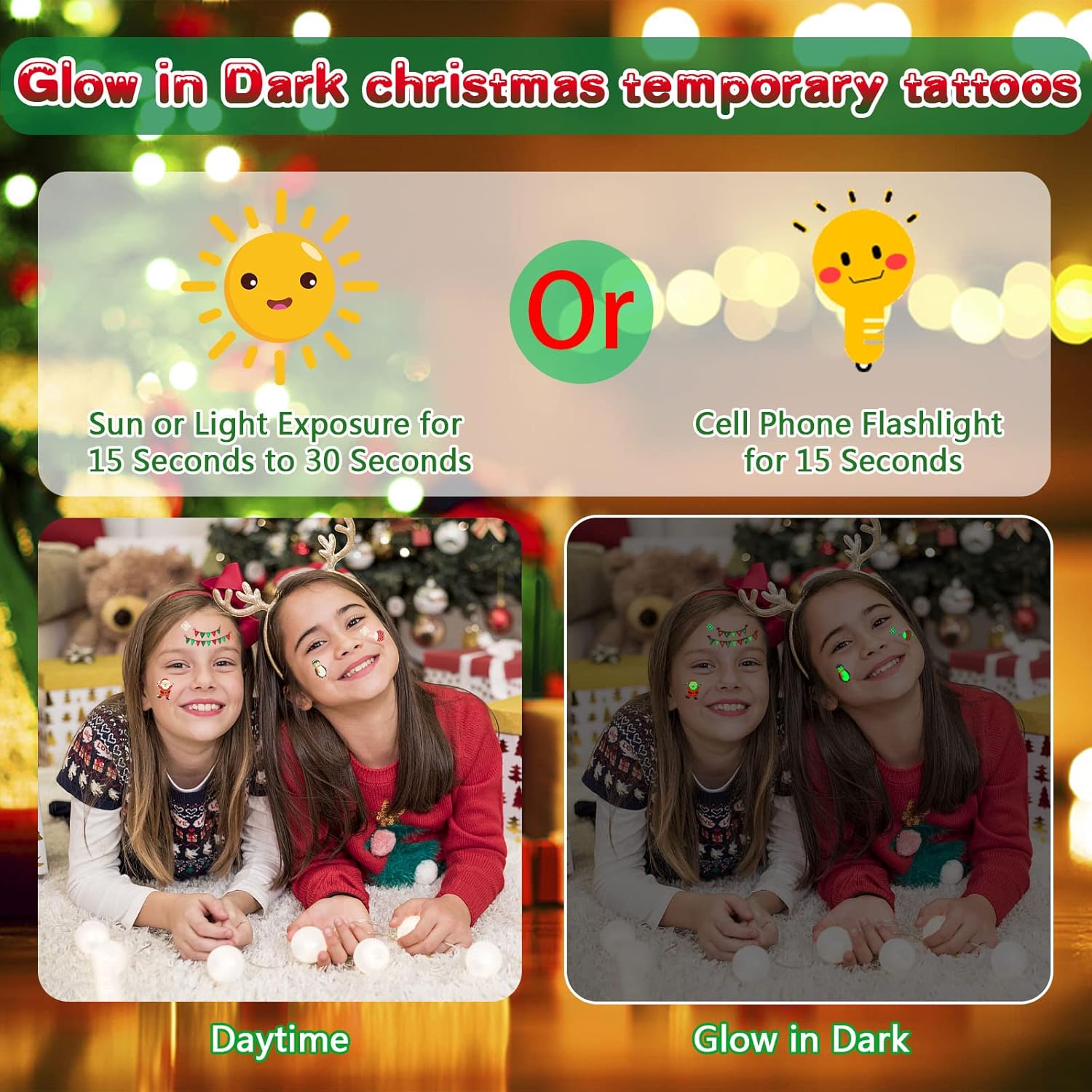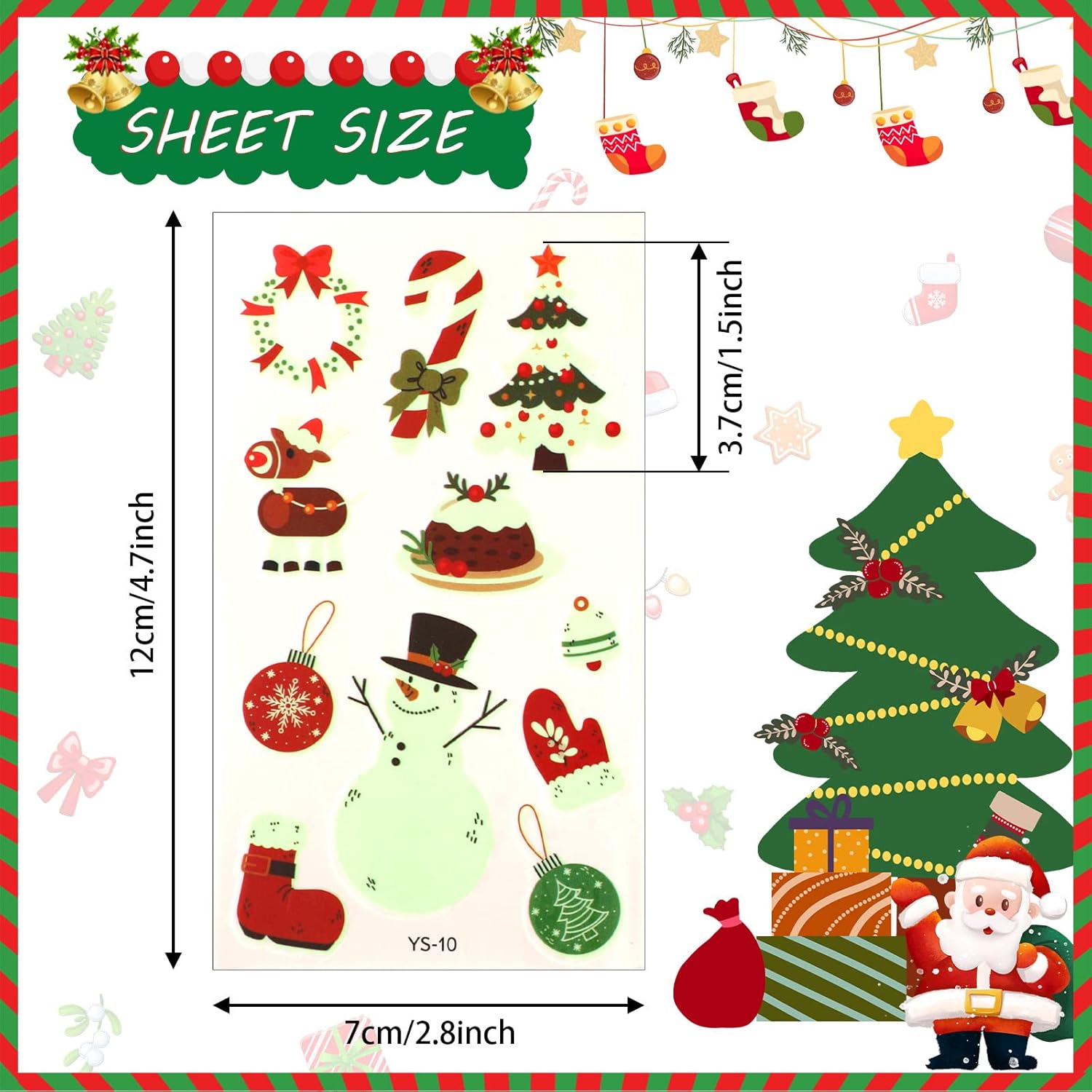 Quantità di adesivi per tatuaggi: riceverai 20 fogli di luminosi tatuaggi natalizi per bambini con oltre 350 adesivi in totale. Tatuaggio temporaneo per bambini che si illumina al buio, che è un fantastico regalo di Natale per bambini. Stili di tatuaggio: i nostri tatuaggi temporanei per bambini includono Babbo Natale, pupazzo di neve, omino di pan di zenzero, alce, albero di Natale, campane, pinguini, ecc., che offre molteplici scelte per i bambini. Abbina gli abiti natalizi ai tatuaggi dei bambini e porta un tocco festoso alla tua casa. Materiale sicuro: i tatuaggi temporanei natalizi adottano materiale sicuro, adatto a bambini di età superiore a 3 anni e adolescenti. Inoltre, le nostre calze natalizie hanno effetti luminosi, che saranno un grande successo alla festa quando spegni le luci di notte. Utilizzo: posiziona il lato con il design dei nostri tatuaggi temporanei natalizi per bambini sulla tua pelle. Immergi gli adesivi in acqua per 20-30 secondi. Quindi staccare la pellicola quando gli adesivi sono asciutti. Il tatuaggio temporaneo per bambini può essere applicato su qualsiasi punto della pelle e rimane per 2-3 giorni. Se vuoi rimuoverlo, ricordati di pulirlo con alcol. Ampia applicazione: i tatuaggi natalizi sono un fantastico ripieno per calze, bomboniere, regali di Natale, decorazioni per feste, premi di giochi, regali di compleanno, forniture per feste, giocattoli natalizi, decorazioni per bicchieri d'acqua, adatti per feste di Natale, feste di compleanno e attività scolastiche. I tatuaggi dei bambini possono essere attaccati su braccia, viso, spalle, gambe, ecc. Puoi anche attaccare i nostri tatuaggi luminosi su pareti, palloncini, scaffali al buio