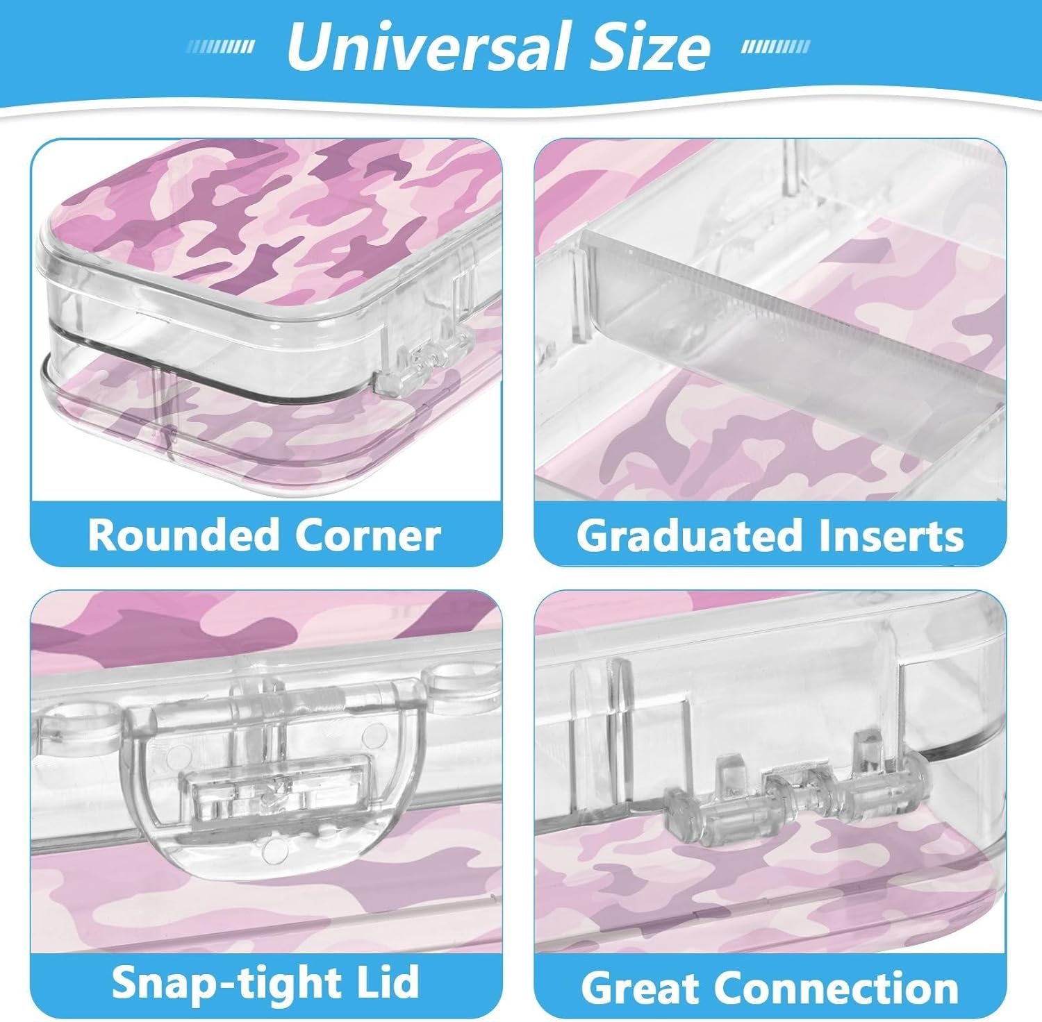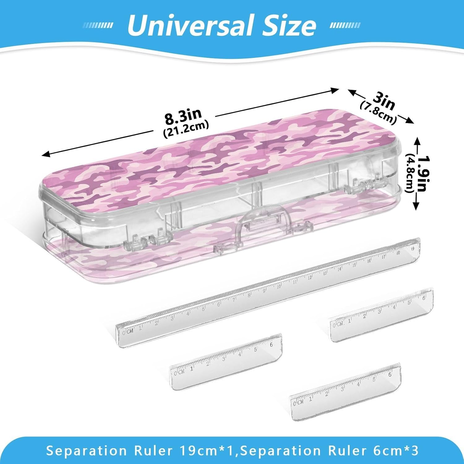 Plastica PET. Resistenza: presenta una struttura robusta e trasparente in PET. Facile da pulire; si consiglia il lavaggio a mano (non lavare in lavatrice/candeggina). Mantiene la chiarezza e resiste all'uso quotidiano negli zaini per l'apprendimento, il lavoro o i viaggi. Doppio strato: il design a doppio strato offre una grande capacità. Entrambi gli strati possono contenere matite, pennarelli o piccoli oggetti come gomme, graffette e clip. Consigliato per bambini dai 3 anni in su. Conservazione personalizzabile: la scatola trasparente include 3 divisori corti (6 cm) e 1 lungo (19 cm). Rimuovili facilmente per progettare 6 sezioni, risolvendo la disorganizzazione e mantenendo ogni piccolo oggetto classificato. Divisori e righelli di separazione: 3 divisori corti (6 cm) e 1 lungo (19 cm) sono anche righelli funzionali! Adatto per compiti rapidi e soluzioni intelligenti per studenti e artigiani. Coperchio sicuro a scatto: l'affidabile chiusura a scatto mantiene entrambi gli strati saldamente chiusi, garantendo che tutto rimanga perfettamente in posizione durante lo zaino.