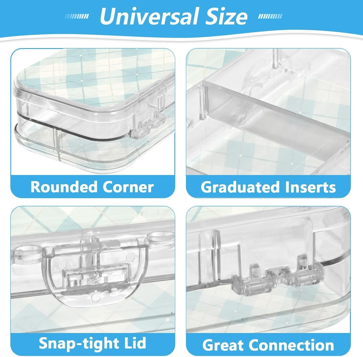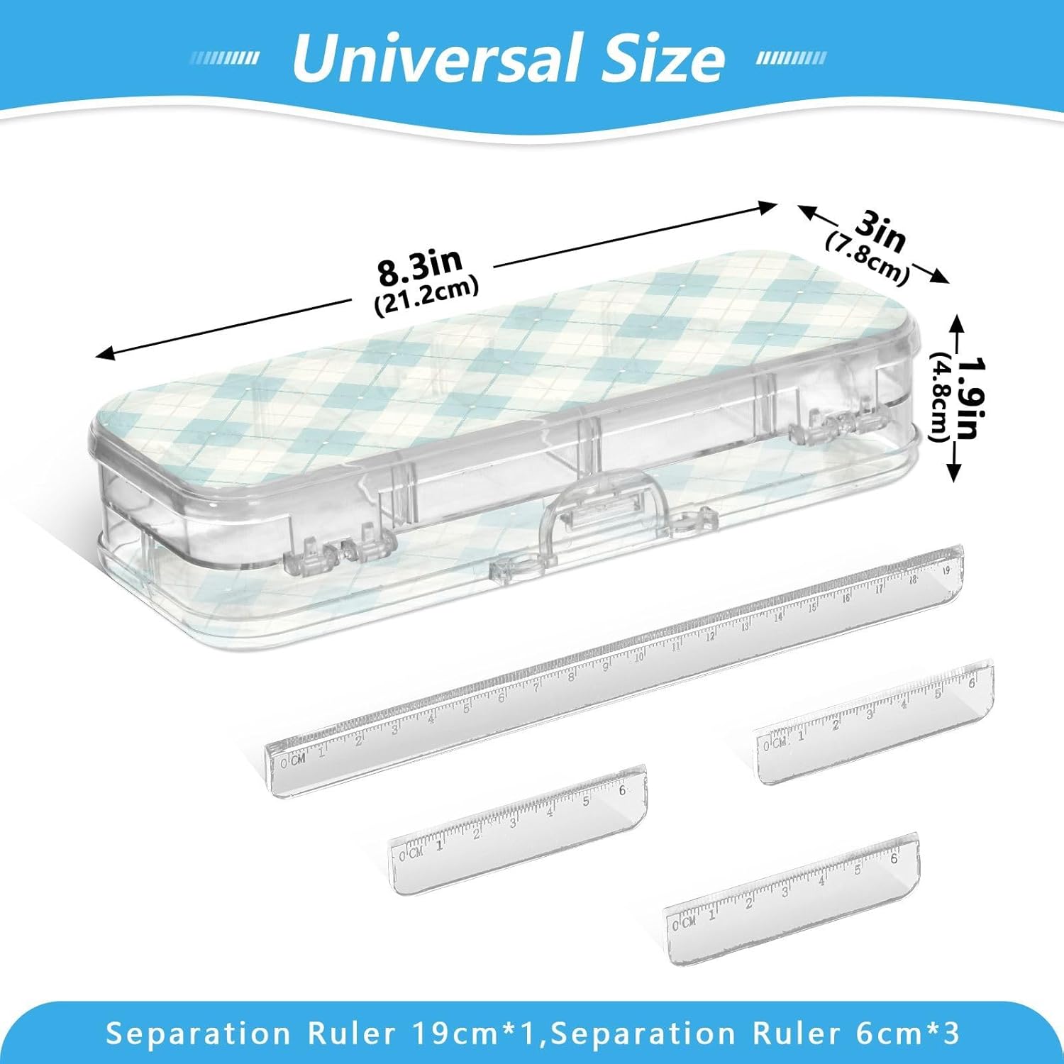 Plastica PET. Resistenza: presenta una struttura robusta e trasparente in PET. Facile da pulire; si consiglia il lavaggio a mano (non lavare in lavatrice/candeggina). Mantiene la chiarezza e resiste all'uso quotidiano negli zaini per l'apprendimento, il lavoro o i viaggi. Design trasparente a doppio strato: massimizza lo spazio di archiviazione nel minimo spazio. Due scomparti in plastica PET trasparente per matite, pennarelli, gomme, clip e altro ancora. Perfetto per mantenere la scuola, l'ufficio o oggetti artigianali visibili e accessibili. Adatto per bambini dai 3 anni in Scomparti personalizzabili: include 3 divisori corti + 1 lungo rimovibile. Crea 6 sezioni o spazi aperti liberamente. I divisori fungono da pratici righelli. Organizza penne, piccoli oggetti in modo sicuro, evitando perdite e disordine senza sforzo. Divisori e righelli di separazione: 3 divisori corti (6 cm) e 1 lungo (19 cm) sono anche righelli funzionali! Adatto per compiti rapidi e soluzioni intelligenti per studenti e artigiani. Coperchio affidabile: la chiusura a scatto assicura che entrambi gli strati rimangano al sicuro. Il contenuto rimane protetto e perfettamente posizionato.