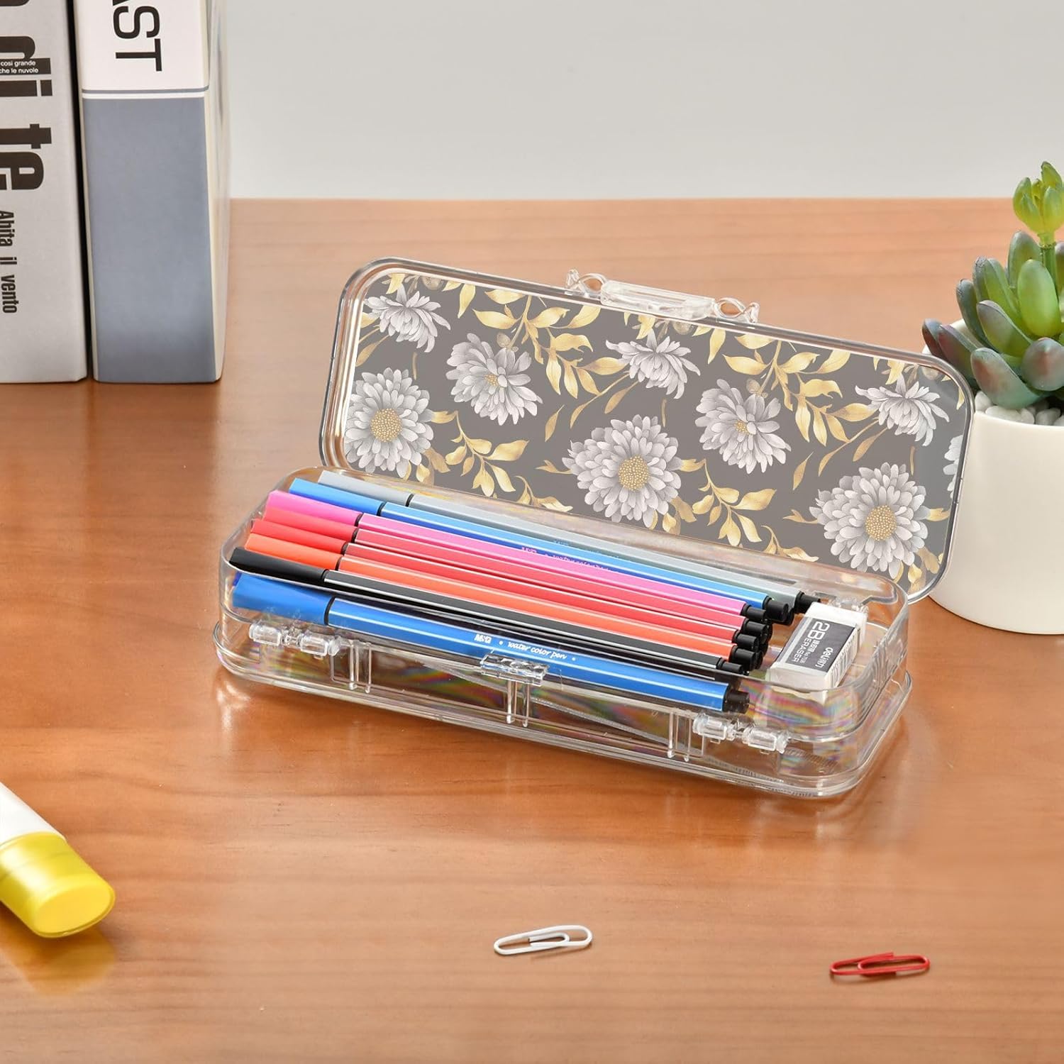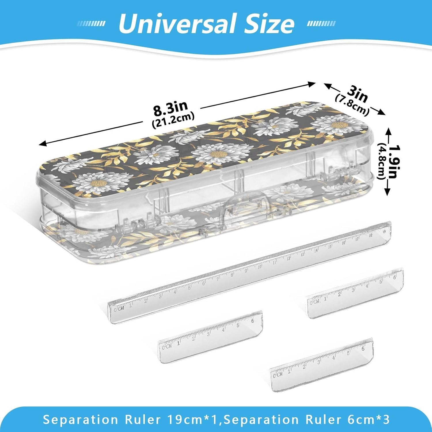 Plastica PET. Resistenza: presenta una struttura robusta e trasparente in PET. Facile da pulire; si consiglia il lavaggio a mano (non lavare in lavatrice/candeggina). Mantiene la chiarezza e resiste all'uso quotidiano negli zaini per l'apprendimento, il lavoro o i viaggi. Doppio strato: il design a doppio strato offre una grande capacità. Entrambi gli strati possono contenere matite, pennarelli o piccoli oggetti come gomme, graffette e clip. Consigliato per bambini dai 3 anni in su. Scomparti personalizzabili: include 3 divisori corti + 1 lungo rimovibile. Crea 6 sezioni o spazi aperti liberamente. I divisori fungono da pratici righelli. Organizza penne, piccoli oggetti in modo sicuro, evitando perdite e disordine senza sforzo. Righelli di separazione multiuso: ogni divisore rimovibile funge da pratico righello piccolo (6 cm o 19 cm) per misurazioni rapide in classe o in viaggio. Coperchio affidabile: la chiusura a scatto assicura che entrambi gli strati rimangano al sicuro. Il contenuto rimane protetto e perfettamente posizionato.