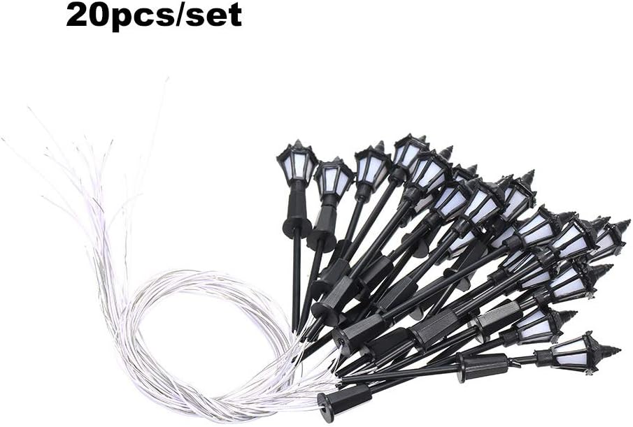 Un set di luci da gioco da 20 pezzi di strada o luci di layout ferroviaria. Illumina il tuo layout di scenari con questo grande lampione modello! Completato da fili e lampadina, per il paesaggio del modello ferroviario. Questi lampioni sono adatti per l'utilizzo di tensione di alimentazione di 3V. Questo modello di lampioni è bellissimo e l'illuminazione funziona correttamente. 6. Un grande set di modello di illuminazione stradale ferroviaria per appassionati di modelli e costruttori.