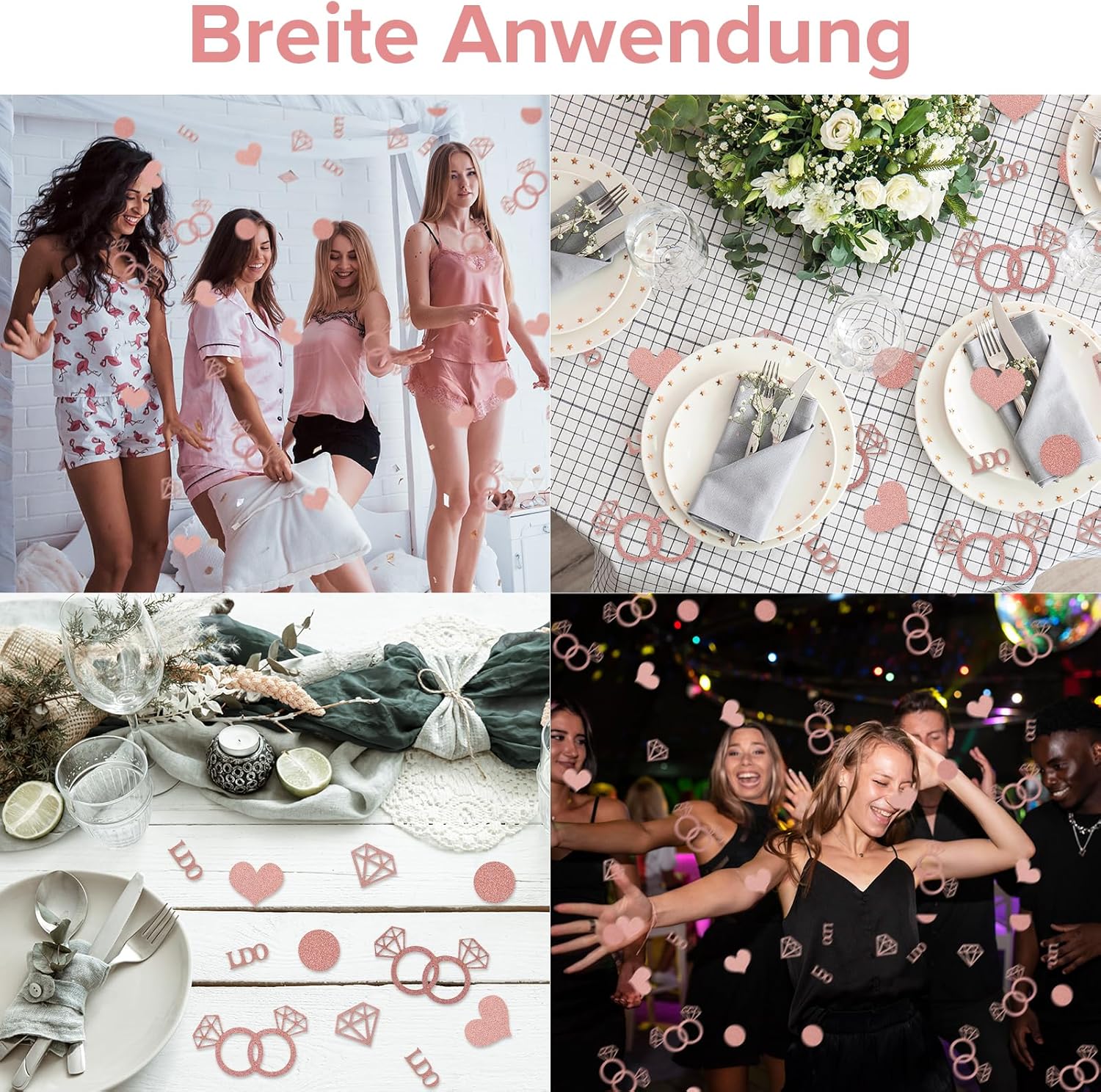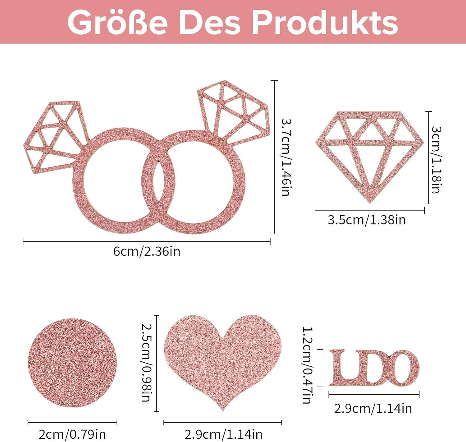 Contenuto della confezione: la confezione contiene 100 coriandoli in oro rosa con 5 diversi motivi. È abbondante nella folla e può aggiungere abbellimenti luminosi alle decorazioni di nozze. MATERIALE DI ALTA QUALITÀ: i nostri prodotti sono realizzati in materiale cartaceo di alta qualità, non facile da danneggiare e di ottima qualità. È leggero, resistente, non facile da deformare e può essere riutilizzato. RICCHI DISE: i nostri coriandoli sono progettati con 5 diversi modelli, tra cui diamanti, cerchi, cuori, anelli di diamanti, ed elementi inglesi. I motivi ricchi con colori squisiti possono aggiungere un'atmosfera romantica alla tua decorazione. AMPIA APPLICAZIONE: Questo prodotto ha una vasta gamma di applicazioni. È possibile utilizzarlo per matrimoni, proposte di matrimonio, feste, inviti di nozze, anniversari, San Valentino, inviti, biglietti di auguri, sacchetti regalo, ecc. FACILE DA USARE: è leggero e si può facilmente lanciare o cospargere i coriandoli sul tavolo senza particolari abilità. Il suo utilizzo può aggiungere un senso di sorpresa alla vostra festa e lasciare una profonda impressione su tutti.