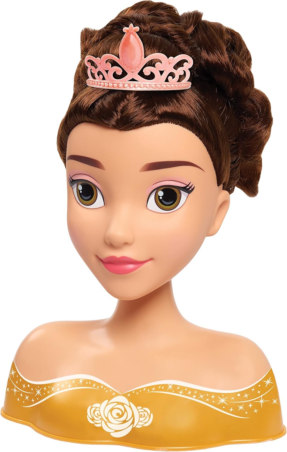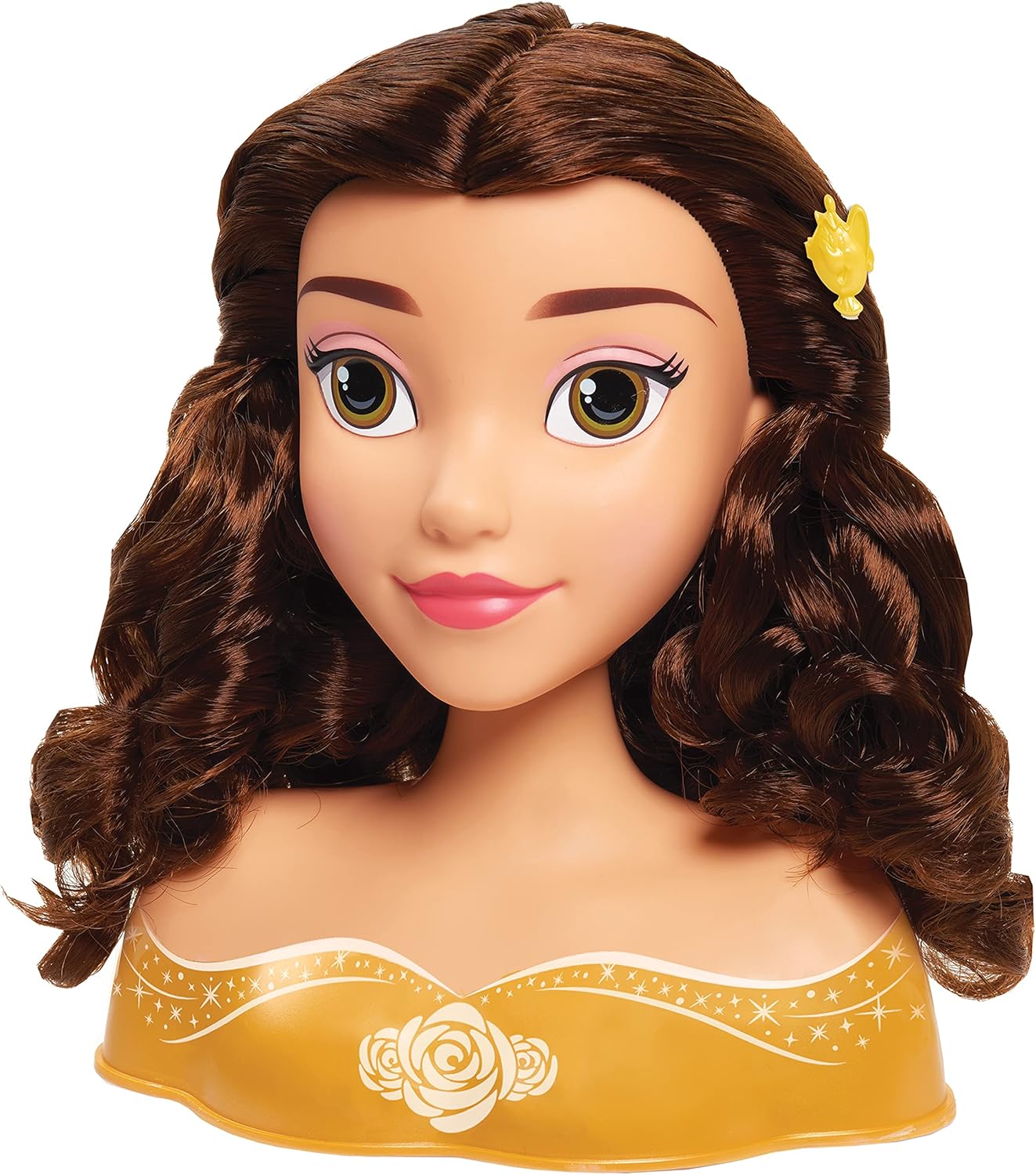 Part of our Disney Ultimate Princess Celebration Collection! Disney Princess Belle Deluxe Styling Head comes with long brown hair and nine fun, wear and share hair styling accessories. This 10-piece set includes: one Belle styling head, one hairbrush, one Mrs. Potts hair barrette, one Chip hair barrette, three hair spirals, two elastic bands, and one tiara. Use the brush to create fun hair styles on Belle! Kids can use the hair barrettes in their own hair as well as Belle's. Ages 3+