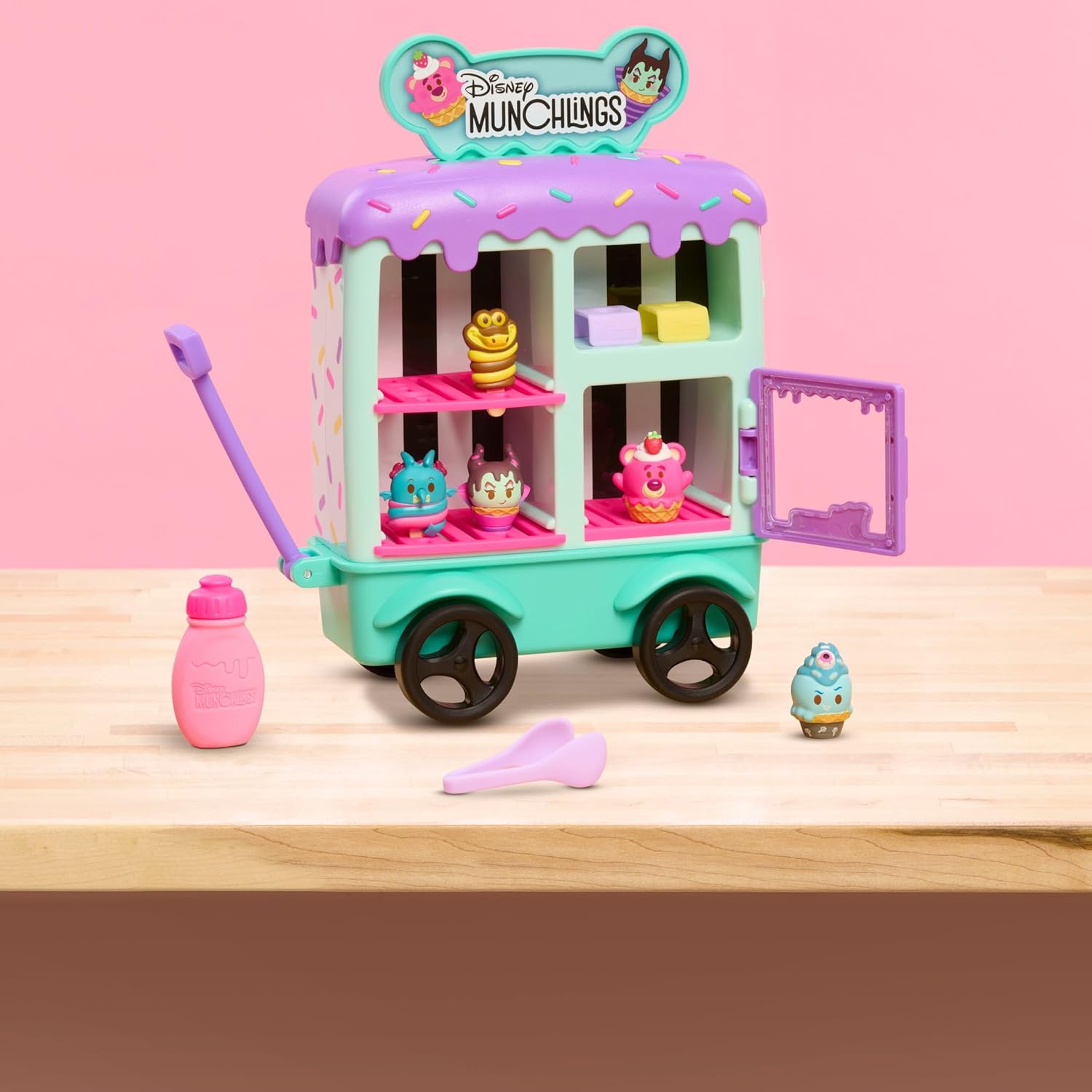 Include: set di gioco carretto dei gelati, 5 personaggi Munchlings, 1 paio di pinze, 1 dispenser di sciroppo, 3 vassoi, 2 tovaglioli. Una dolce delizia per tutti: il set di gioco di 13 pezzi di Disney Munchlings Ice Cream Cart contiene tutto ciò che serve ai bambini per immaginare di servire delle prelibatezze. Riempi le vetrine con i personaggi Disney Munchlings, gioca con gli amici e scatena la creatività. Deliziosamente collezionabili: i personaggi da collezione Munchlings, alti 2,5 cm, combinano teneri dolcetti e amati personaggi Disney e Pixar in un’adorabile fusione tra giocattoli dall’aspetto delizioso e classici amici Disney. 5 esclusivi personaggi da collezione Munchlings: scopri personaggi Disney e Pixar come Maleficent, Kaa, Lotso, Pena e Panico e Ade nei panni di coni gelato, ghiaccioli e coppette. Divertente cambio colore: inserisci un personaggio Munchlings all’interno della vetrina, premi la scritta Disney Munchlings per accendere la luce e osserva il personaggio cambiare colore. Profumatissimi personaggi: i Disney Munchlings sono tanto carini quanto profumati. Ognuno dei 5 personaggi da collezione è dolcemente profumato di cioccolato e frutti di bosco. Fai scorta di dolcezza: scopri i Munchlings Mini Munch Bakery, Mini Munch Candy Cart, e Mini Munch Displays (ciascuno venduto separatamente). I personaggi Disney Munchlings sono una dolce sorpresa per i compleanni e altre occasioni di festa, perfetti per i bambini e i collezionisti. Dai 3 anni in su.