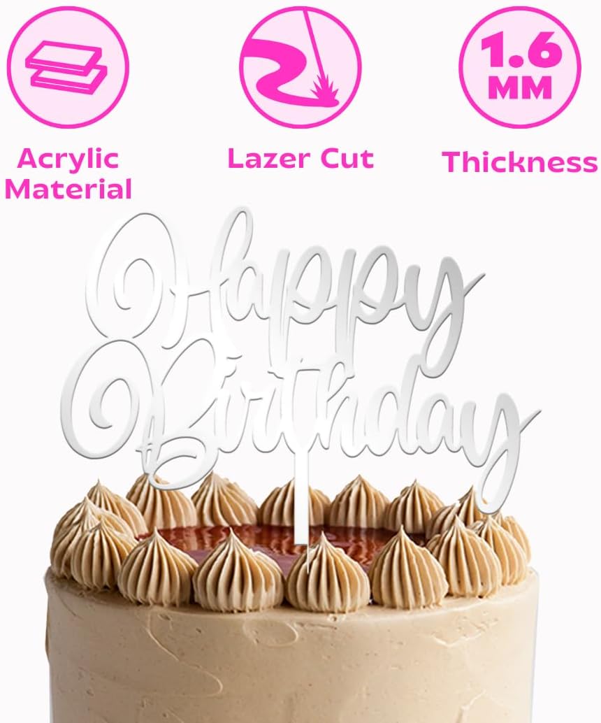 DUREVOLI E DI LUNGA DURATA: Realizzati in acrilico alimentare di alta qualità, questi toppers per torta sono progettati per durare nel tempo e per un uso ripetuto, garantendo che rimangano in condizioni eccellenti per molteplici eventi. APPLICAZIONE FACILE E VELOCE: il topper è facile da posizionare sulla torta, consentendo un'esperienza di decorazione senza problemi. Basta inserirlo nella torta per un immediato tocco di eleganza. Facile da pulire: dopo la festa, la pulizia è un gioco da ragazzi. Basta pulirlo con un panno umido ed è pronto per la prossima celebrazione. Il design riutilizzabile lo rende una scelta conveniente. FINITURA DI QUALITÀ PER LA TUA TORTA: l'elegante finitura acrilica lucida aggiunge un aspetto premium alla tua torta, migliorandone l'aspetto con un tocco elegante ed elegante per qualsiasi compleanno o occasione di festa.
