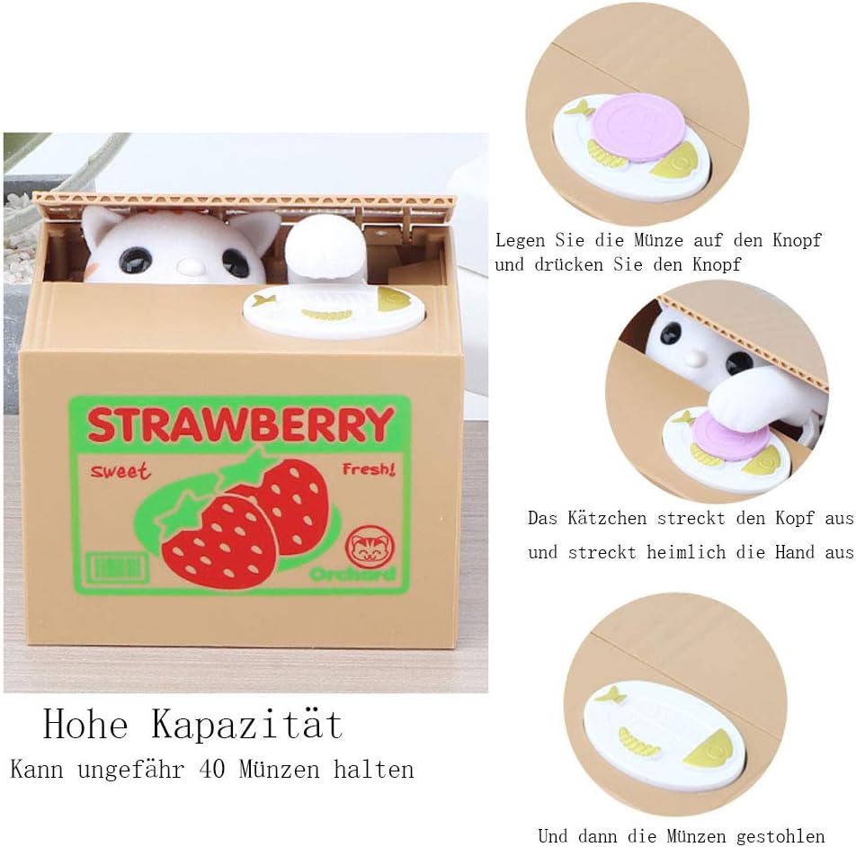 ❶ 【Salvadanaio creativo】 Justup Cat Coin Bank non è solo un salvadanaio, ma anche una decorazione carina e innovativa per i tavoli di casa e ufficio. Perfetto per bambini e adulti. ❷ 【Design adorabile】 Posiziona una moneta di qualsiasi dimensione sulla banca delle monete da rubare e l'adorabile panda salterà fuori dalla scatola, prenderà la moneta e poi tornerà nella scatola, il che è molto divertente e creativo. ❸ 【Buono per la formazione delle abitudini】 Il salvadanaio Justup è sicuramente un regalo significativo per i bambini, soprattutto se hanno bisogno di risparmiare denaro. Ti innamorerai facilmente di questo piccolo salvadanaio a forma di panda. ❹【Grande capacità】Il salvadanaio per gatti può contenere da 20 a 40 monete prima di dover essere svuotato. Nella parte inferiore della scatola c'è una serratura che puoi aprire per riconquistare i soldi raccolti! Alimentato da 2 batterie AA (NON incluse). ❺ 【Regalo per bambini】 Questo è il miglior regalo per i tuoi bambini! Questo salvadanaio per gatti è realizzato con materiali sicuri al 100%. Se avete domande a riguardo non esitate a contattarci senza impegno, offriamo una garanzia a vita.