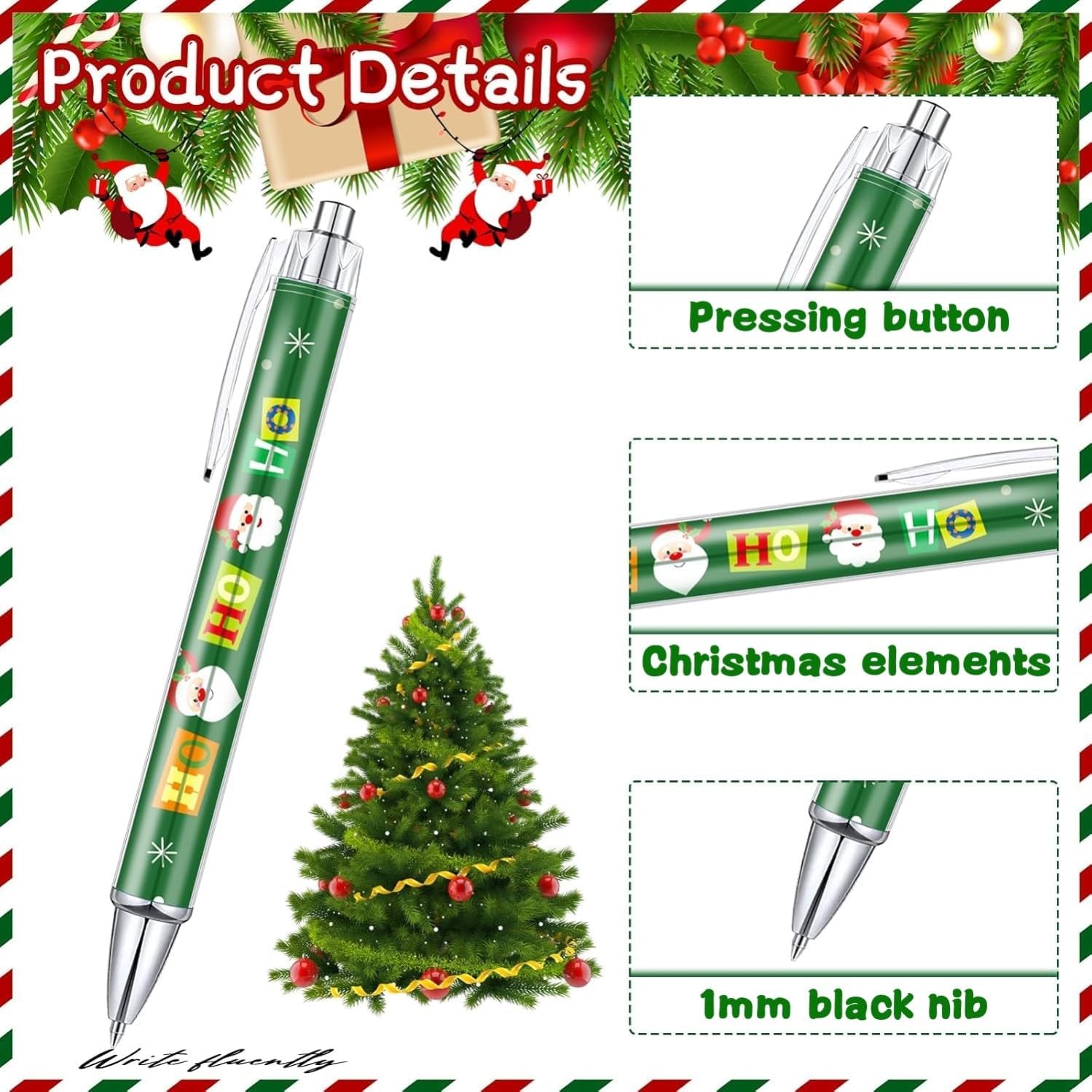 [Alta qualità] Il guscio esterno è realizzato in plastica di alta qualità, superficie argentata, non facile da rompere, la ricarica è realizzata in inchiostro di alta qualità, scaricato uniformemente, liscio nella scrittura [12 stili natalizi] Inclusi 12 diversi stili natalizi: Babbo Natale, renne, pupazzi di neve, albero, caramelle, ghirlande ecc., classici elementi natalizi, si adattano bene al tema delle vacanze natalizie [Facile da usare] Basta premere il pulsante della penna per scrivere, pennino da 1 mm, la scrittura è liscia come la seta, l'inchiostro nero è liscio e stabile, non facile da volatilizzare o perdere, è un ottimo regalo per i bambini [Dimensioni] 14 cm x 1,8 cm, piccolo e portatile, facile da trasportare, può essere riposto su astucci, portafogli, tasche ecc., 12 gusci di stile diverso, 4 pezzi per stile, quantità e colore sufficienti [Applicabile] Un regalo di Natale perfetto per la famiglia, i bambini e gli amici, ideale per la scrittura quotidiana, la pittura, il disegno, i graffiti, le firme, la creazione di biglietti di auguri, ecc., perfetto per casa, scuola o ufficio
