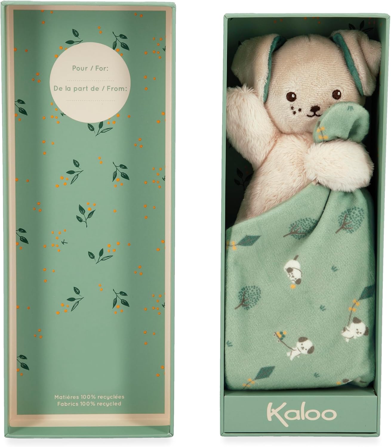 IL MIO PRIMO DOUDOU – Questo affascinante doudou che ha un solo desiderio: seguire il neonato in tutte le sue avventure quotidiane. Le sue piccole dimensioni (quadrato da 18 cm x 18 cm + cagnolino di peluche da 14 cm) lo rendono un compagno di viaggio facile da trasportare ovunque. UN ADORABILE REGALO PER LA NASCITA – Con il suo soffice corpo e il tessuto quadrato verde decorato con un piccolo cagnolino che gioca in giardino, questo magnifico doudou morbido e leggero è ideale per grandi abbracci. È presentato in una simpatica scatola regalo riutilizzabile e certificata FSC. UN QUADRATO DI MORBIDEZZA – La collezione "Carré Douceur" di Kaloo è una famiglia di adorabili personaggi con un tenero musetto e un corpo morbido, delicatamente avvolti in un tessuto quadrato decorato con motivi ispirati alla natura. Una linea ecosostenibile composta interamente da tessuti e imbottiture riciclati da bottiglie di plastica. CARATTERISTICHE – Contiene un doudou. Dimensioni del doudou: 18 cm (lunghezza) x 18 cm (larghezza). Materiale: microvelour, pelliccia. Adatto dalla nascita. PRIMI MOMENTI DI FELICITÀ – Kaloo propone una collezione completa di teneri compagni che veglieranno sui più piccoli, rassicurandoli e guidandoli durante le loro prime scoperte. Kaloo è un abbraccio di amore, tenerezza e conforto che avvolgerà il neonato sin dalla nascita, e lo aiuterà a crescere e svilupparsi apportando benessere. I doudou, i peluche e i giocattoli multisensoriali Kaloo sono progettati in Francia e sviluppati prestando particolare attenzione allo stile, ai colori e alla qualità dei materiali.