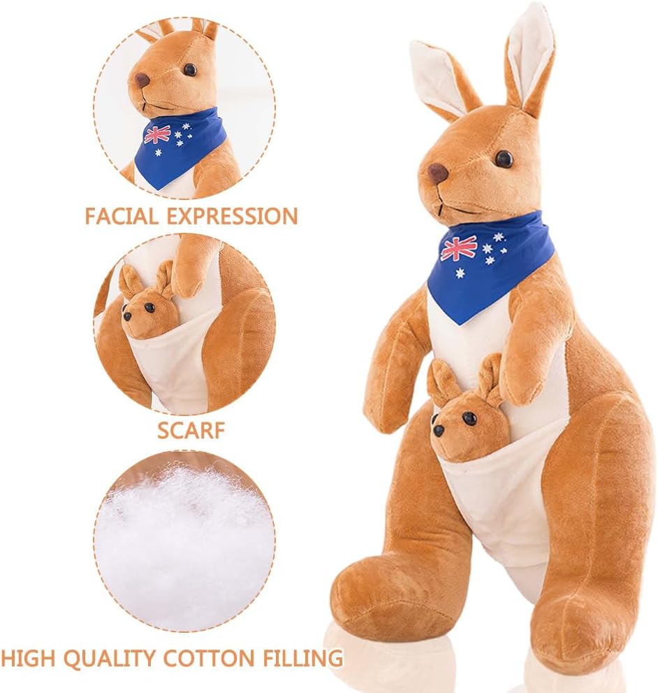 【Materiale di Alta Qualità】: I giocattoli di peluche del canguro sono fatti di cotone di alta qualità. È morbido, soffice e confortevole da tenere. Il materiale è sicuro e non tossico, adatto per l'uso dei bambini. 【Design Unico】:Giocattoli di peluche canguro sono impressionanti con il loro design unico. Ha anche un piccolo canguro carino in tasca. 【Facile da Pulire】:Se il peluche canguro si sporca, può essere facilmente pulito a mano o utilizzando una macchina per la lavanderia. 【Decorazione】:Con cui puoi guardare la TV, leggere un libro, dormire, utilizzare cuscini, cuscini o cuscini per il tuo animale domestico. Non è solo un regalo o una decorazione, ma piuttosto un amico. Si sente sicuro e comodo. 【Versatili Possibilità di Utilizzo】:Il peluche a canguro può essere utilizzato non solo come giocattolo, ma anche come elemento decorativo nella cameretta dei bambini o come pezzo da collezione per gli amanti degli animali.