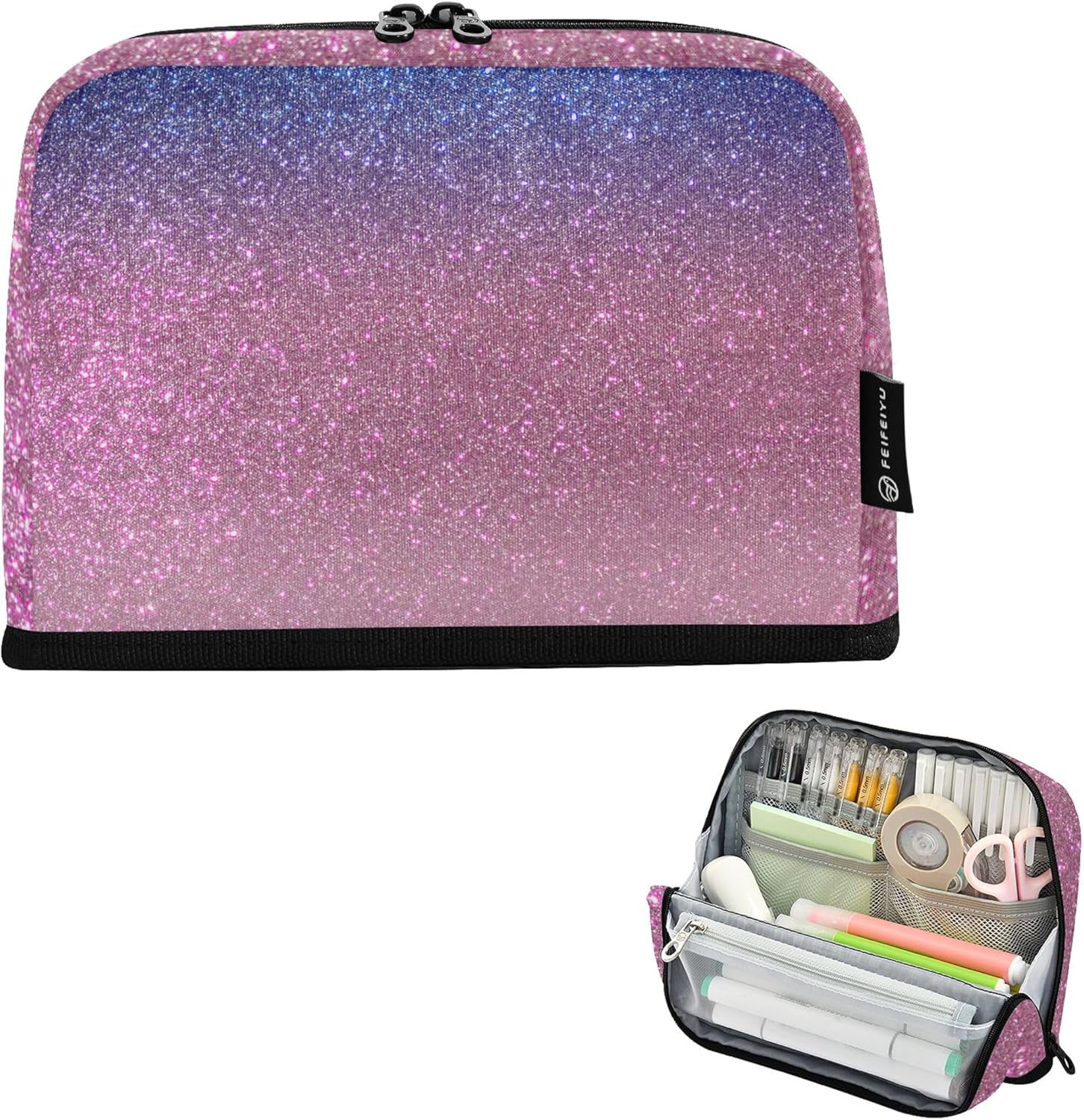 Astuccio scuola con doppio scomparto con cerniera e fodera interna. Design con frontale in rilievo.