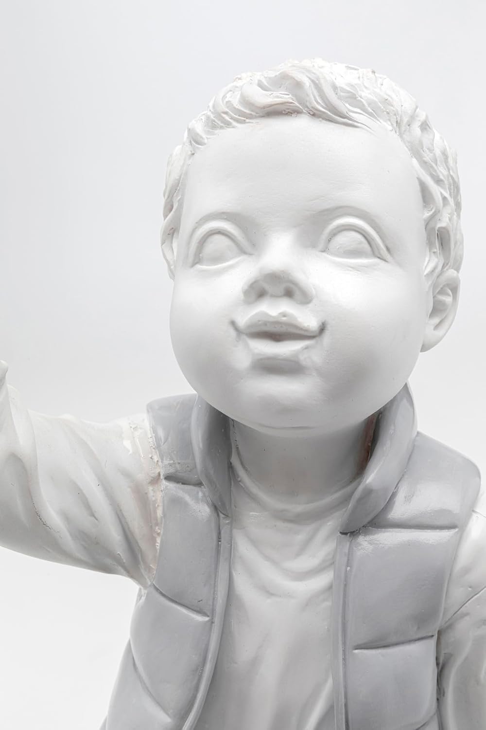 Oggetto di design emozionale: la grande statuetta decorativa di un allegro ragazzino con palloncino porta vivacità e gioia infantile negli spazi abitativi moderni ed è una vera attrazione Accento di colore brillante: il palloncino blu in vetro colorato crea un emozionante contrasto con la statuetta in bianco e nero e conferisce all'oggetto un tocco fresco ed espressivo Materiale di alta qualità: realizzata in poliresina resistente e dimensionalmente stabile, la statuetta affascina con la sua qualità robusta e la superficie elegante e lucida Realizzata a mano individualmente: ogni statuetta è realizzata e dipinta a mano, creando un pezzo unico con fascino personale Grande formato con effetto: con un'altezza di 96 cm, la figura è ideale come elemento decorativo su credenze, cassettiere o tavolini in soggiorno