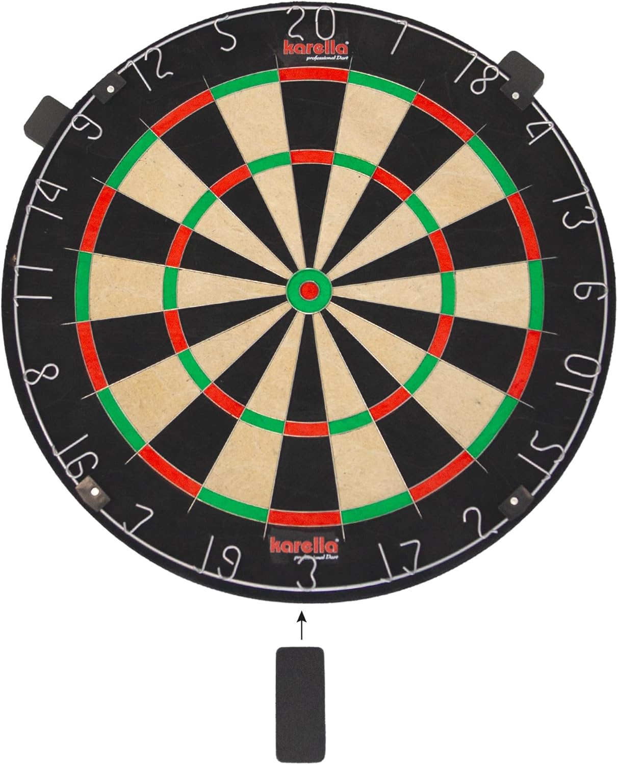 Karella Con oltre 35 anni di esperienza professionale nelle freccette, è uno dei principali fornitori. Con il modello BullOut, Karella presenta un bersaglio professionale senza logo di alta qualità per giocatori di tornei e competizioni. Il design neutro consente di ruotare più volte il disco per un'usura uniforme senza restrizioni visive. Ciò porta anche a una durata notevolmente prolungata. Cablaggio in acciaio inox ultra sottile, completamente senza graffette. Con 45 cm di diametro e 5 cm di spessore, la tavola corrisponde alle dimensioni ufficiali dei tornei e si adatta a tutti i surround comuni e all'isolamento acustico Karella Il modello BullOut è realizzato in sisal autorigenerante di prima classe dal Brasile, le fibre di sisal si chiudono dopo il lancio, il che lo rende molto resistente. Oltre al supporto da parete sono inclusi anche tre cunei per bersaglio. Con questi la tavola può essere ulteriormente fissata e perfettamente allineata. Oltre al rivestimento perfetto al 100%, la parete posteriore è protetta dai morbidi cunei. Consegna con regola, 2 set di freccette in acciaio Karella da 21 g.