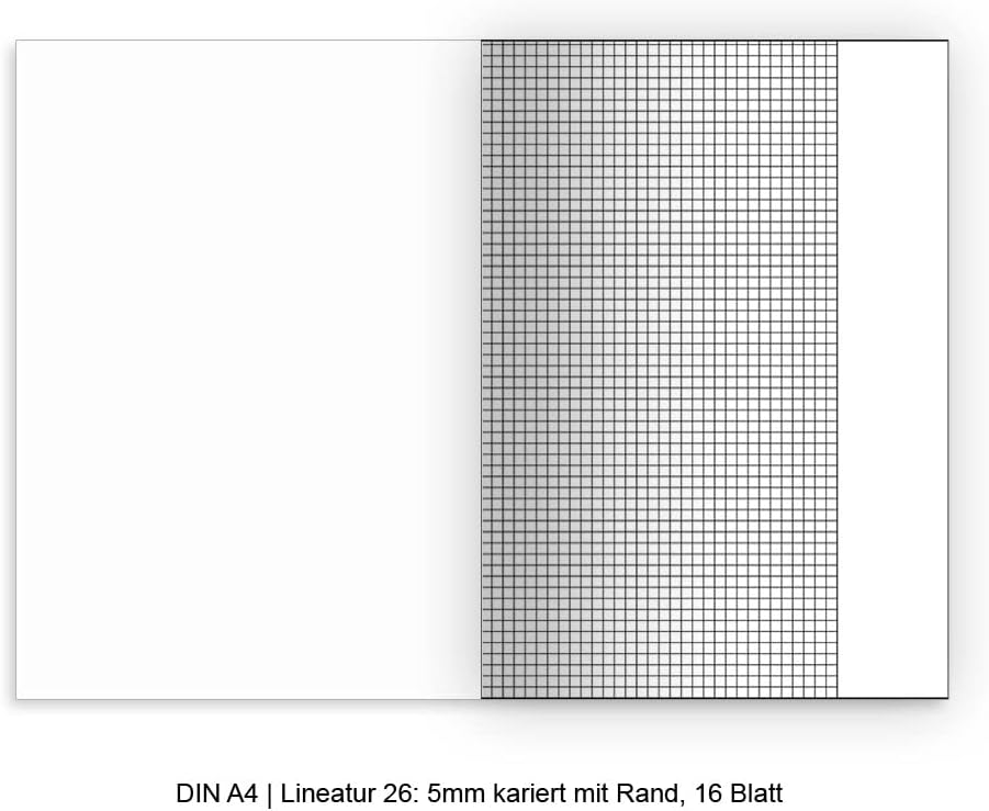 4 quaderni formato: DIN A4, riga 26: 5 mm quadretti con bordo, 16 fogli - Design: quaderno/quaderno/diario Kartenkaufrausch Carta di copertina: 170 g liscia, lucida; Esterno copertina quaderno/taccuino/diario: stampa a 4 colori; Quaderno/taccuino/diario scolastico Interno copertina: stampa in bianco/nero; Quaderno/taccuino/diario Pagine interne: carta da 80 g, senza legno, bianca, struttura della carta aperta per una scrittura più bella. Ideale anche come quaderno per simpatici pensieri, appunti e schizzi. Che si tratti di un business plan, di una pianificazione del giardino, di un diario di bilancio, di un diario della felicità o di un resoconto di viaggio, scrivi ciò che ti emoziona e rendilo unico personalizzandolo. Combina i nostri quaderni e ottieni ELEGANTI ACCESSORI PER LA SCRITTURA per scrivere, imparare, calcolare e pensare in modo più divertente. +++ Ogni quaderno è prodotto individualmente per te. Stampati con design eleganti e di alta qualità, questi quaderni portano colore e gioia al tuo zaino e alla tua scrivania. Pratici in formato DIN A4 e DIN A5: non sono troppo spessi e stanno in ogni tasca. Scegli tra i numerosi motivi di copertina la copertina che meglio si adatta alla tua situazione di vita. Utilizza con profitto le nostre bellissime riviste. Che si tratti del vostro piano aziendale, dei vostri seminari o del progetto del giardino. Annota le tue idee o tieni il libro e il diario di casa o scrivi semplicemente il tuo resoconto di viaggio.