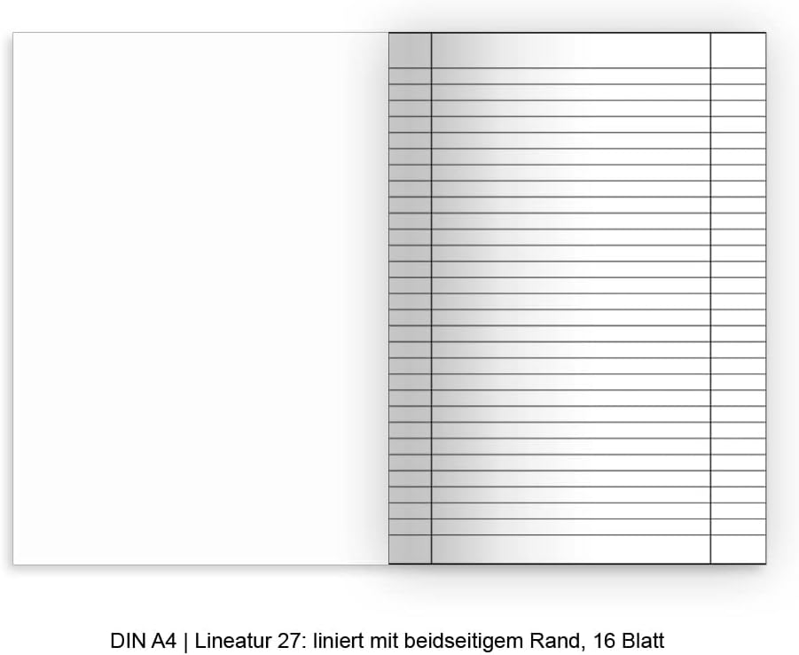 4 quaderni personalizzati Formato: DIN A4, riga 27: a righe con margini su entrambi i lati, 16 fogli - Motivo: quaderno/quaderno/diario Kartenkaufrausch Carta di copertina: 170 g liscia, lucida; Esterno copertina quaderno/taccuino/diario: stampa a 4 colori; Quaderno/taccuino/diario scolastico Interno copertina: stampa in bianco/nero; Quaderno/taccuino/diario Pagine interne: carta da 80 g, senza legno, bianca, struttura della carta aperta per una scrittura più bella. Ideale anche come quaderno per simpatici pensieri, appunti e schizzi. Che si tratti di un business plan, di una pianificazione del giardino, di un diario di bilancio, di un diario della felicità o di un resoconto di viaggio, scrivi ciò che ti emoziona e rendilo unico personalizzandolo. Combina i nostri quaderni e ottieni ELEGANTI ACCESSORI PER LA SCRITTURA per scrivere, imparare, calcolare e pensare in modo più divertente. +++ Ogni quaderno è prodotto individualmente per te. Stampati con design eleganti e di alta qualità, questi quaderni portano colore e gioia al tuo zaino e alla tua scrivania. Pratici in formato DIN A4 e DIN A5: non sono troppo spessi e stanno in ogni tasca. Scegli tra i numerosi motivi di copertina la copertina che meglio si adatta alla tua situazione di vita. Utilizza con profitto le nostre bellissime riviste. Che si tratti del vostro piano aziendale, dei vostri seminari o del progetto del giardino. Annota le tue idee o tieni il libro e il diario di casa o scrivi semplicemente il tuo resoconto di viaggio.