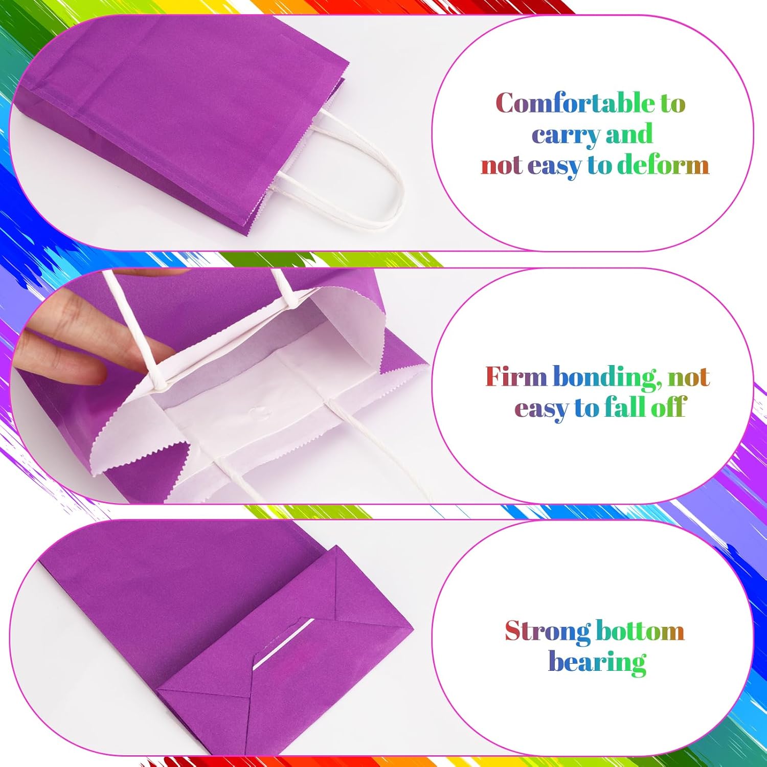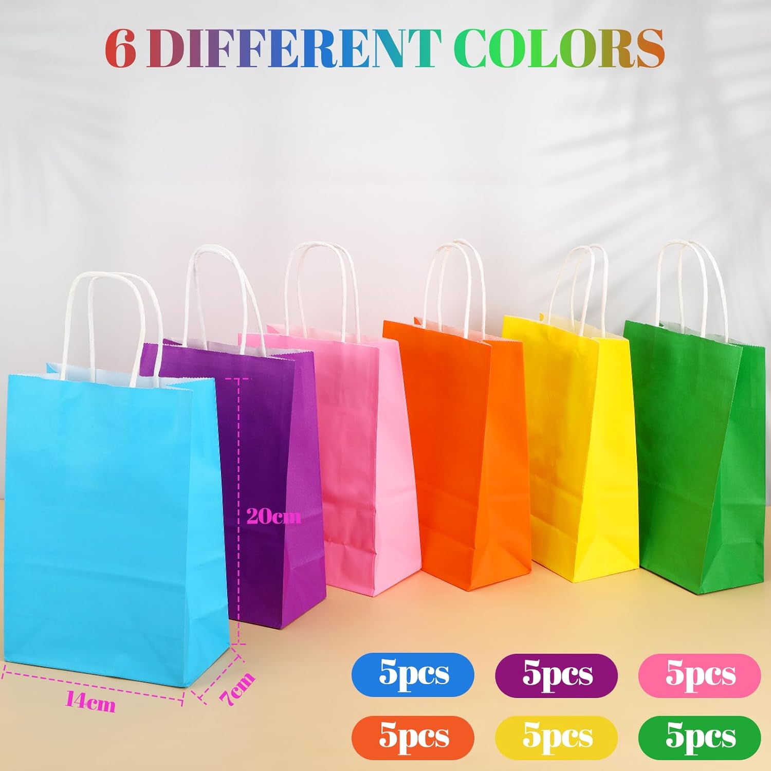 【Sacchetti regalo versatili】 I sacchetti di carta colorata da 30 pezzi sono disponibili in 6 colori diversi e sono adatti a diverse occasioni e usi. Possono essere utilizzati come sacchetti regalo di compleanno per bambini piccoli, sacchetti di benvenuto, sacchetti per feste e sacchetti per la vendita al dettaglio. Che si tratti di una festa di laurea, matrimonio, festa di compleanno, anniversario o San Valentino e altre occasioni festive, queste borse di compleanno per bambini sono sempre adatte. 【Materiale ecologico】 Questi sacchetti di compleanno per bambini sono realizzati in carta kraft di alta qualità con uno spessore di 0,15 mm, che li rende più resistenti dei tradizionali sacchetti di carta con manici. I sacchetti di caramelle non sono solo ecologici e biodegradabili, ma anche riciclabili. Non sbiadiscono né si strappano facilmente e mantengono la loro buona forma anche dopo un uso ripetuto. 【Qualità eccellente】 I piccoli sacchetti di carta sono dotati di manici robusti e attorcigliati che non solo forniscono una presa salda, ma sono anche progettati ergonomicamente, rendendoli più comodi da trasportare. Le maniglie sono saldamente fissate alle borse. Inoltre, il fondo dei sacchetti di carta kraft è rinforzato in modo che possano rimanere stabili e fornire ulteriore supporto durante il trasporto di oggetti pesanti. Questo design aumenta la funzionalità complessiva e l'usabilità delle borse. 【Design personalizzato】 I sacchetti di caramelle sono ideali per gli appassionati di fai da te e gli artigiani. Poiché i sacchetti di carta non sono stampati, puoi personalizzarli secondo i tuoi desideri. La superficie dei sacchetti è adatta alla verniciatura, verniciatura a spruzzo, goffratura, tintura e decorazione. Puoi decorare le borse con fiori, ritagli di carta, bottoni, paillettes e nastri per renderle uniche. 【Esperienza di acquisto eccellente】 Ci impegniamo a fornire ai nostri clienti un'esperienza di acquisto eccellente. Se non sei soddisfatto delle nostre borse per bomboniere o hai problemi, puoi contattarci in qualsiasi momento. Faremo del nostro meglio per risolvere i vostri problemi e offrire una soluzione soddisfacente. Che si tratti di problemi di qualità o difficoltà di utilizzo, ti forniremo un servizio clienti senza preoccupazioni.