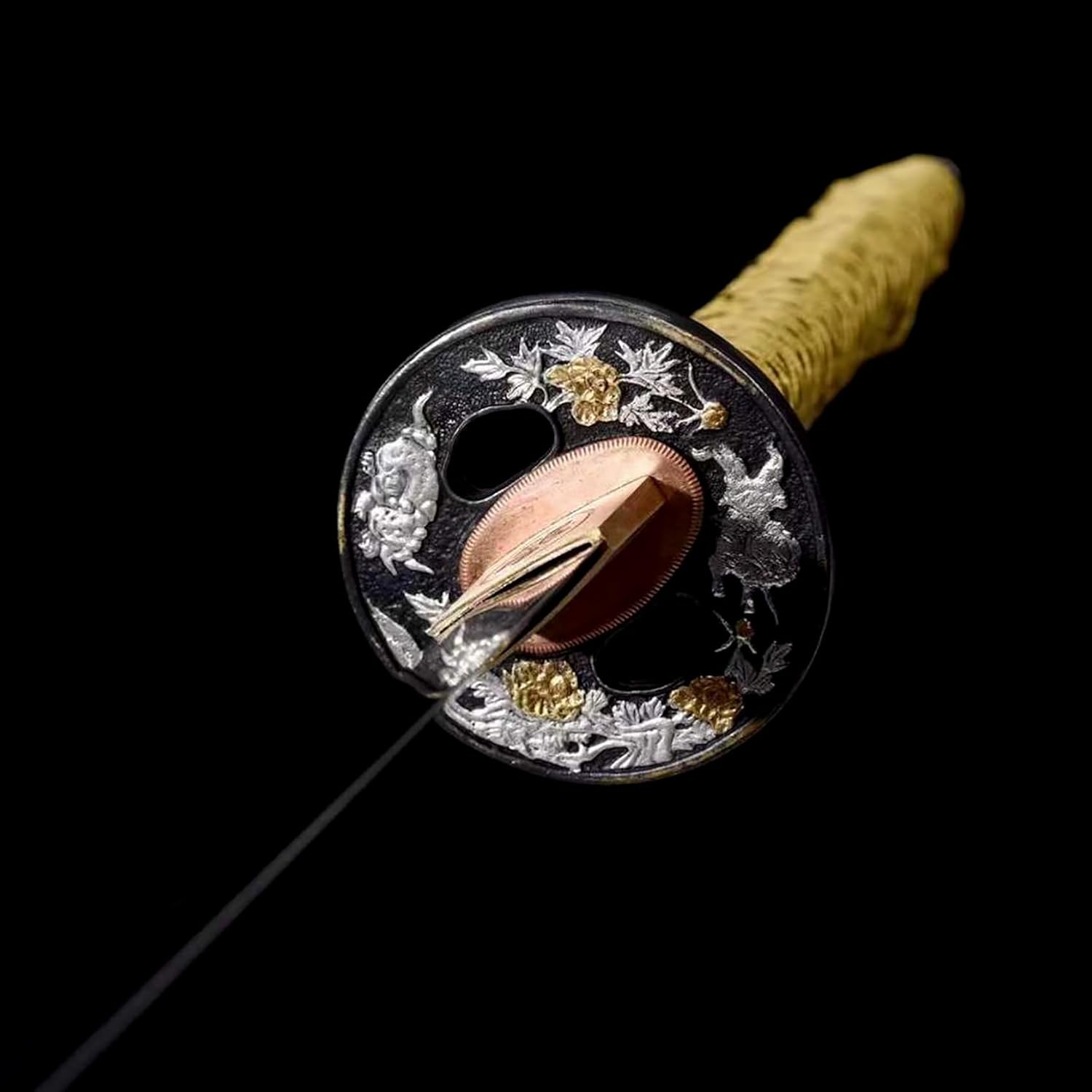 Le Katana sono adatte per essere collezionate ed esposte in varie occasioni. Sia nello studio, nel soggiorno, nell'ufficio o nello studio di arti marziali, può diventare una decorazione e un'esposizione unica. Non solo riflette il gusto e la personalità del proprietario, ma conferisce anche alla stanza un'atmosfera misteriosa e solenne. La lama è realizzata in acciaio modellato di alta qualità ed è prodotta utilizzando il tradizionale processo di forgiatura. La piegatura e la forgiatura ripetute creano modelli belli e unici e garantiscono anche la perfetta combinazione di durezza e tenacità. L'impugnatura è avvolta da una corda morbida che si adatta perfettamente al palmo della mano, è facile da impugnare e ha buone proprietà antiscivolo e resistenti all'usura, offrendoti il massimo comfort durante l'utilizzo. Ogni katana porta con sé l'essenza dell'artigianato tradizionale. Dalla selezione del materiale alla forgiatura, dalla molatura alla tempra, ogni fase viene accuratamente lucidata dagli artigiani per garantire che ogni katana sia un'opera d'arte unica. Le proporzioni sono cruciali per la progettazione delle armi. Le proporzioni perfette non solo rendono la katana più bella, ma ne garantiscono anche la praticità e la funzionalità. Lunghezza totale: 103 cm, lunghezza lama: 71 cm, lunghezza manico: 27 cm, larghezza lama: 3,2 cm, peso: 1,5 kg.