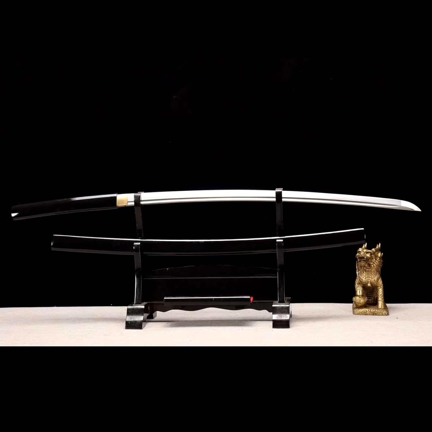 ☪ 【Materiale di alta qualità】 La lama è realizzata in acciaio per molle altamente elastico. Dopo quattordici lucidature a mano, la durezza è 58 e può rimbalzare rapidamente anche se piegato a 80 gradi. Garantisce la robustezza e la durata del coltello. Il manico e il fodero sono realizzati in legno di alta qualità e verniciati, e sul fodero sono incisi dei motivi, il che è allo stesso tempo bello e pratico. ☪ 【Prestazioni eccellenti】 La katana Iaido mostra il suo fascino unico con il suo ampio design a V. La forma complessiva della lama si espande gradualmente radialmente dal grappolo alla punta, diventa assialmente più sottile e viene forgiata. Questo design non solo aumenta lo slancio della spada, ma rende anche la katana più manovrabile. ☪ [Artigianato tradizionale] La spada del samurai adotta l'antico processo di fabbricazione della spada Longquan, tra cui punzonatura, forgiatura a caldo, spalatura, limatura, molatura, fiammatura, indurimento, lucidatura manuale e altri passaggi. Ogni passo incarna il duro lavoro e la saggezza degli artigiani. Questa antica lavorazione artigianale conferisce ad ogni katana un patrimonio storico e culturale. ☪ 【Proporzioni perfette】 La lunghezza totale della katana è di 103 cm, la lunghezza della lama è di 72 cm, la lunghezza del manico è di 27 cm, la larghezza della lama è di 3,2 cm e pesa circa 1,4 kg. Proporzioni perfette, buon peso, comodo da tenere e facile da controllare. Non importa che tu sia un principiante o un samurai esperto, puoi controllarlo facilmente. ☪ 【Ampia applicazione】 Come simbolo del Bushido, questa katana è molto adatta agli appassionati di arti marziali per allenarsi quotidianamente e migliorare la propria abilità con la spada. Grazie alla loro squisita fattura e alle connotazioni culturali uniche, le spade dei samurai sono anche opere d'arte e decorazioni altamente collezionabili.
