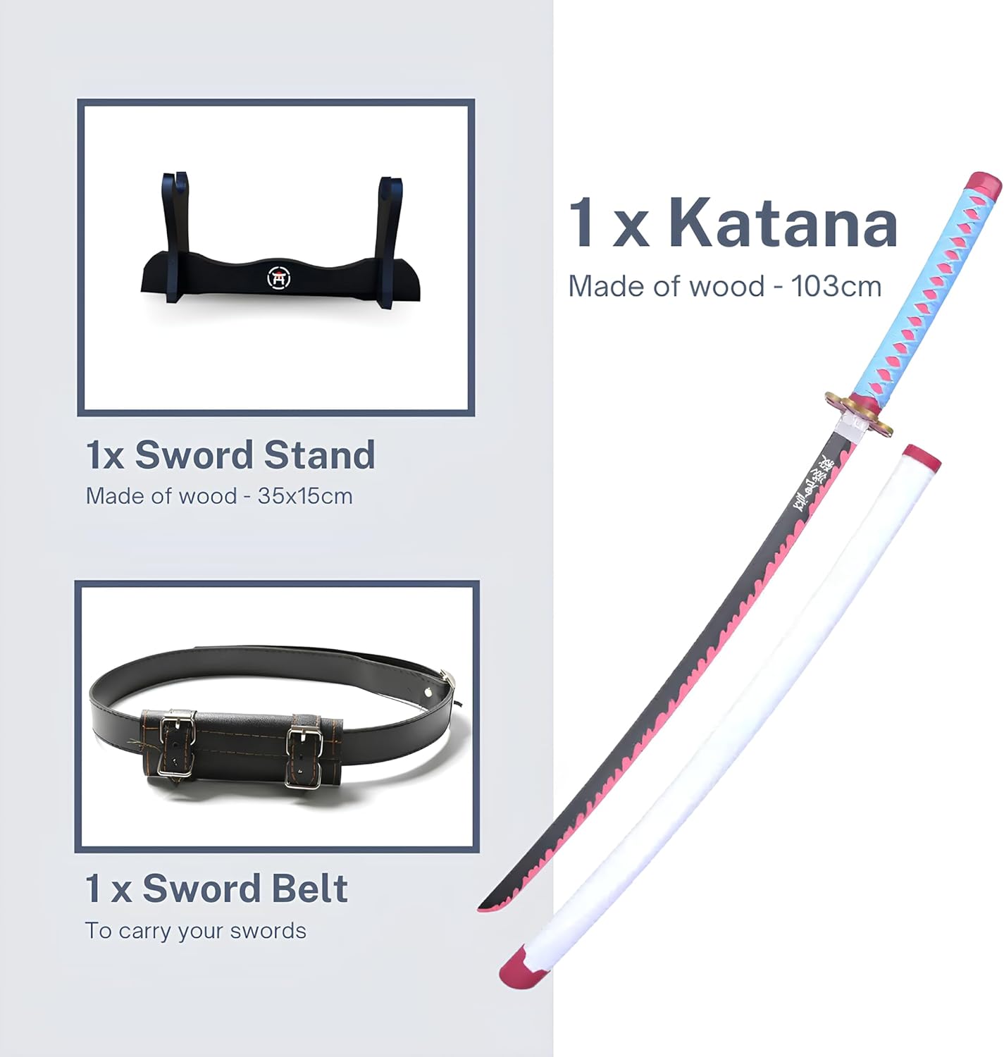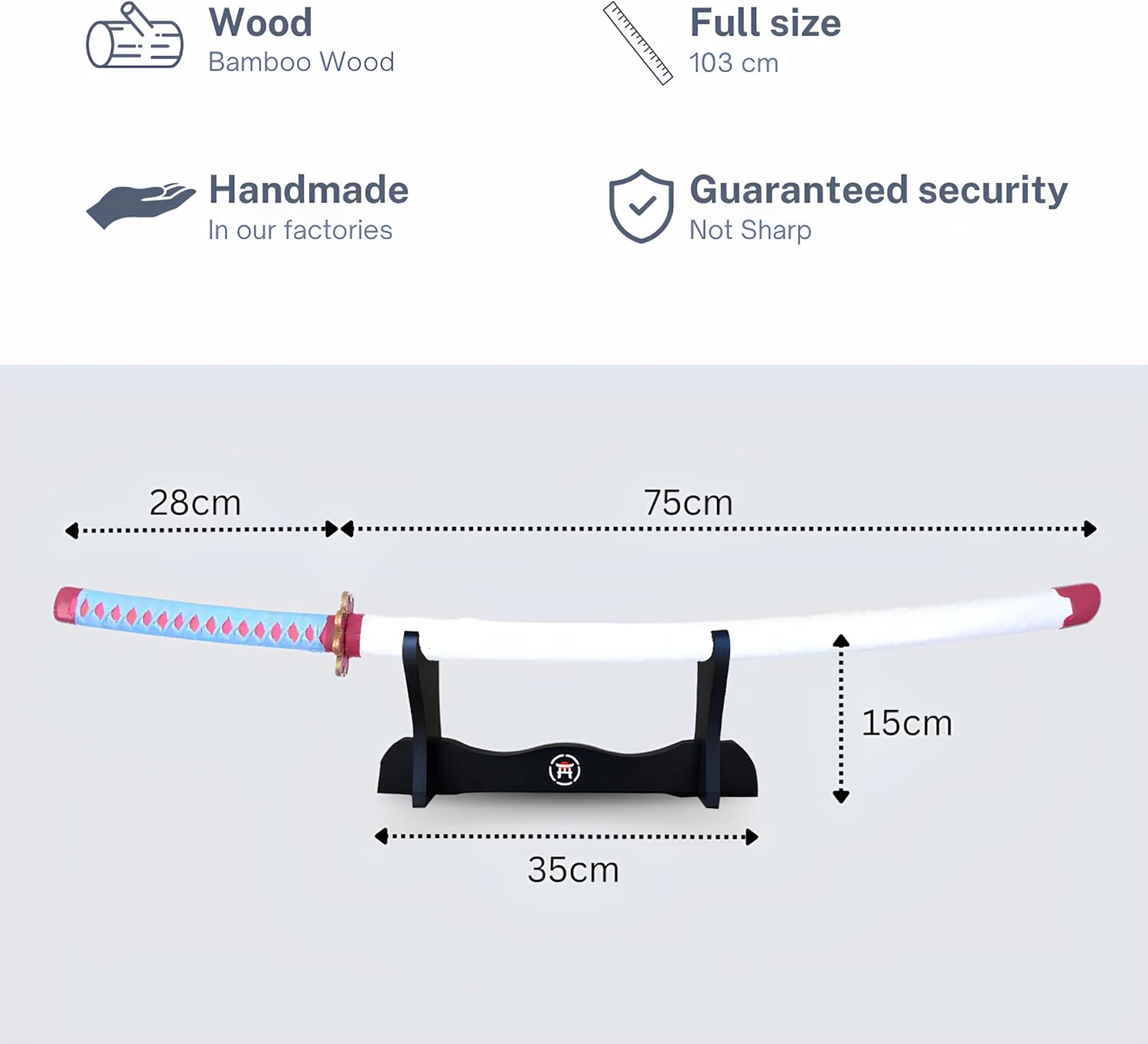 Katana in legno: Scopri la nostra katana Hashiman, una vera replica in legno di bambù lunga 103 cm, ispirata all'universo di Slayer. Questa lama con manico in plastica è perfetta per cosplay, allenamento o decorazione. Portaspada in legno Incluso: il nostro kit include un supporto per spada in legno progettato per mostrare la tua katana in modo elegante. È l'accessorio ideale per esporre la tua replica Hashiman con orgoglio accanto alla tua figura preferita. Cintura di Katana inclusa: per un'esperienza di vero samurai, il nostro kit include una cintura katana di alta qualità. Ti permetterà di completare il tuo outfit da guerriero giapponese con stile. Questa cintura sosterrà altrettanto bene la tua katana, bokken o tanto. E adatto a una ragazza o un ragazzo. Ispirato al manga: Immergiti nell'affascinante universo del demone grazie alla nostra katana Hashiman, una replica che delizierà i fan dei manga e degli anime. Abbinato a un kimono e un falso shuriken, questa replica è la scelta perfetta per un halloween di successo. Questo oggetto può anche essere abbinato a un costume da pirata. Artigianato giapponese di qualità: realizzato con grande attenzione ai dettagli, la nostra katana non retrattile in bambù offre una spada accuratamente lavorata e un fodero autentico, rendendolo una replica di alta qualità per decorare. Questa katana non è in acciaio, metallo affilato o schiuma.
