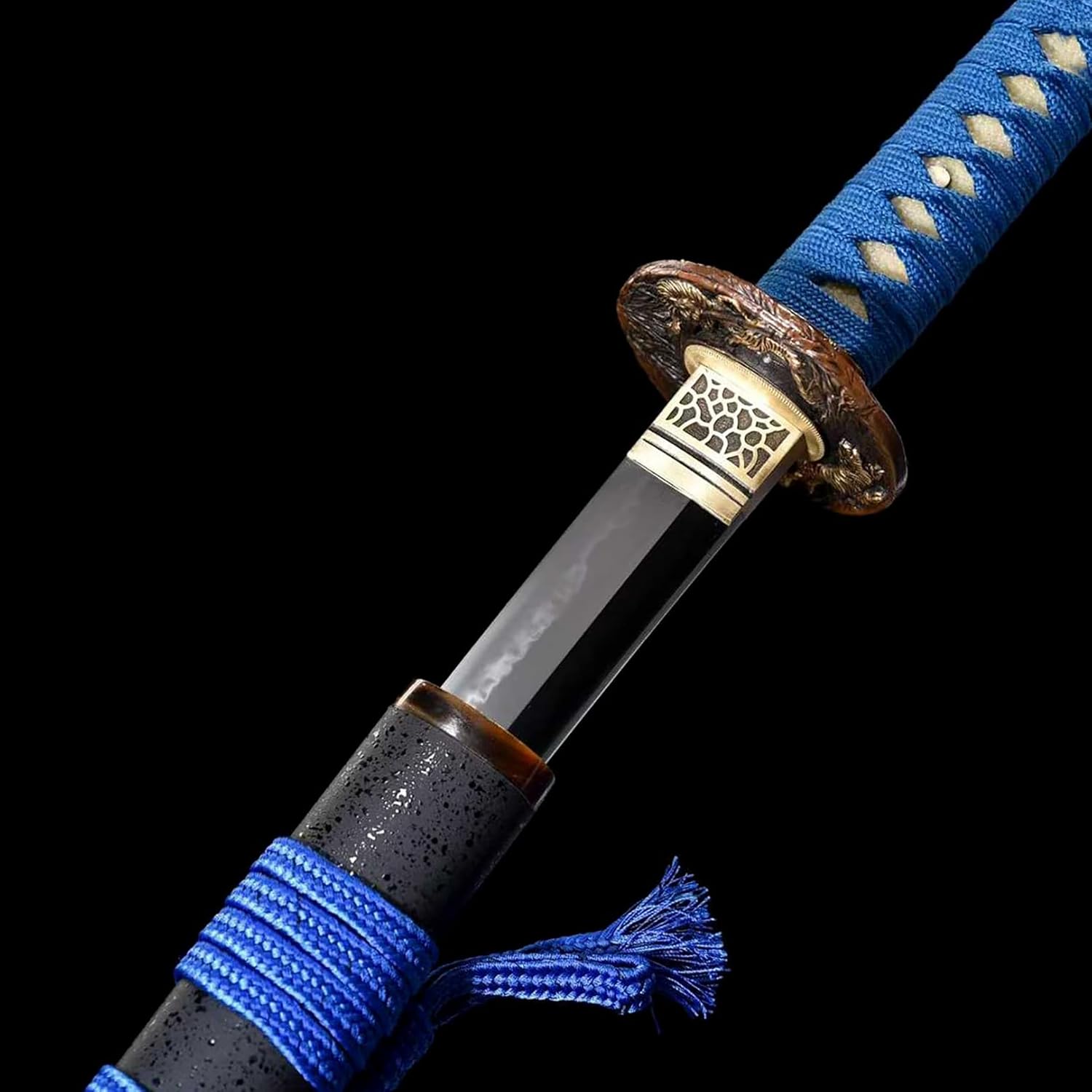 La lama è forgiata a mano in acciaio T10. Durezza 60°. Ogni spada da samurai è un'opera d'arte unica. La katana viene fornita con un fodero in legno per riporre in sicurezza la lama. Il manico è avvolto da una corda morbida che si adatta perfettamente al palmo della mano ed è facile da impugnare. Lunghezza totale: 103 cm, lunghezza lama: 71 cm, lunghezza impugnatura: 27 cm, larghezza lama: 3,2 cm, peso: 1,54㎏. La dimensione perfetta rende la katana così armoniosa e bella.
